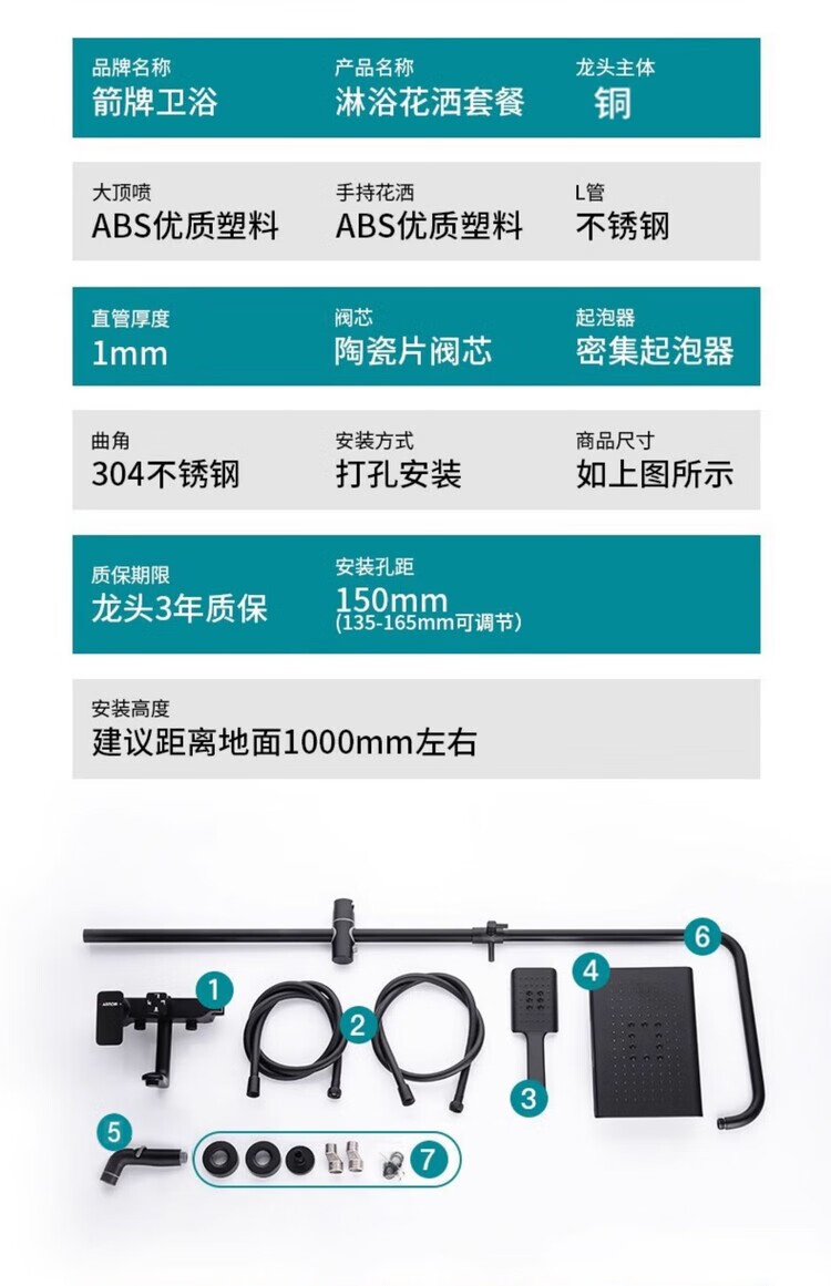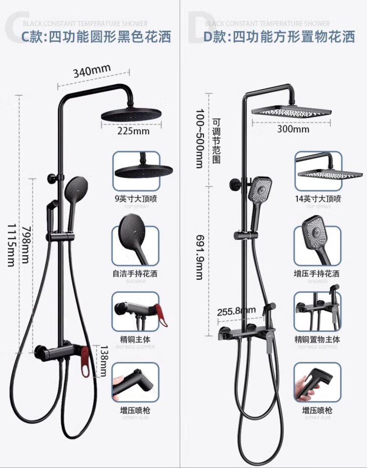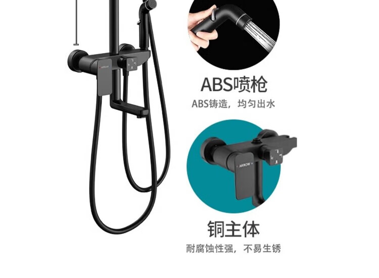 ARROW bathroom black shower head set household all-copper shower toilet bathroom rain shower spray four-function round shower head