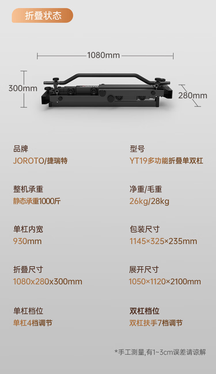 JOROTO home folding horizontal bar indoor children's single and parallel bar pull-up frame home fitness frame stretching training foldable | adjustable height | stable and safe
