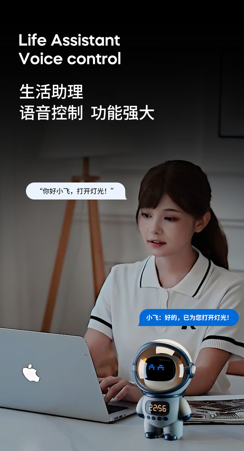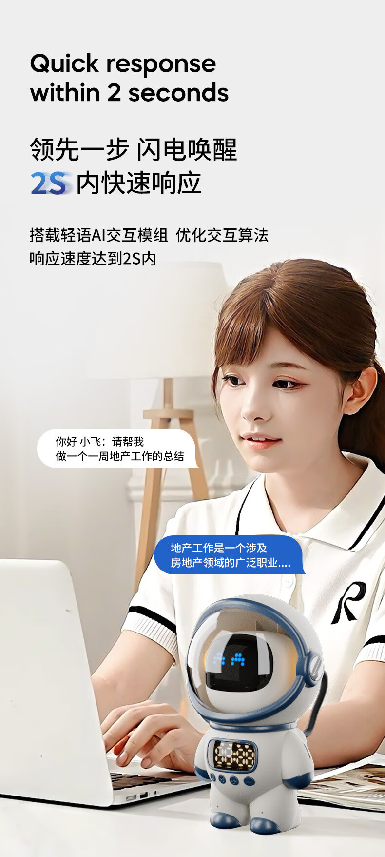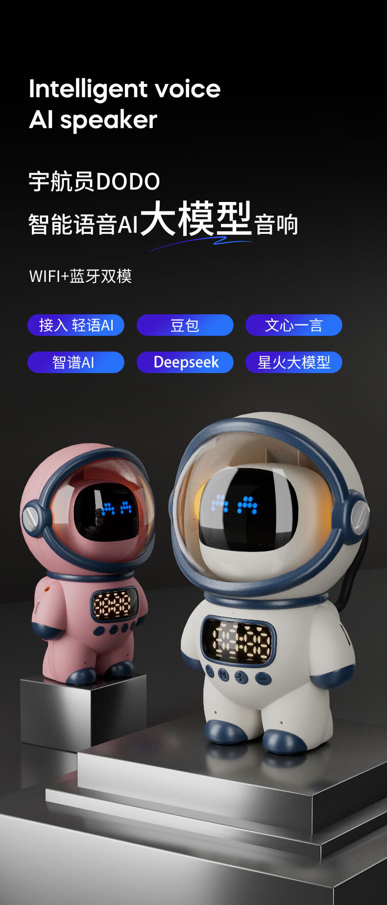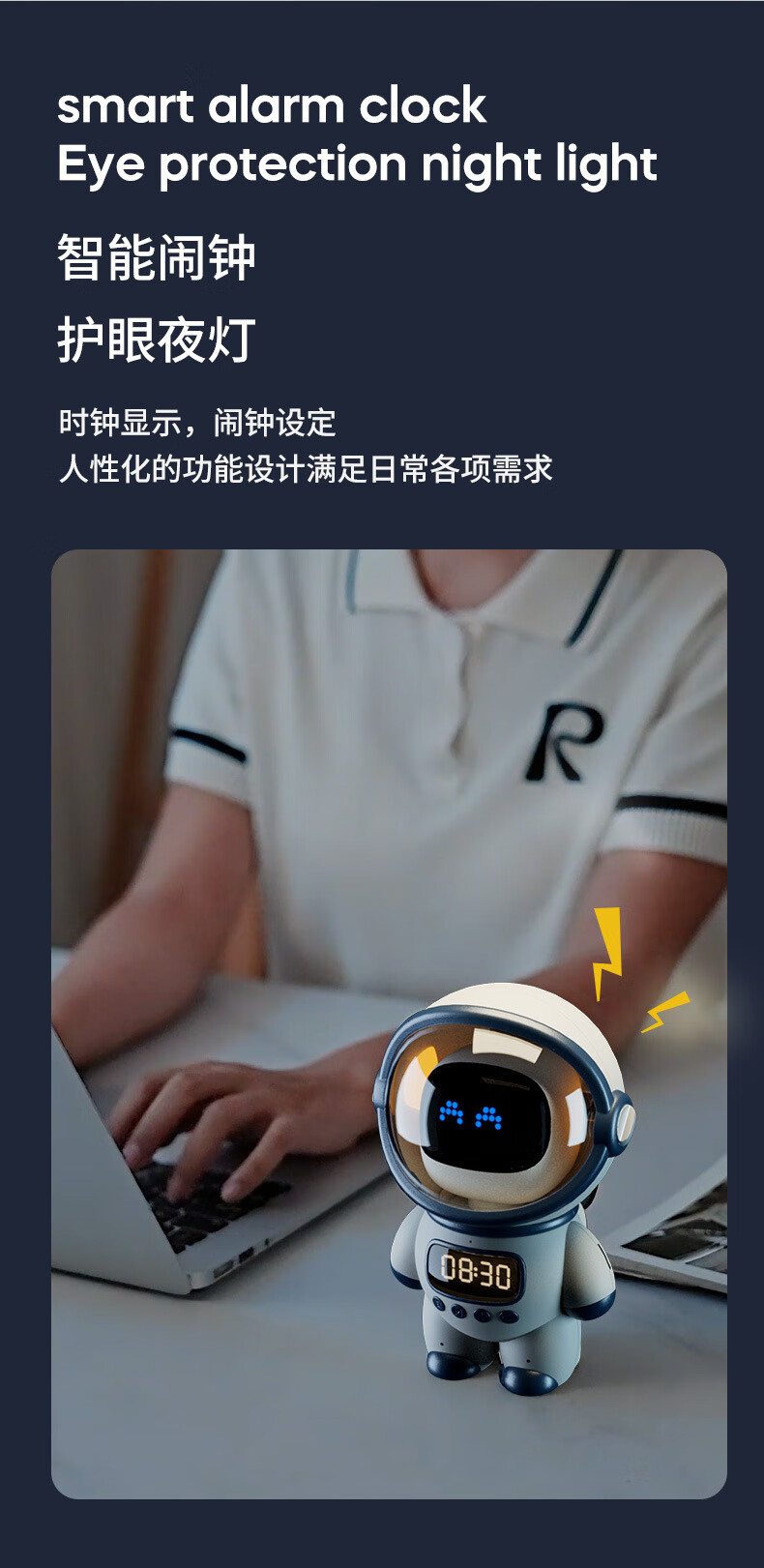 Bluetooth Speaker Astronaut Alarm Clock AI Large Model Intelligent Voice Robot AI Interactive Birthday Gift Upgraded AI Large Model Space White