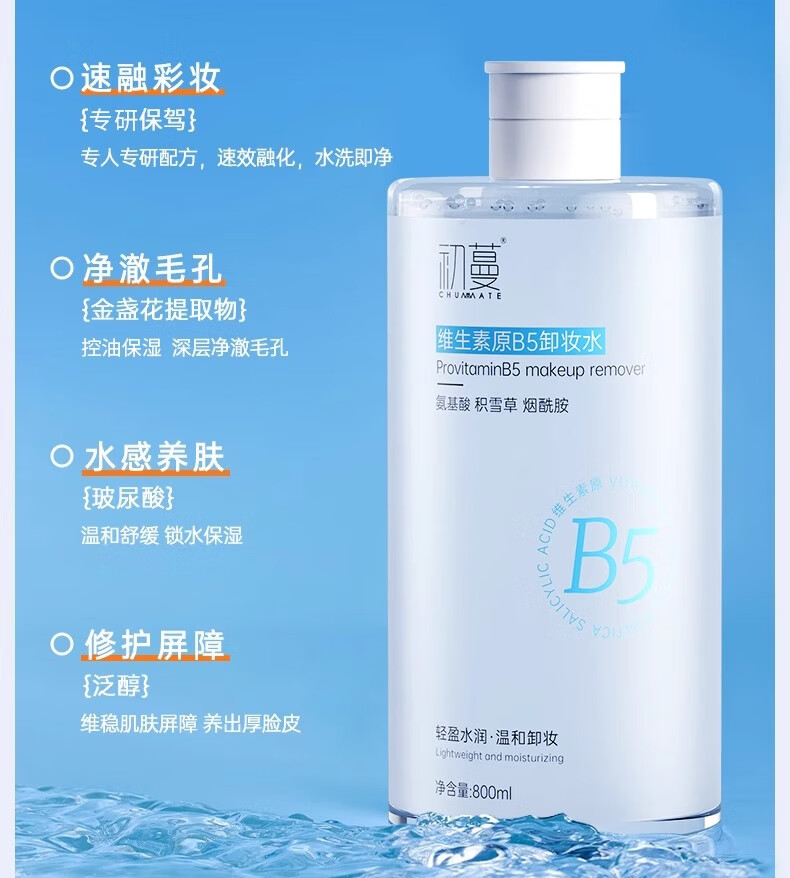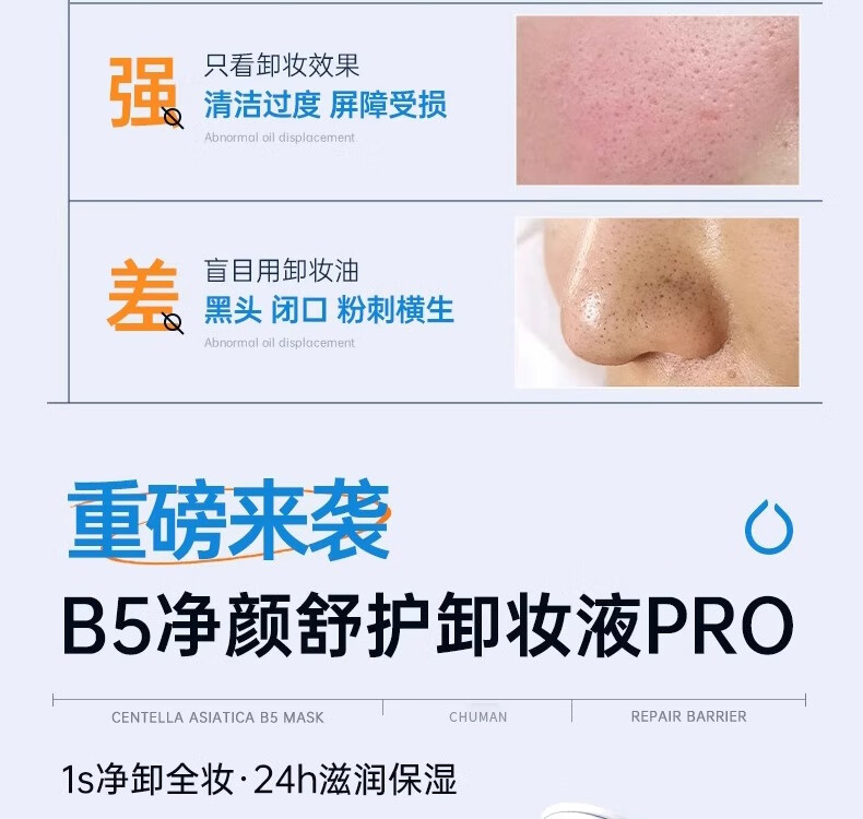 Chuman B5 makeup remover deep cleans fine pores eyes, lips and face three-in-one sensitive skin gentle moisturizing men's and women's makeup remover oil for sensitive skin B5 makeup remover 800ml large capacity makeup remover TOP list