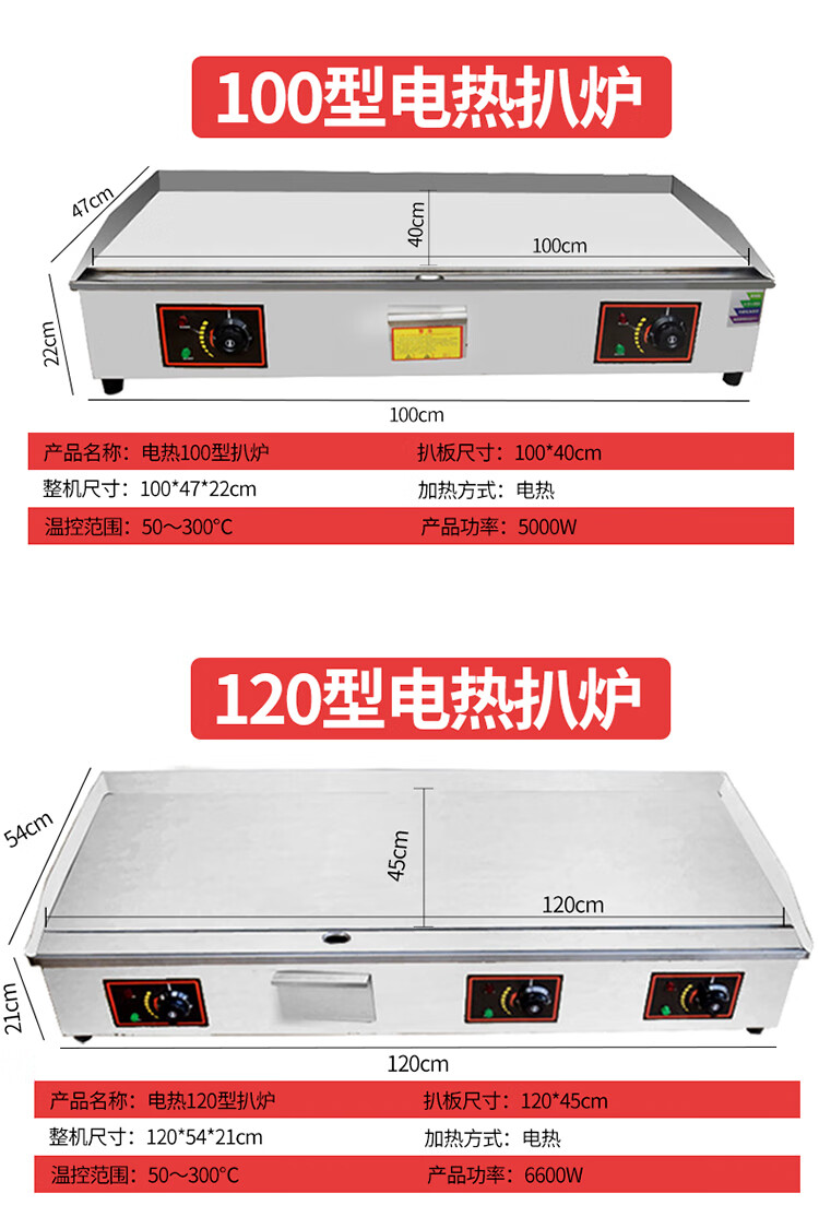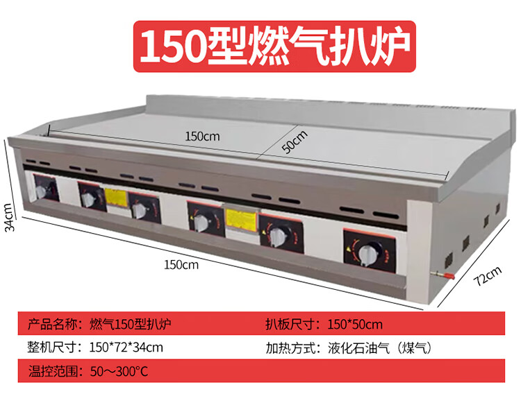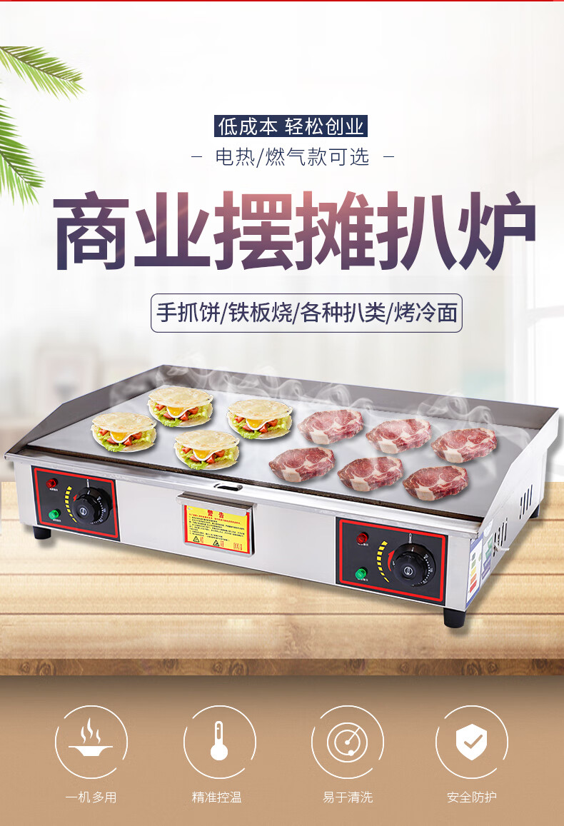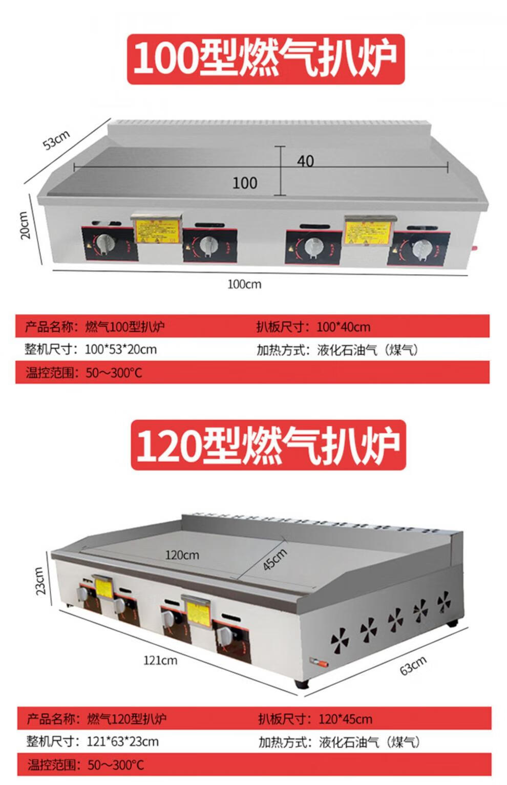 Commercial griddle gas large teppanyaki equipment teppanyaki squid grilled cold noodles machine gas hand cake machine electric heating 1.2 meters 8 mm