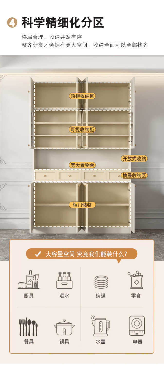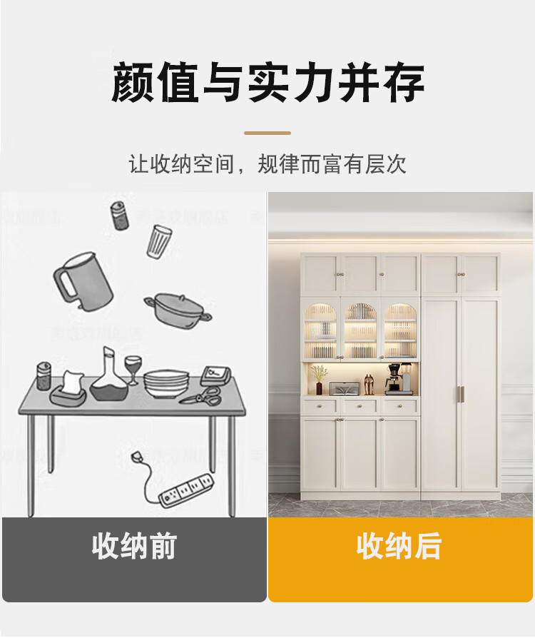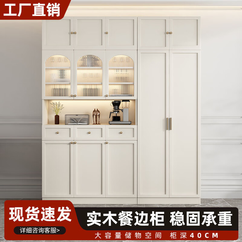 Sentai Xiong solid wood sideboard modern minimalist storage cabinet kitchen living room storage cabinet wall-mounted restaurant wine cabinet multi-functional cabinet door-to-door delivery + self-installation (cream style)/customer service 0.8 meters long - full body main cabinet solid wood sideboard