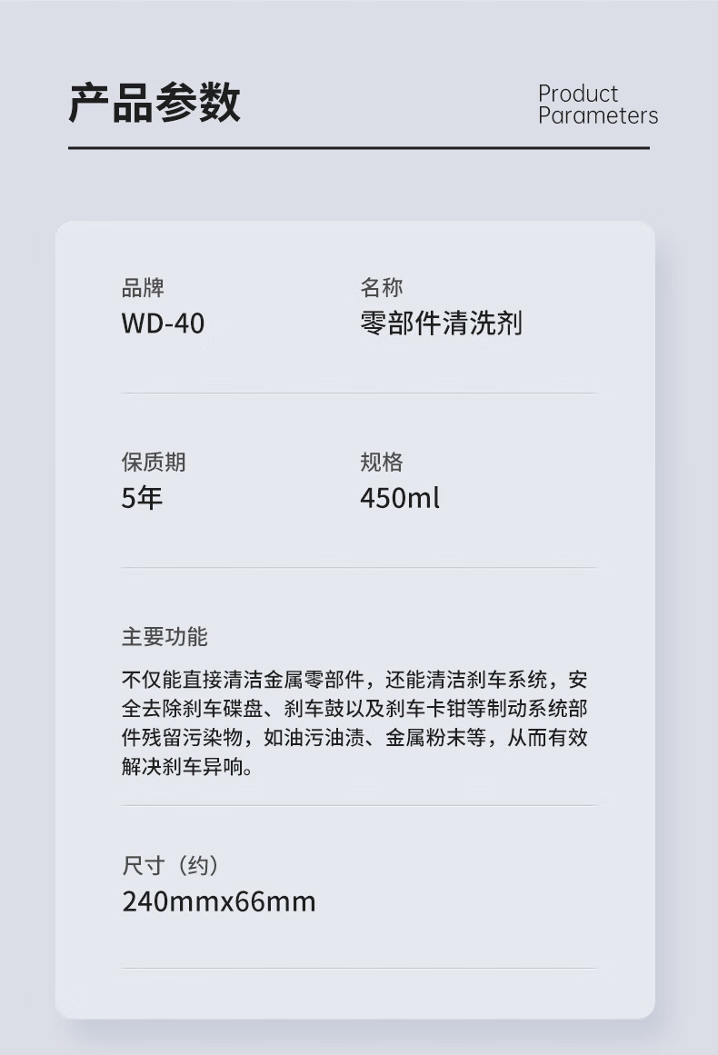 WD-40wd40 parts cleaning agent car brake caliper brake pad disc brake disc abnormal noise elimination cleaning WD40 brake parts cleaning agent 450ml eliminate abnormal noise