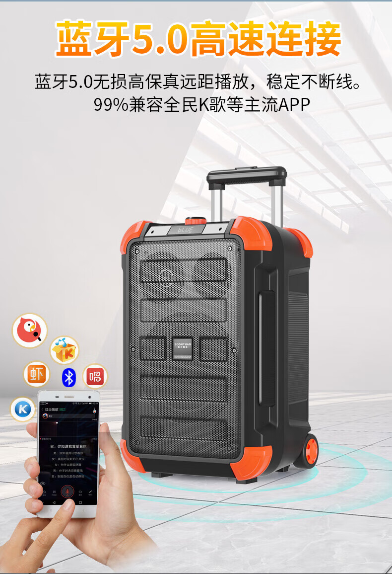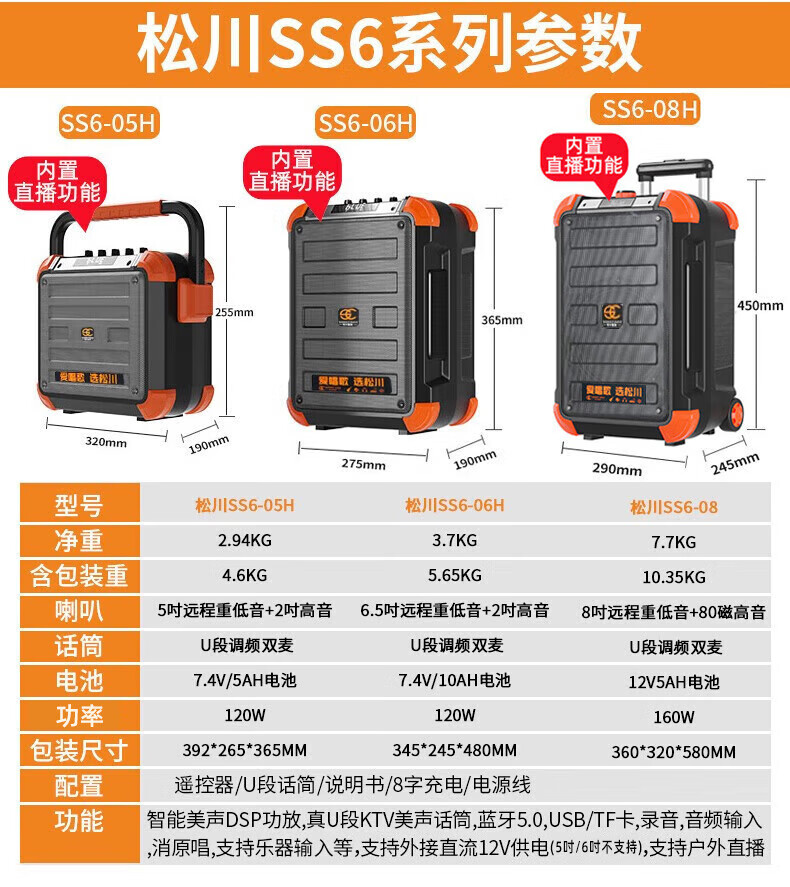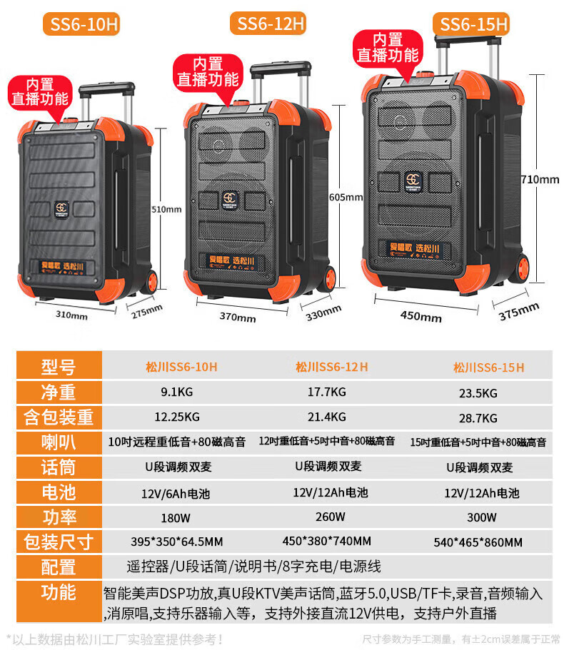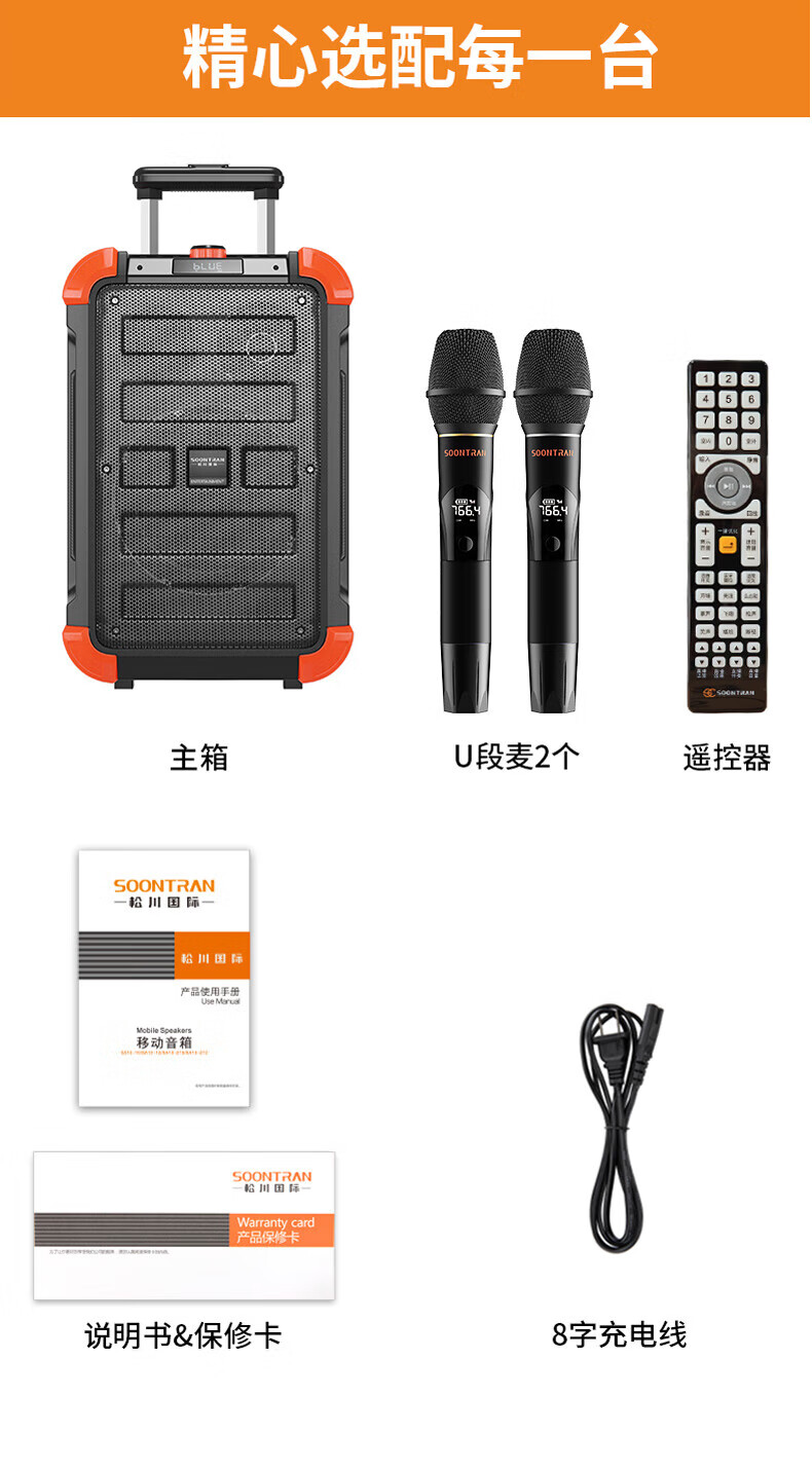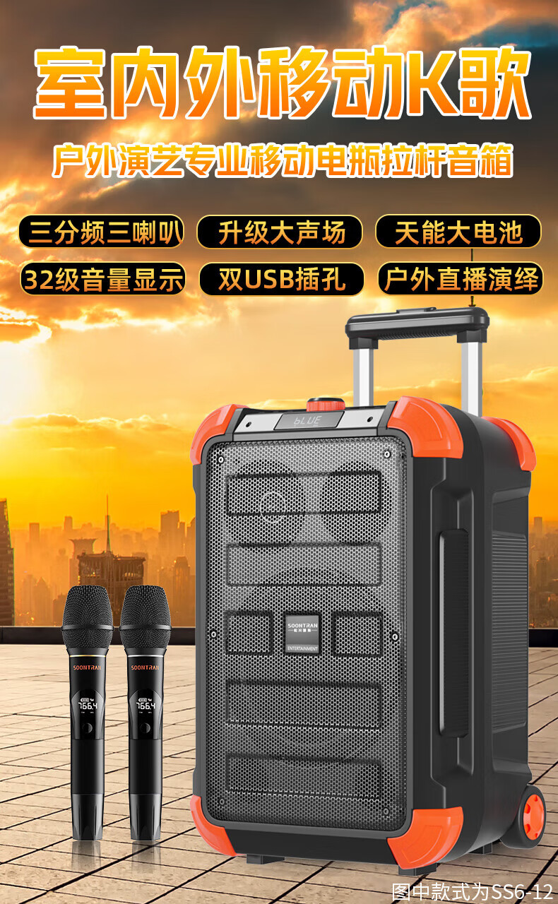 Songchuan International SS6 Outdoor High Volume Square Dance Audio Mobile Trolley Home High Power Karaoke Singing Mobile Bluetooth Speaker Stage Live Broadcast Sound Card All-in-One with Wireless Microphone SS6-05H U-segment Wireless Microphone*2+Sound Card Live Broadcast+Gift Package
