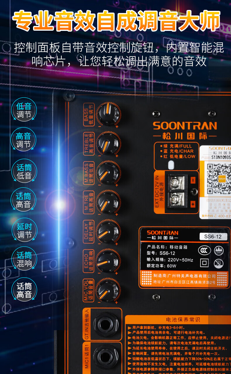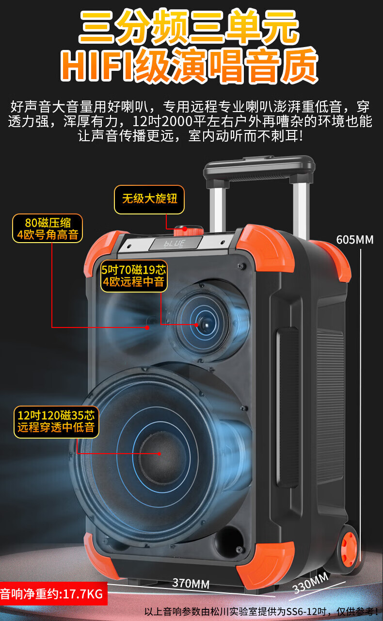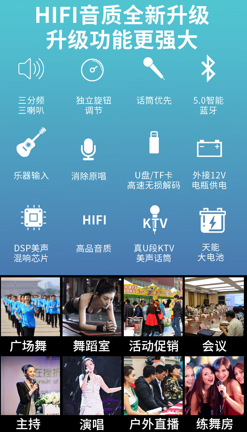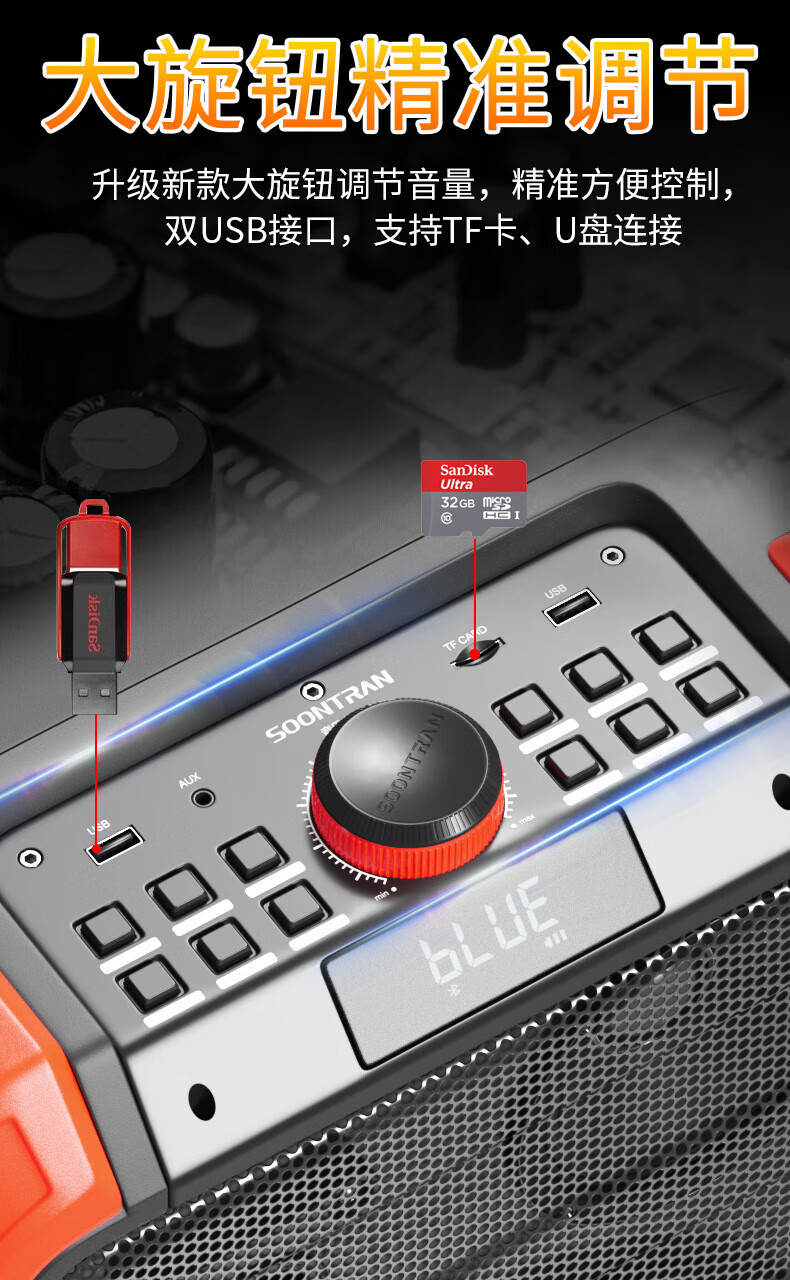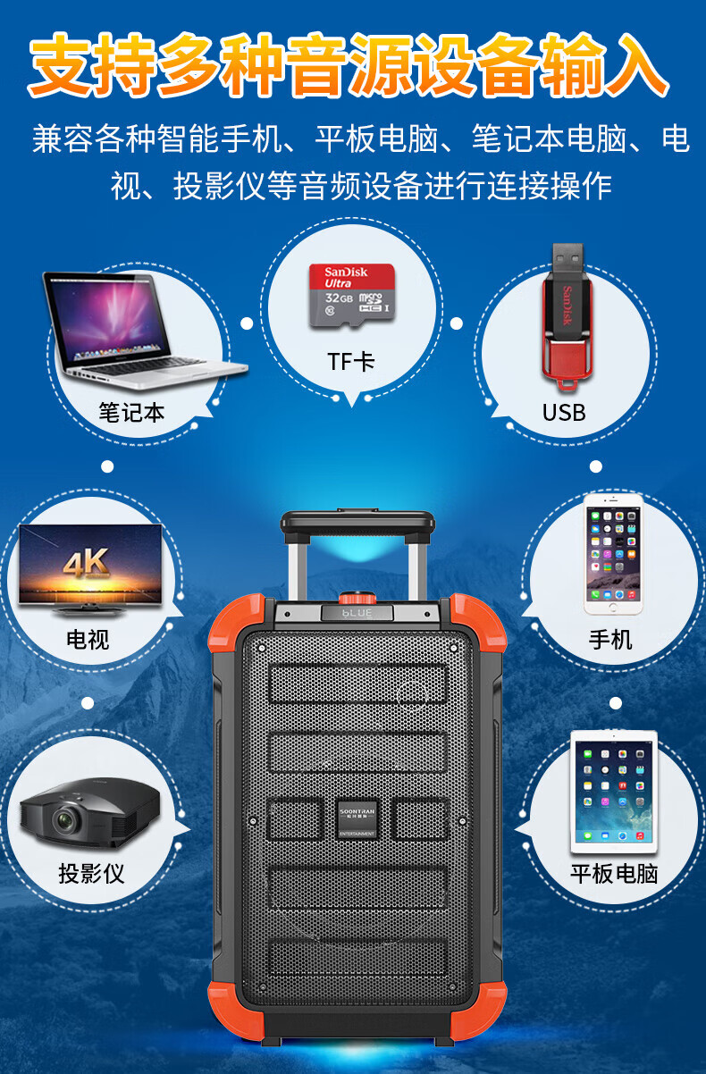 Songchuan International SS6 Outdoor High Volume Square Dance Audio Mobile Trolley Home High Power Karaoke Singing Mobile Bluetooth Speaker Stage Live Broadcast Sound Card All-in-One with Wireless Microphone SS6-05H U-segment Wireless Microphone*2+Sound Card Live Broadcast+Gift Package