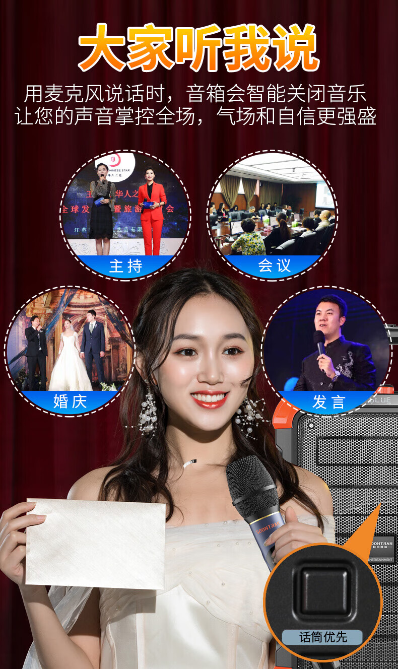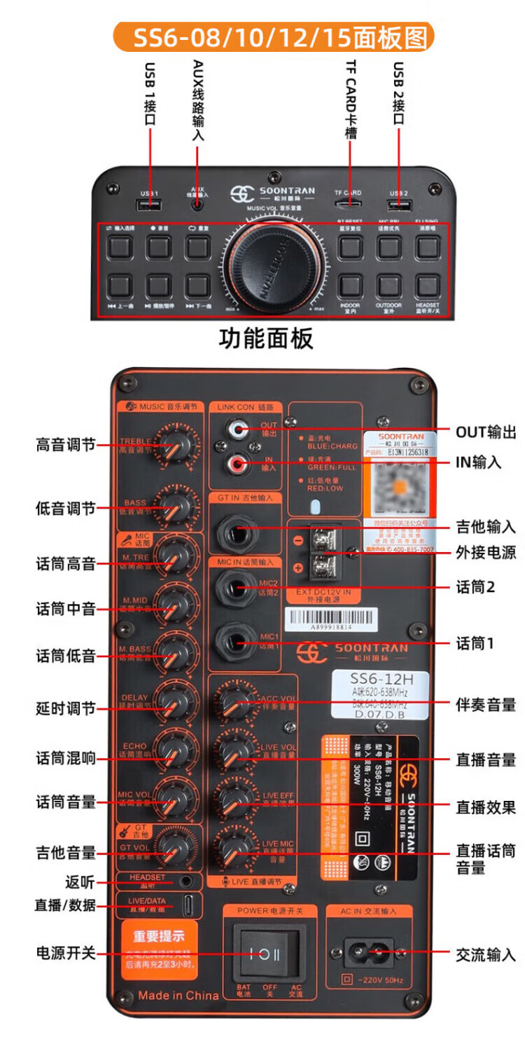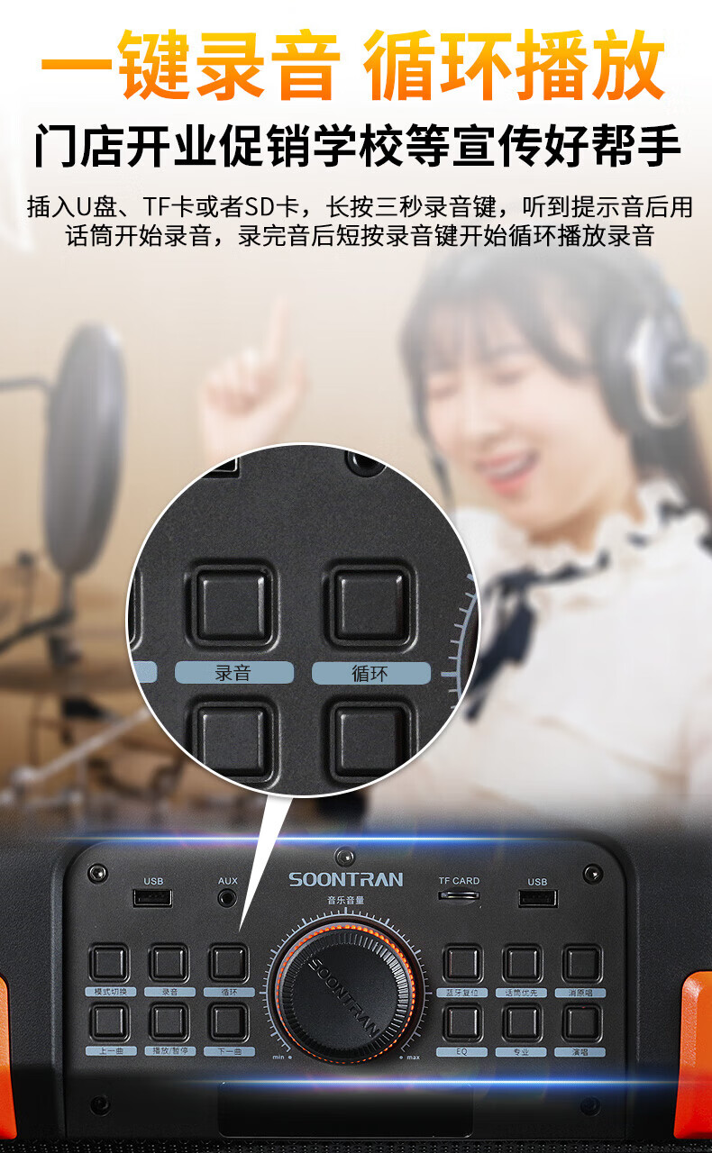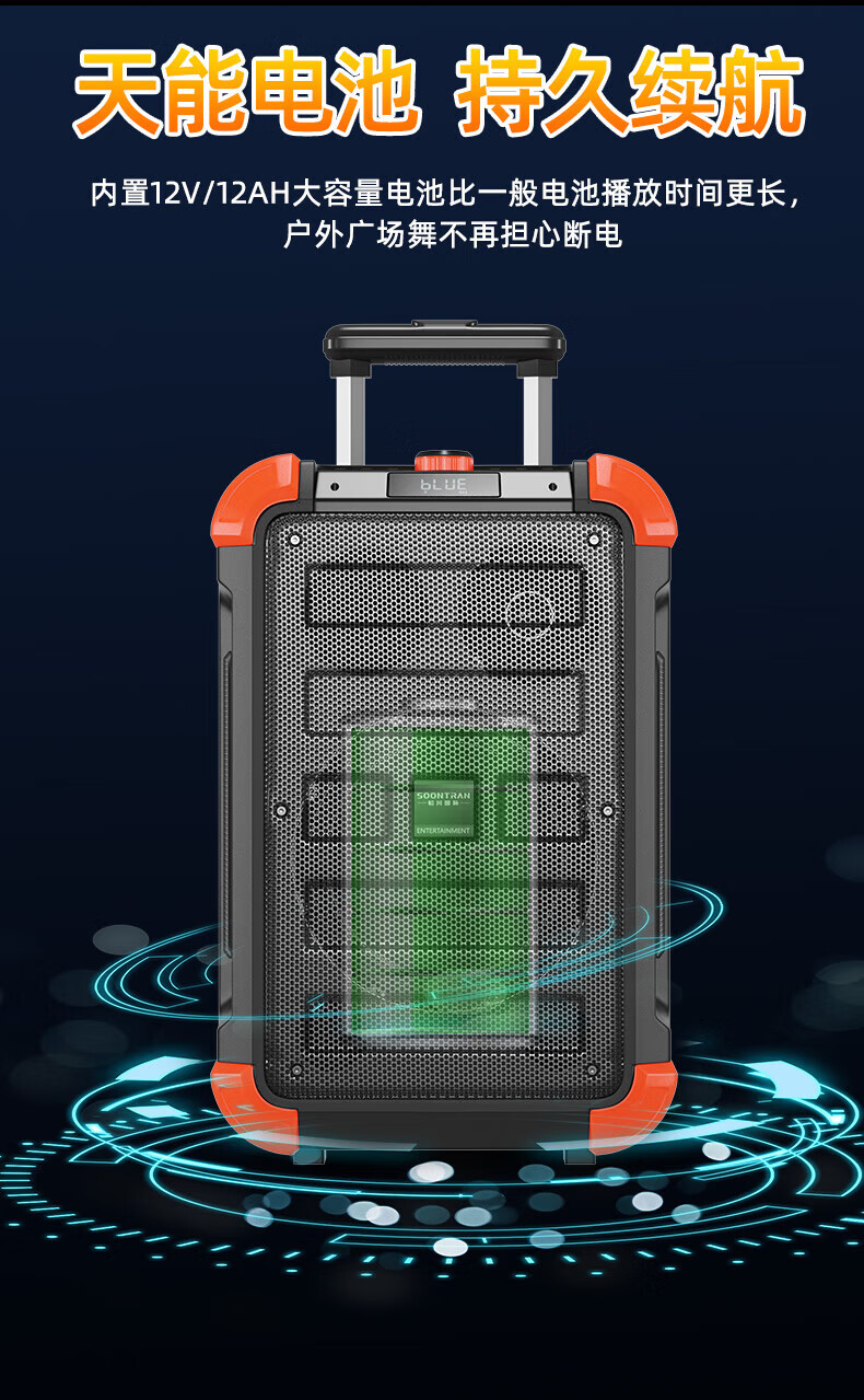 Songchuan International SS6 Outdoor High Volume Square Dance Audio Mobile Trolley Home High Power Karaoke Singing Mobile Bluetooth Speaker Stage Live Broadcast Sound Card All-in-One with Wireless Microphone SS6-05H U-segment Wireless Microphone*2+Sound Card Live Broadcast+Gift Package