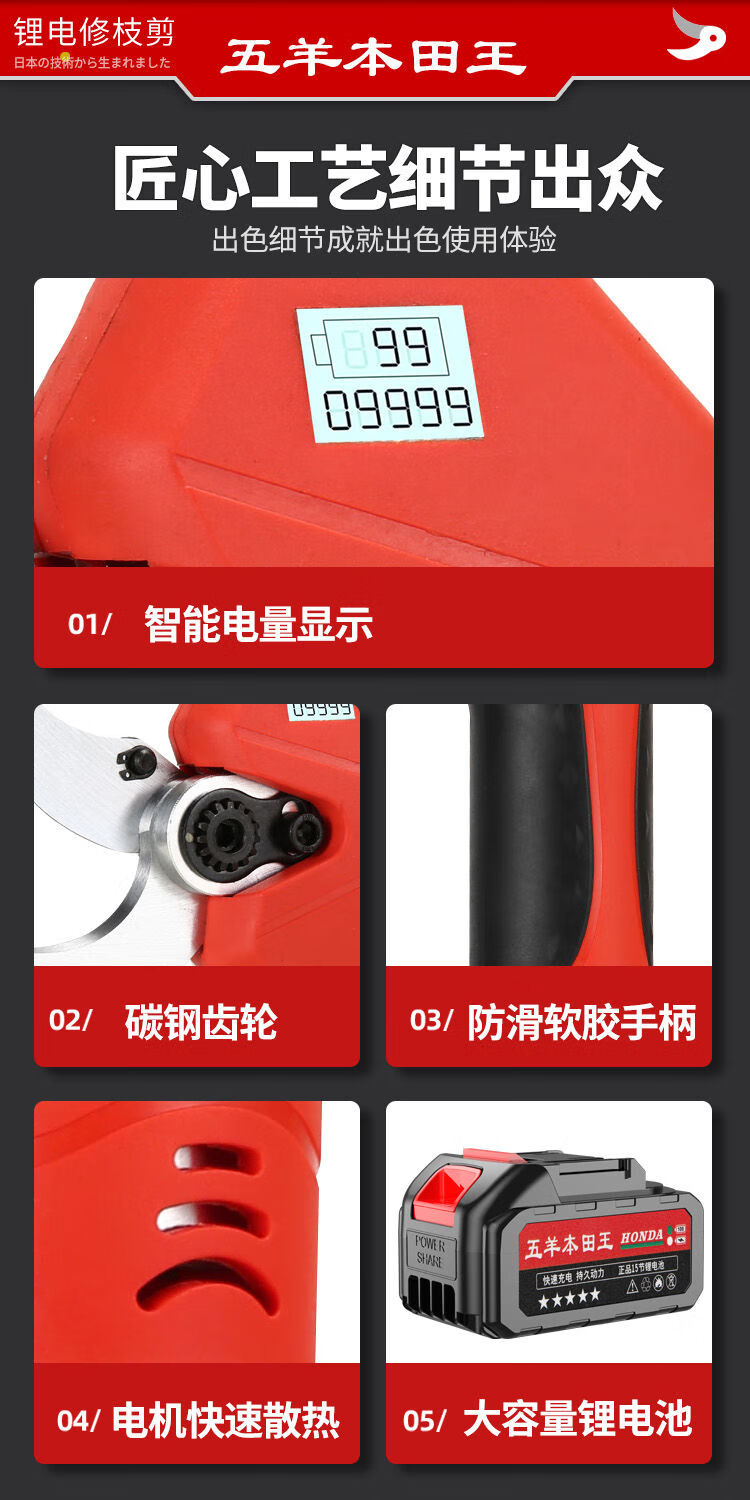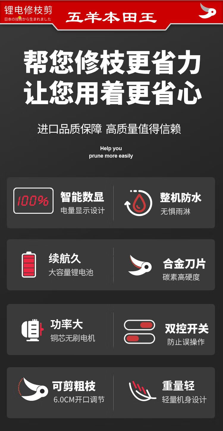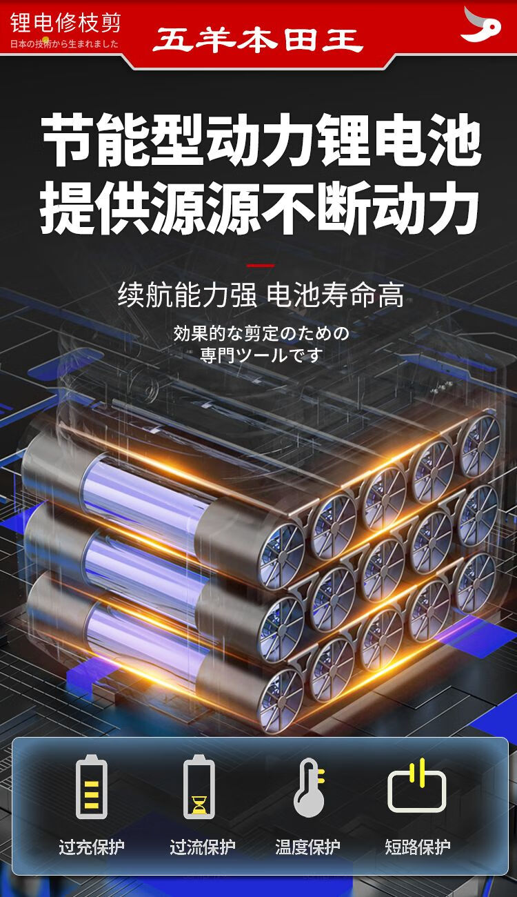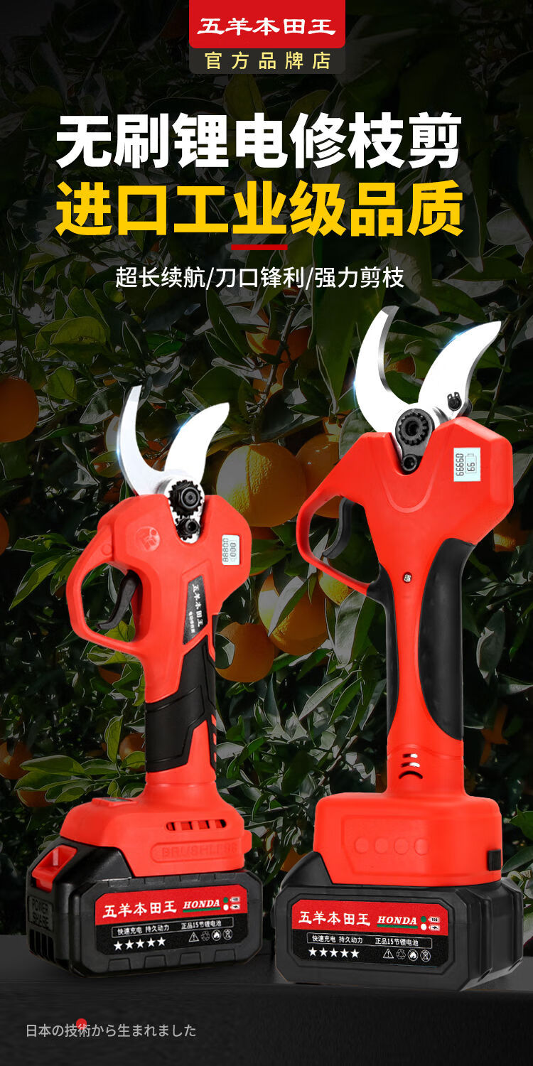 Wuyang Honda King imported from Japan, Wuyang Honda King electric scissors, fruit tree pruning, greening garden scissors, tree branch pruning artifact, 7.0 LCD display (2 batteries, 2 knives) gift pack, Wuyang Honda King imported technology 15-cell capacity battery