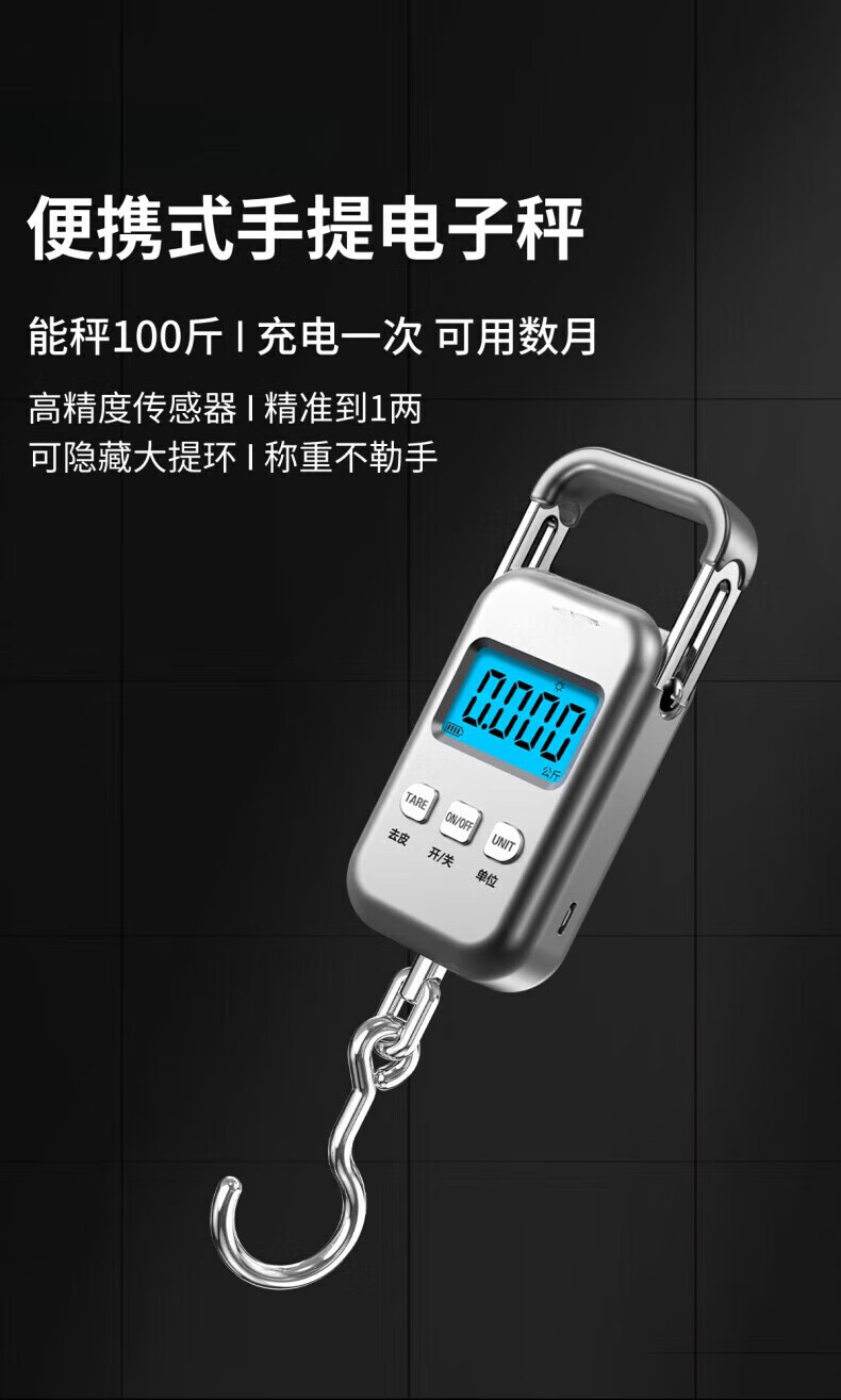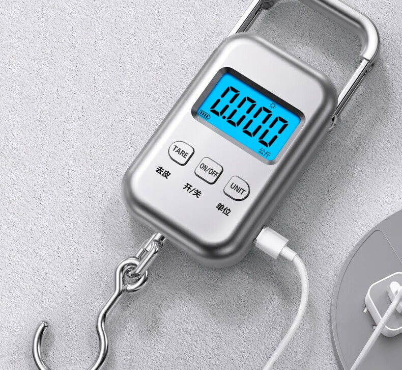 JCZS German quality portable electronic scale kitchen portable scale high-precision charging portable grocery shopping luggage hook spring charging model charging cable protective cover 25kg