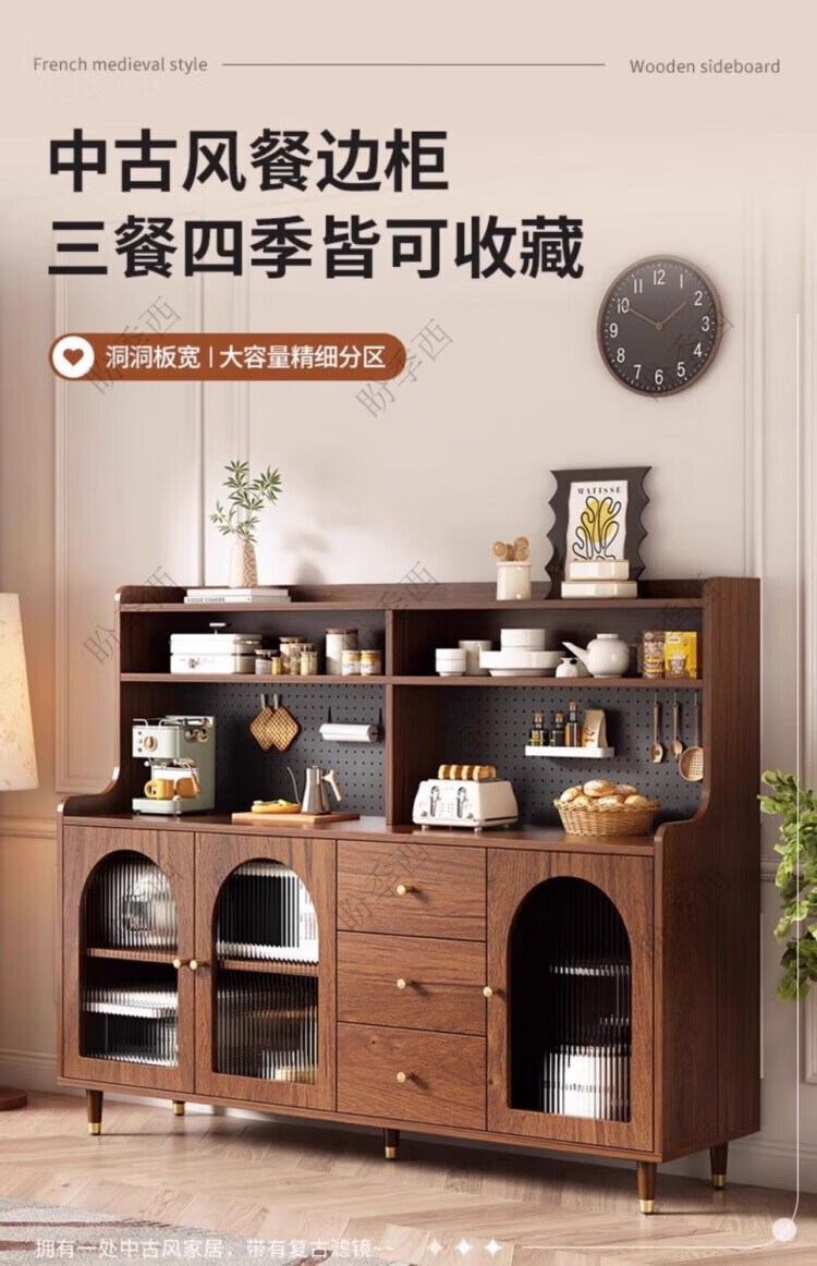 Panjixi Light Luxury Sideboard Multifunctional Cupboard Integrated Living Room Tea Cabinet Wine Cabinet Modern Simple Wall Kitchen Storage Cabinet 60-40-145 Glass Door (Installation Included)