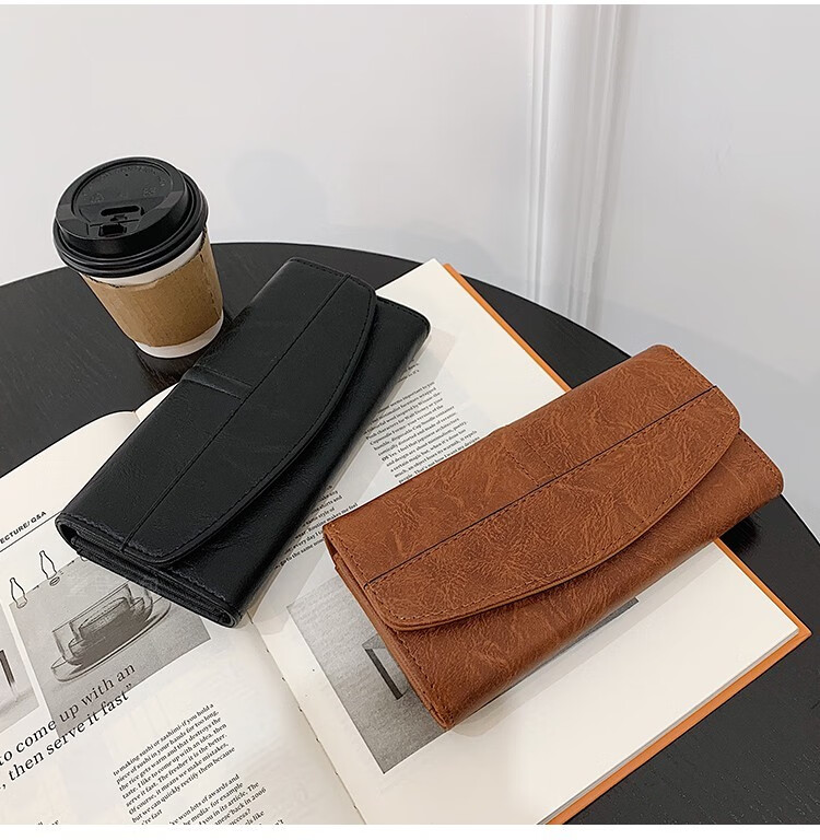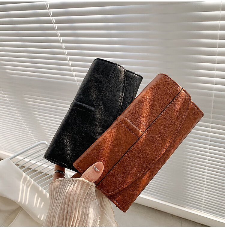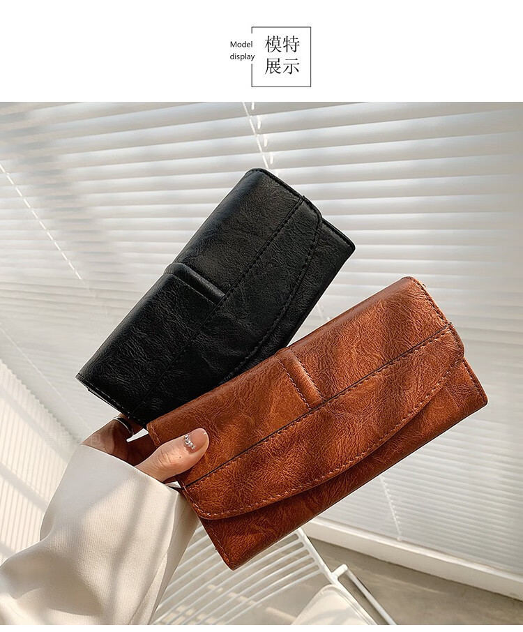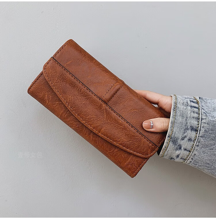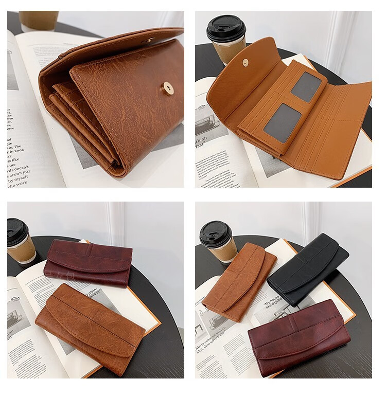 Scarecrow 2025 new wallet card holder all-in-one bag for women multifunctional simple long versatile soft leather large capacity wallet bag dark red