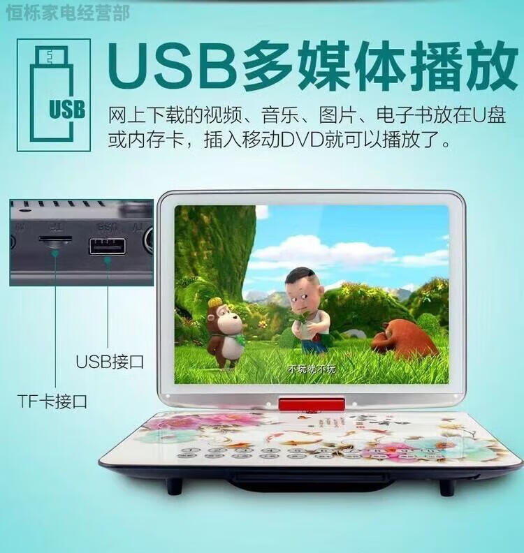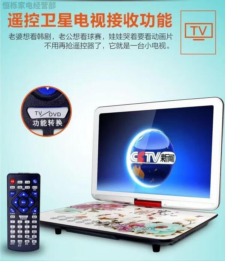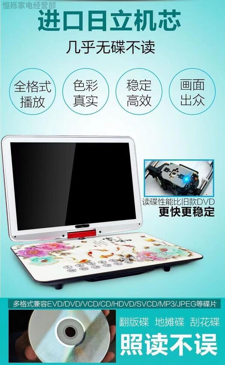 SAST mobile DVD player portable evd children and the elderly small TV cd/vcd integrated high-definition wf large screen black 15-inch new mobile DVD