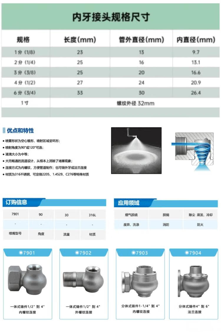 Nozzle nozzle high-pressure stainless steel 4-point vortex desulfurization tower dust removal exhaust gas treatment spray tower anti-clogging environmentally friendly spray nozzle 1/2 (4 points) external thread 4 pcs