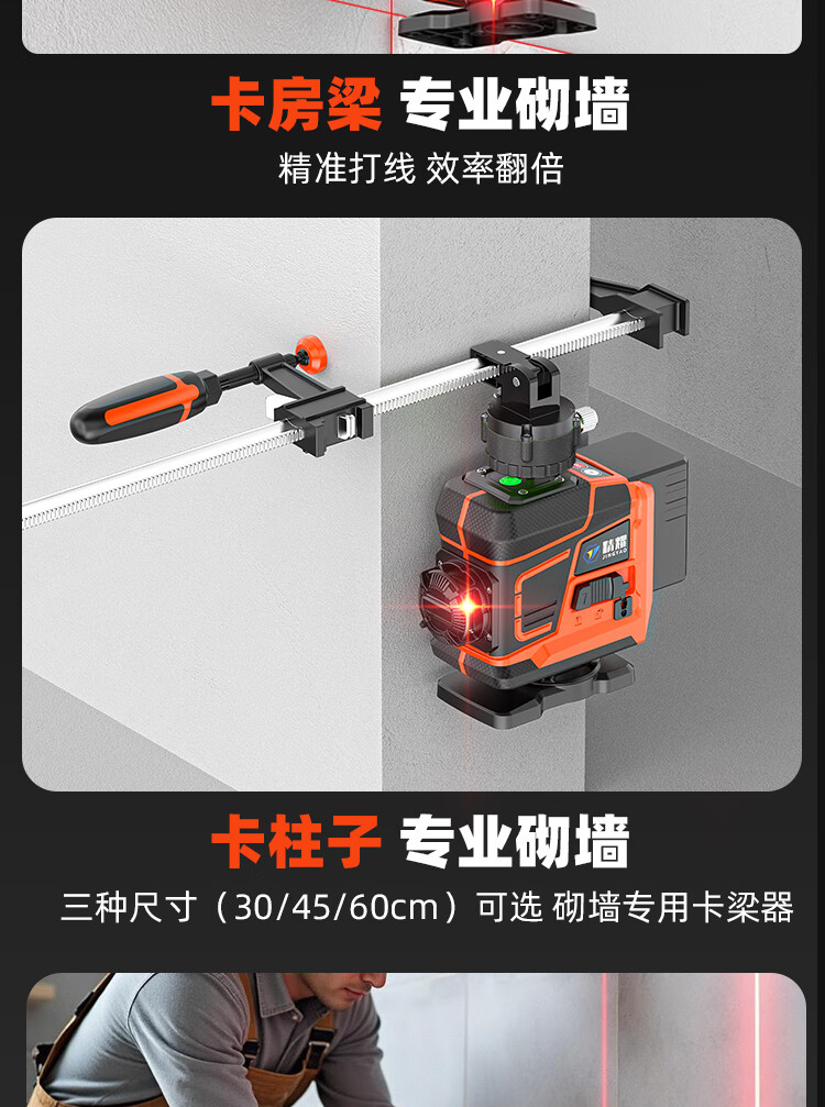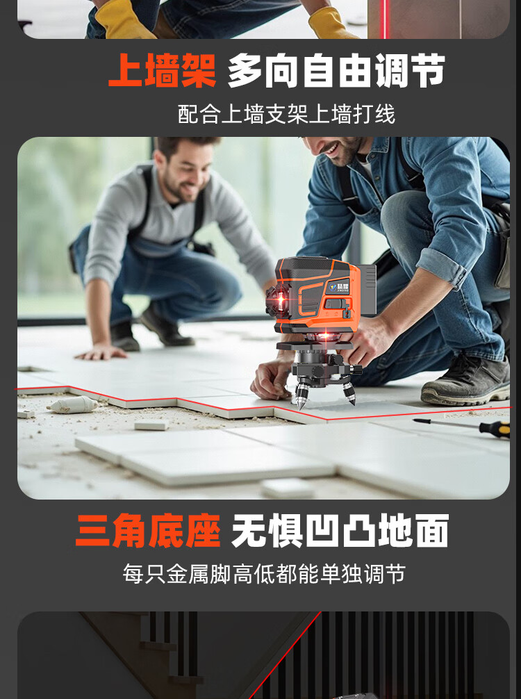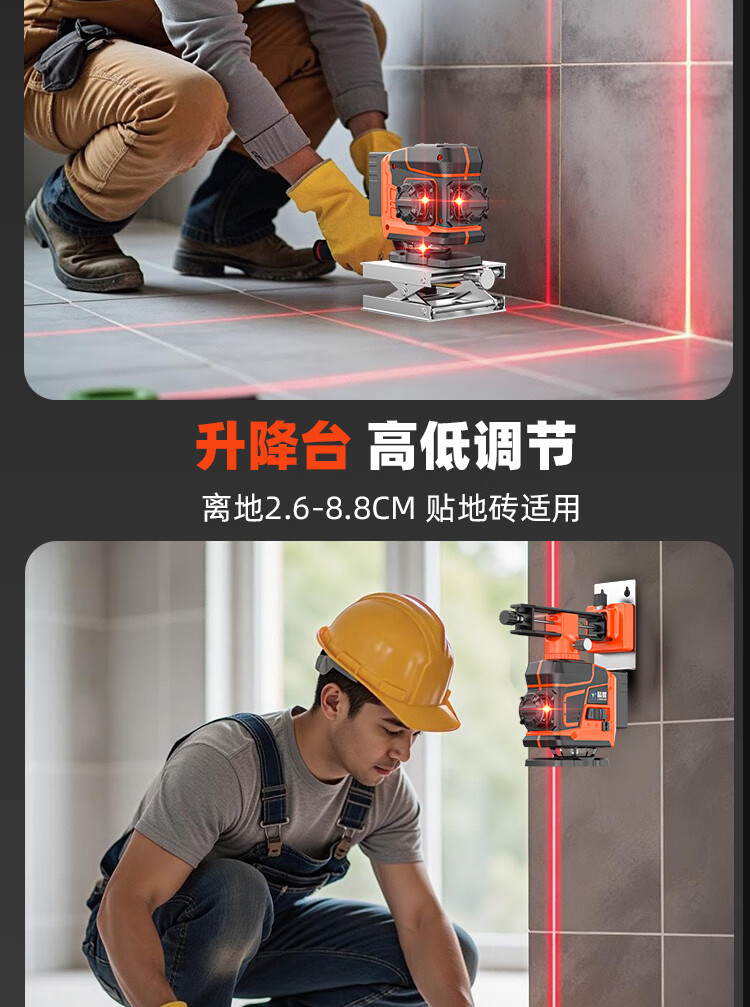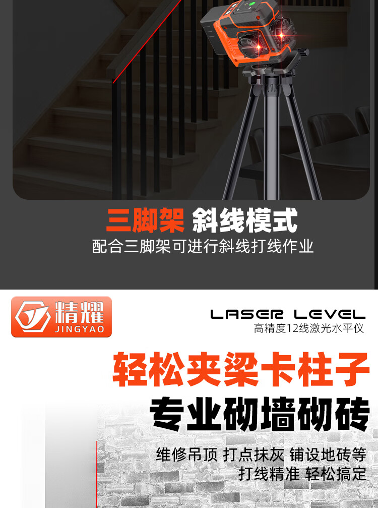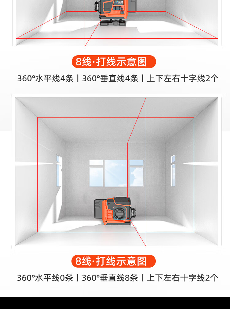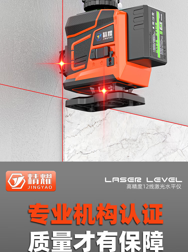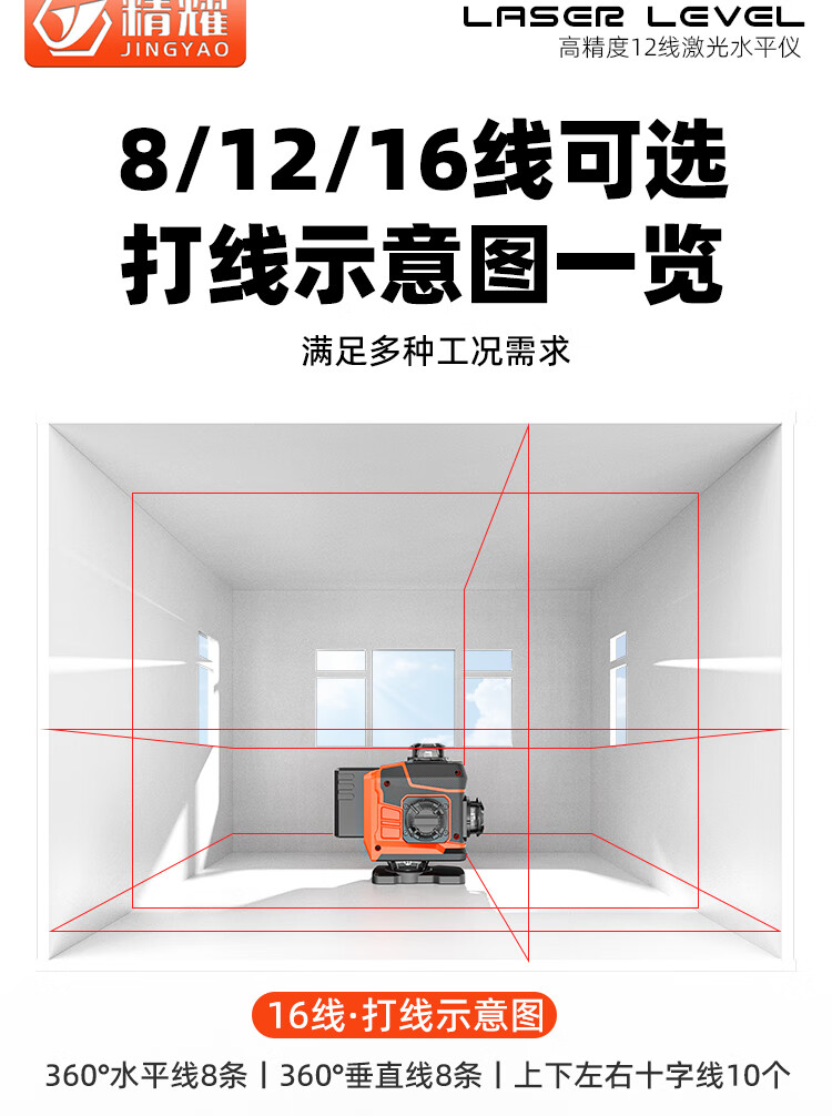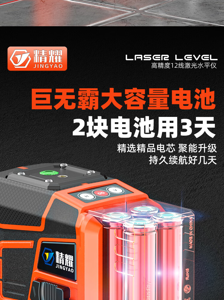 Jingyao infrared automatic leveling outdoor high-precision strong light high-brightness red light 12-line green light laser level red light 12-line (two power) simple configuration