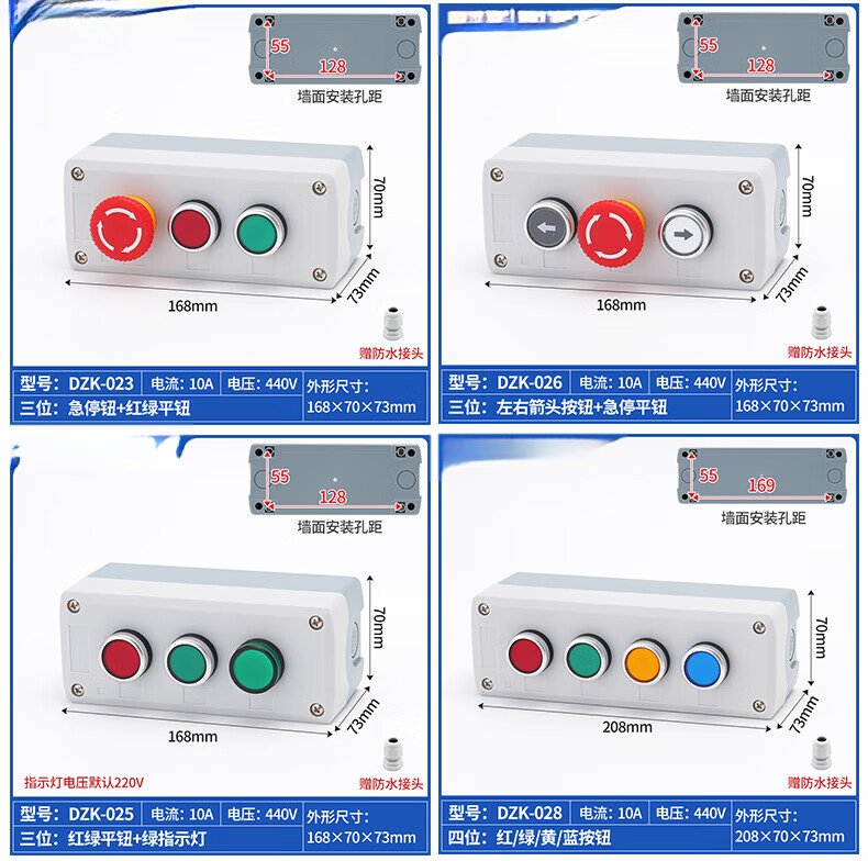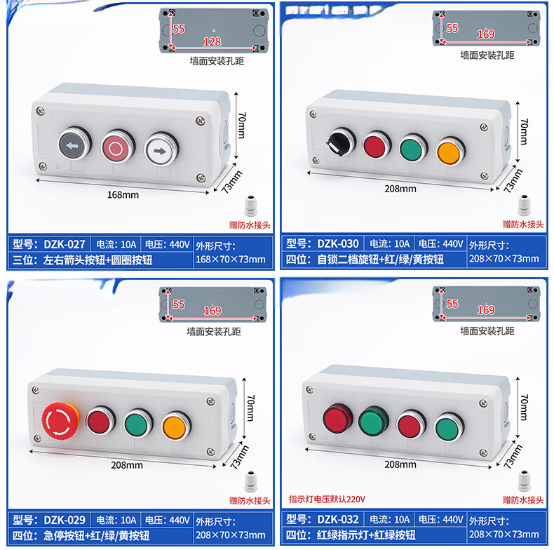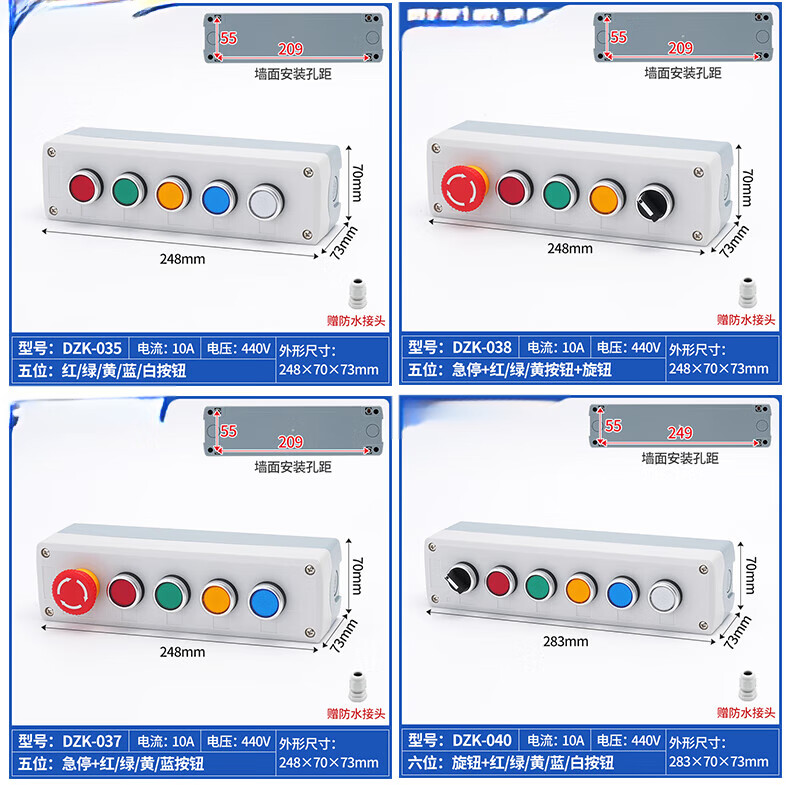 High-quality push button switch control box 123456 holes start and stop fan control plastic thickened waterproof shell Customized private shooting not shipped
