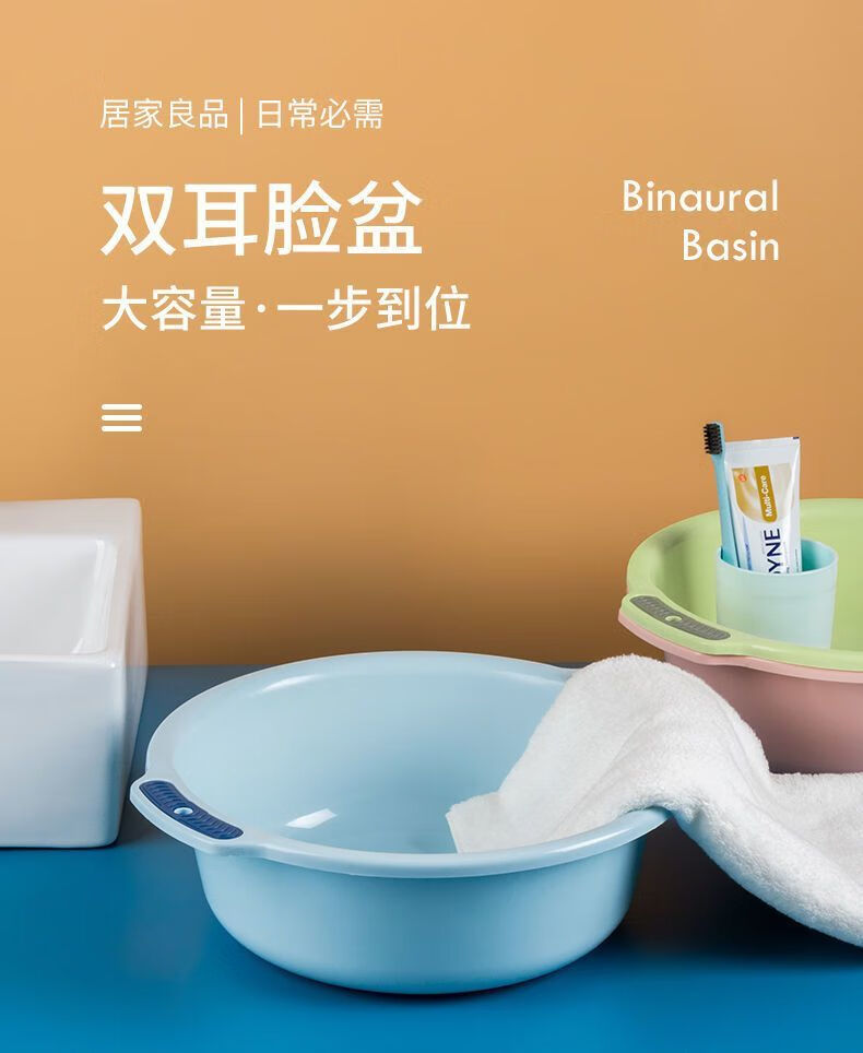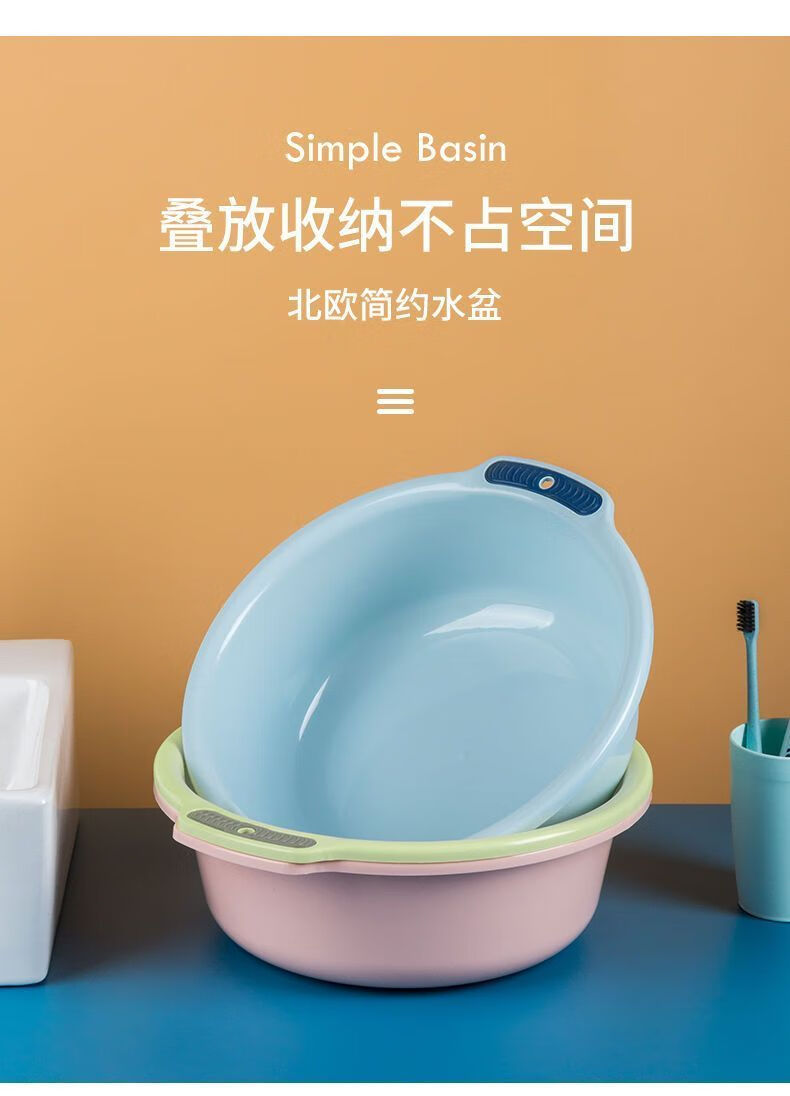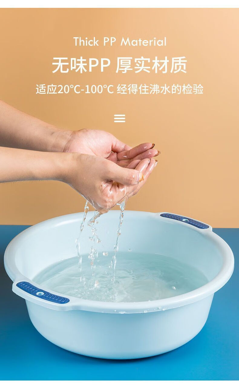 Enshousu thickened and deepened basin household large and small baby washbasin student dormitory laundry basin washing vegetables and feet plastic basin 2023 thickened anti-slip blue 2025 single + small size 26*8*18