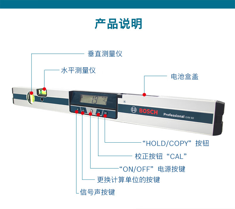 Bosch (BOSCH) digital inclination level GIM60 horizontal instrument inclination level electronic digital display level GIM60 standard