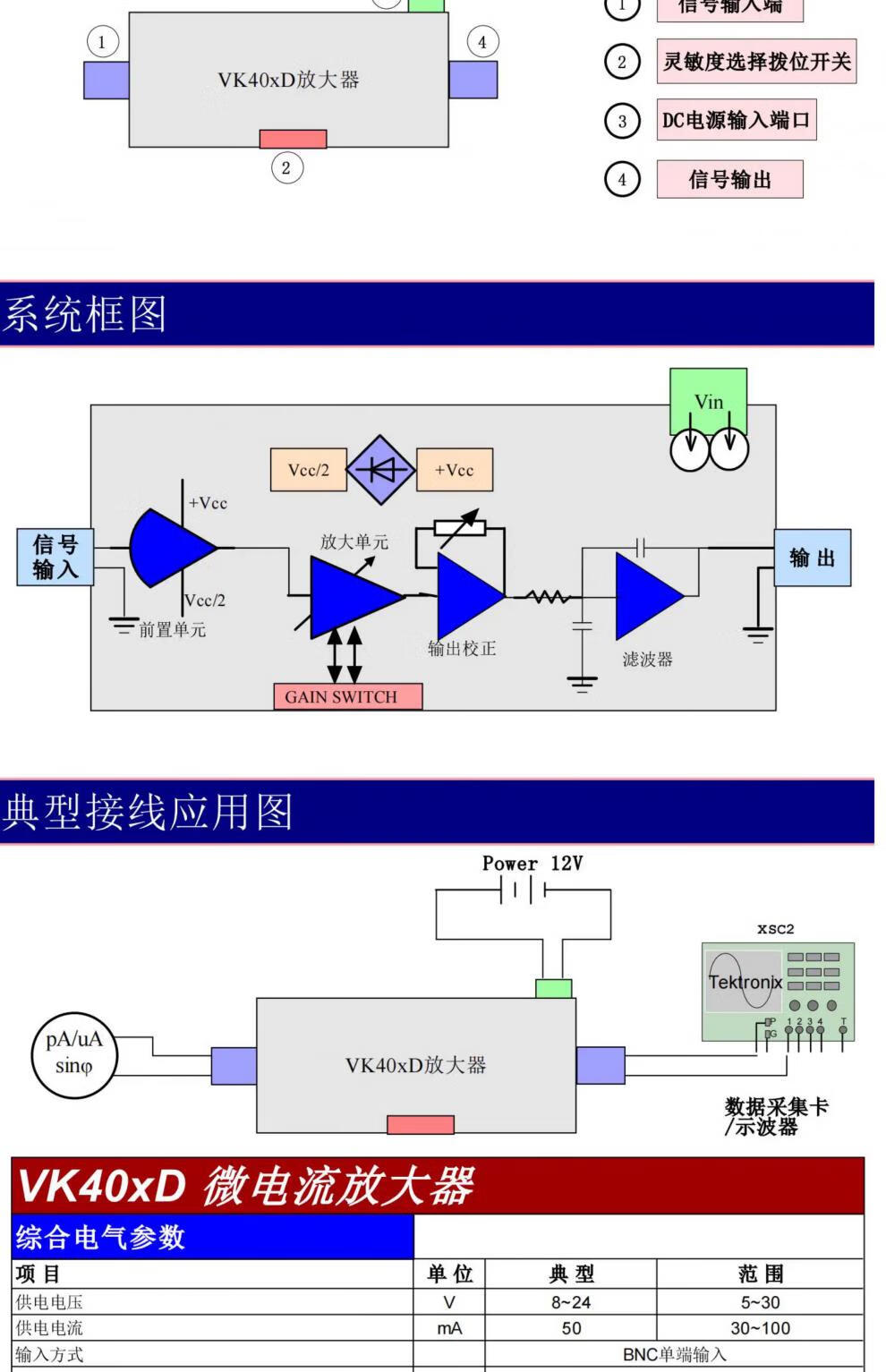 Microcurrent amplifier pA nA uA Micropinanoampere Optoelectronic transmission preamplifier 0-500hz VK401