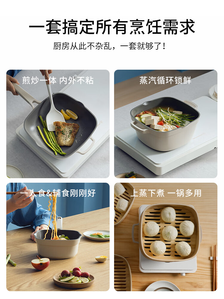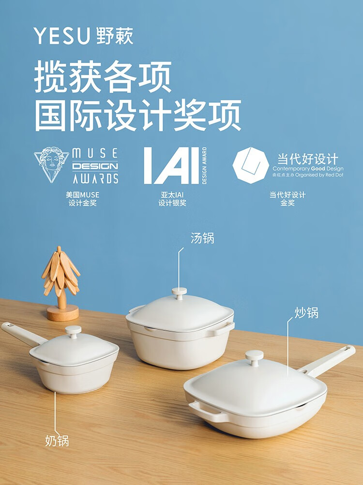 YESU YESU YESU burger pot pot set, full set of home kitchen non-stick frying pan, new home kitchen utensil set, Haoyue White three-piece set 28CM Burger King wok + soup