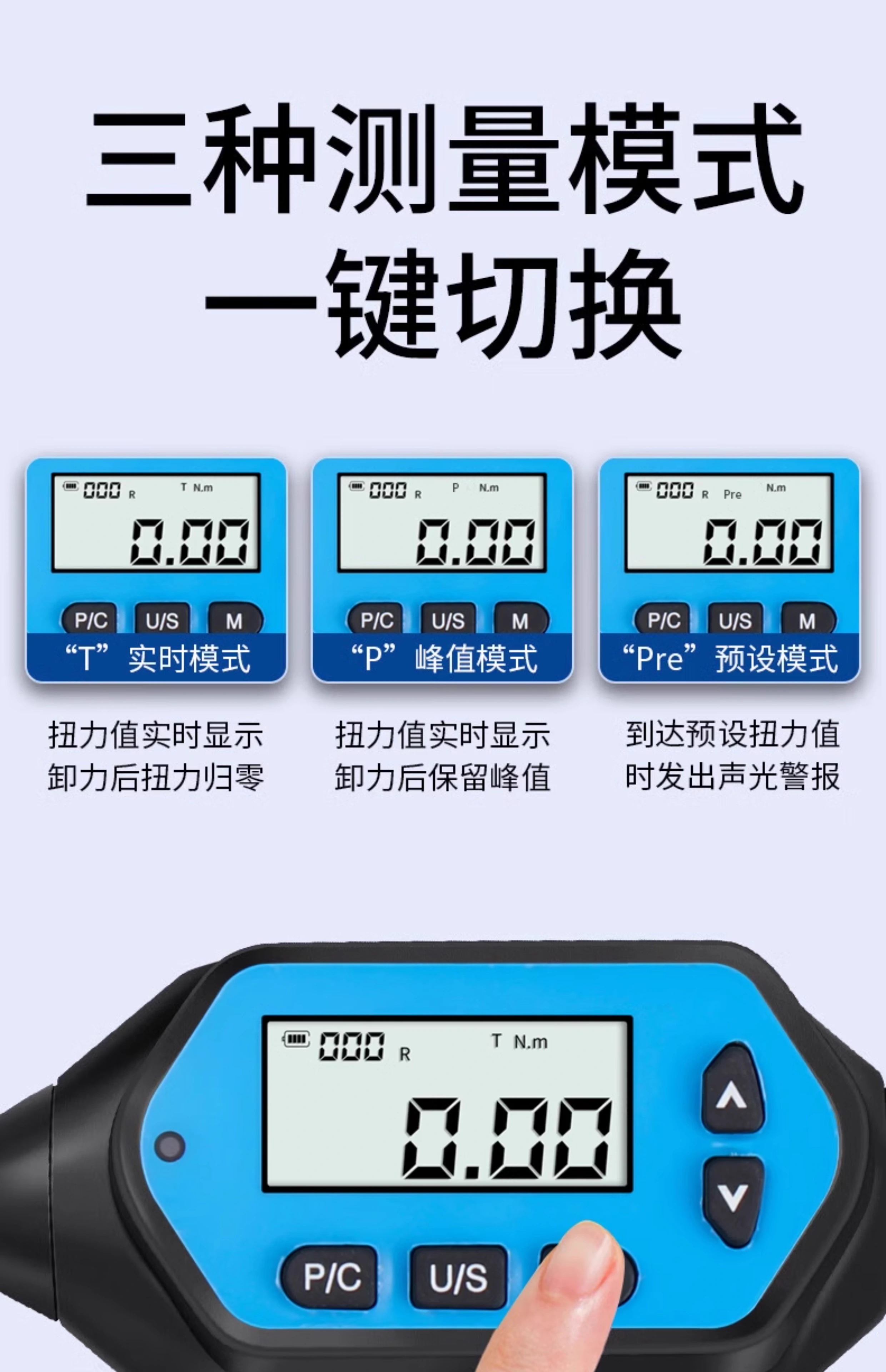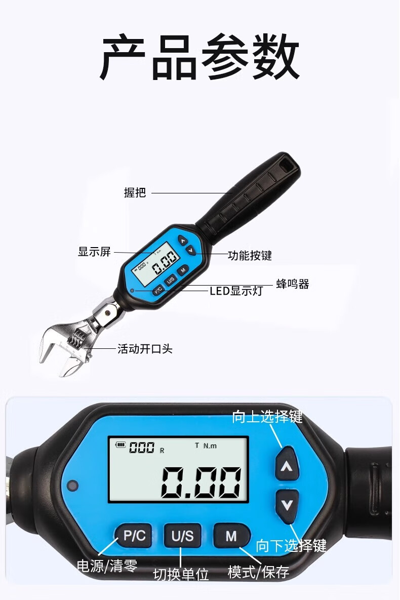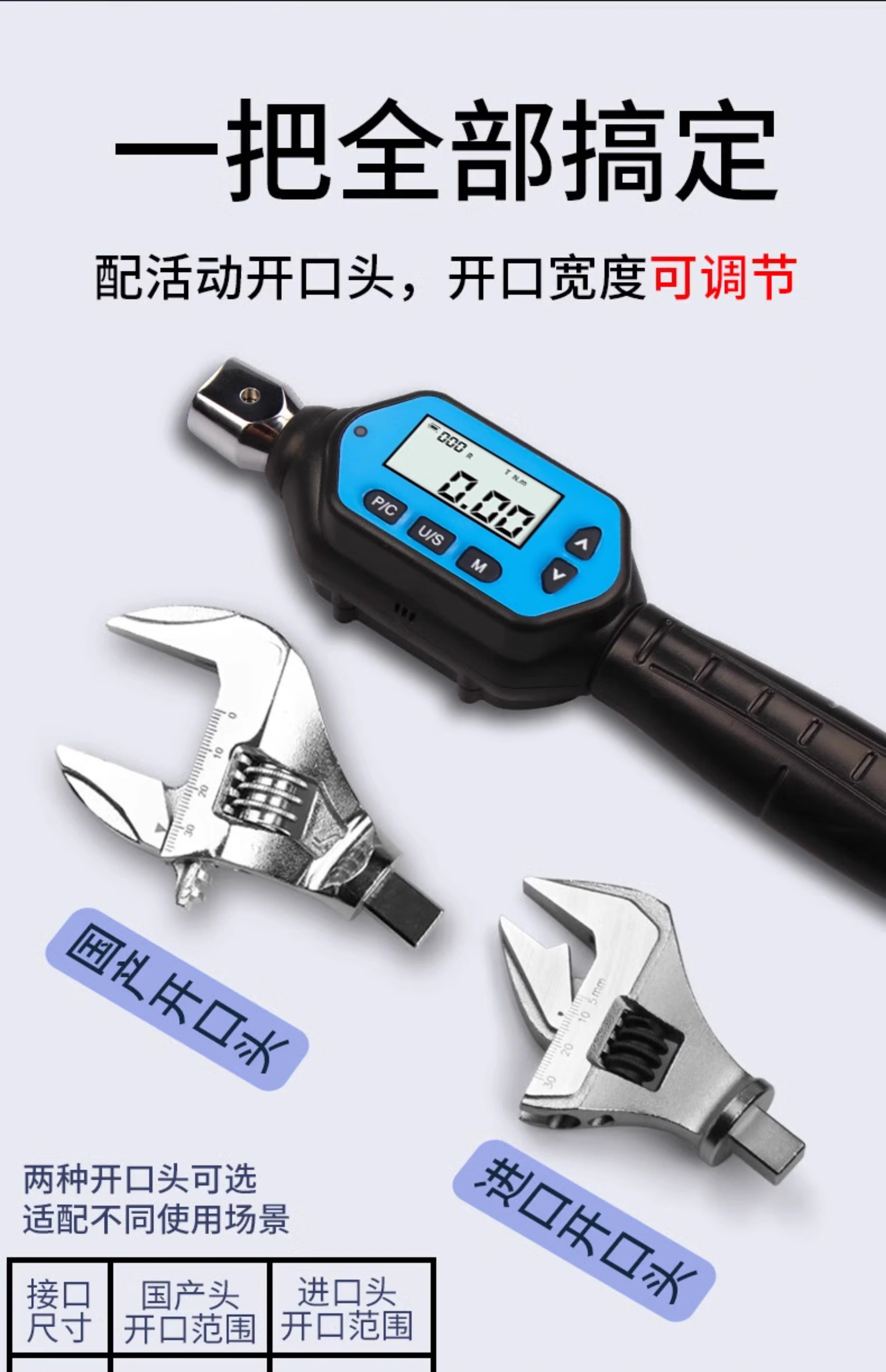 HEMUELE electronic digital display torque wrench with replaceable movable head, open ratchet, preset torque in kilograms, height adjustment accuracy, long handle 14*18, torque 30-500N.m, without head