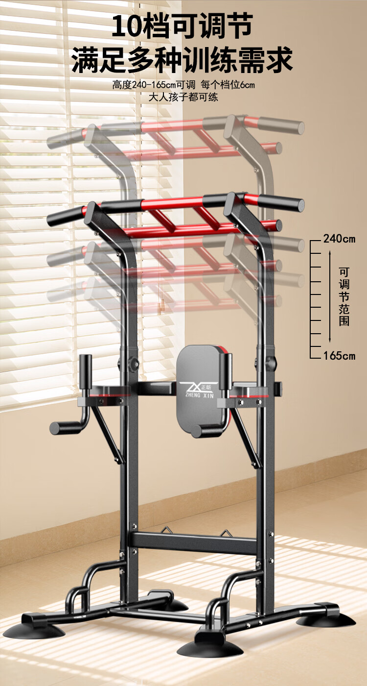 ZHENG XIN pull-up device horizontal bar household horizontal bar indoor multi-functional student high school entrance examination male and female stretching fitness equipment height adjustable to 2.4 meters 066 red and black