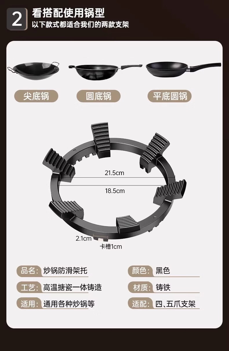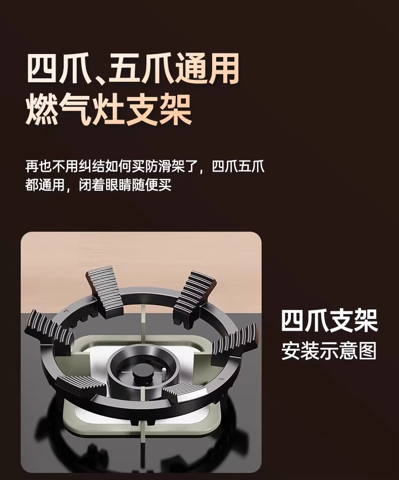 Qiting gas stove bracket thickened cast steel gas stove bracket anti-slip pot holder kitchen stove bench holder four claws five claws universal pointed bottom pot round bottom pot wok small milk pot accessories six teeth upgraded anti-slip reinforced universal model