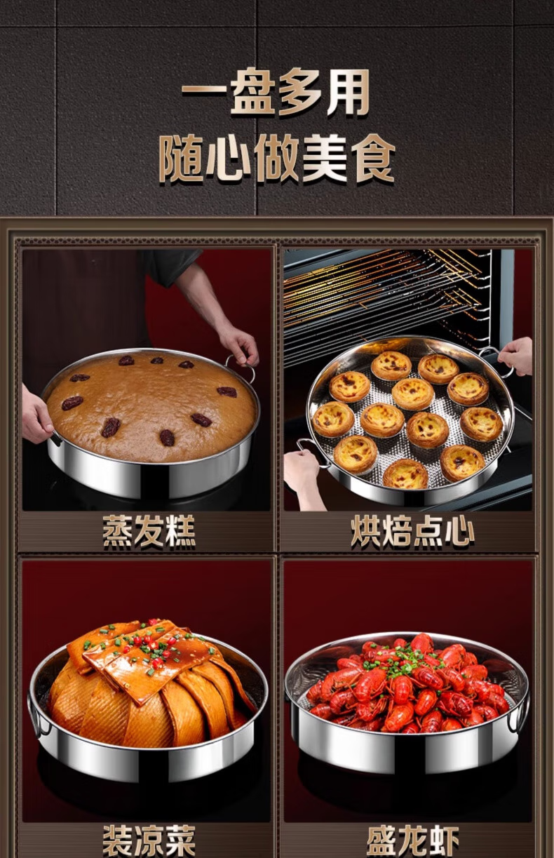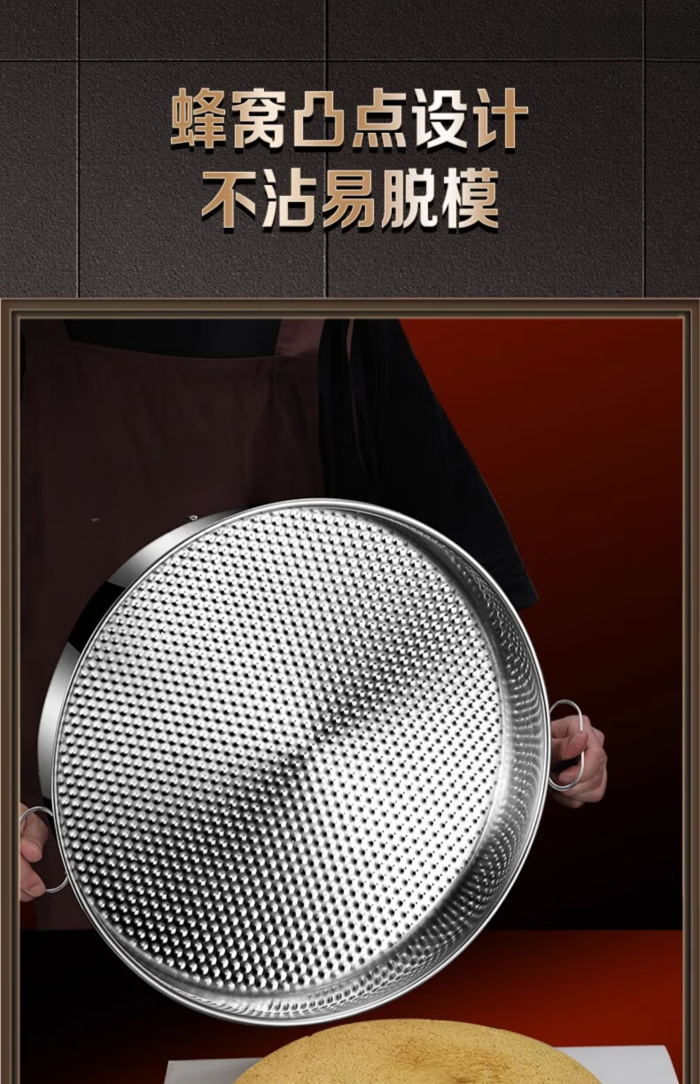 Man Gong high-end quality steamed cake mold stainless steel steaming plate thousand-layer cake mold plate household baking cake roll baking pan double-ear hammer point anti-stick 28cm