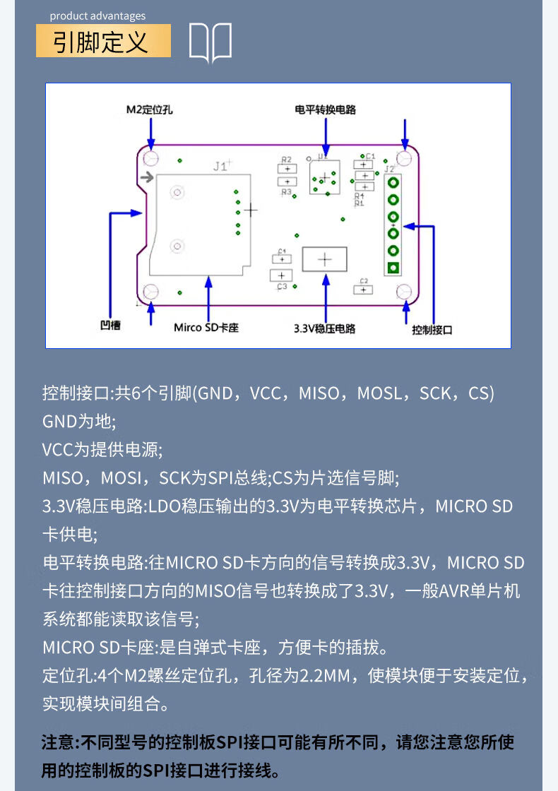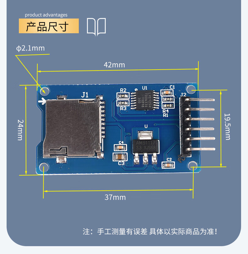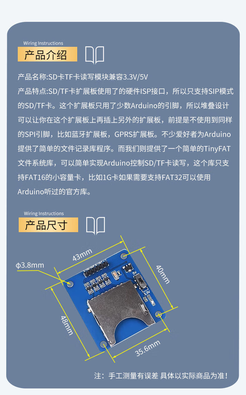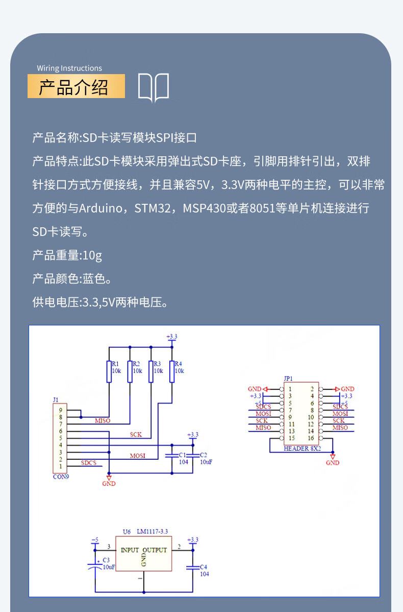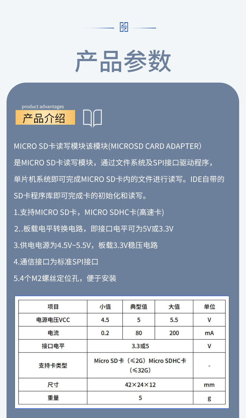 SD card module microcontroller Micro SD card socket SPI interface Mini TF card reader/writer 5V/3.3V SD memory card TF card module Micro 2-way memory card