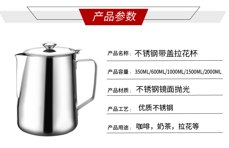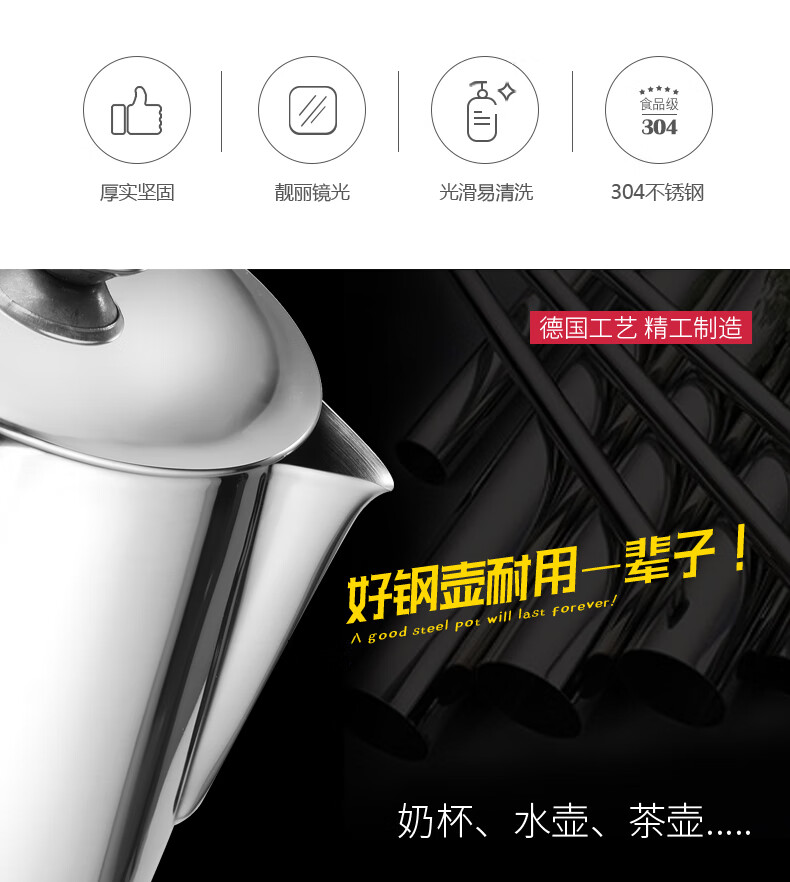 GAJABO Thickened 304 Stainless Steel Hong Kong Style Milk Tea Pot with Cover Latte Art Cup Stocking Milk Tea Pot Teapot Induction Cooker Available Latte Flower Pot with Cover 1000ml