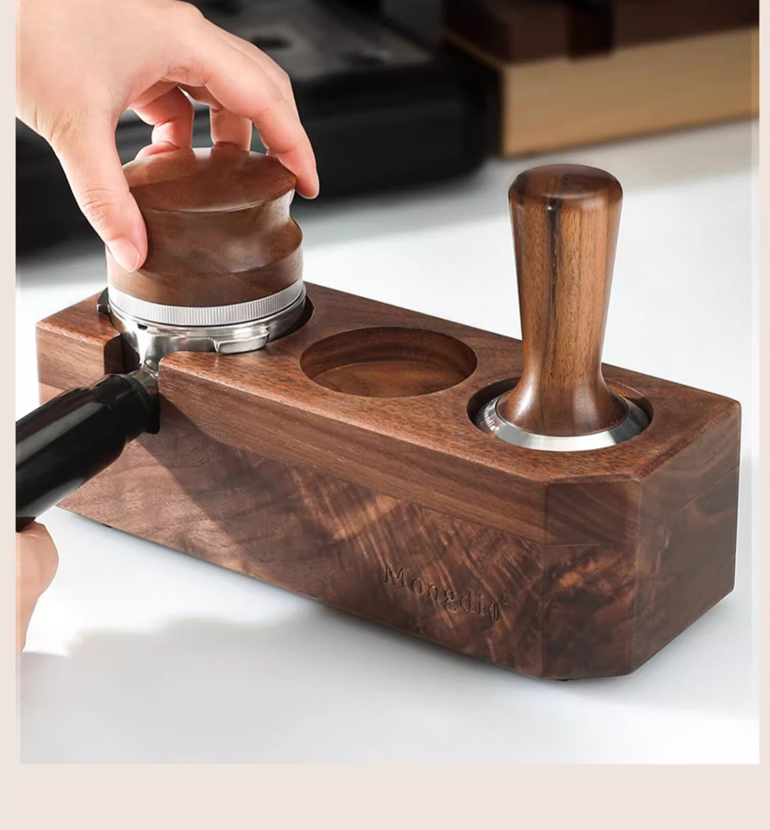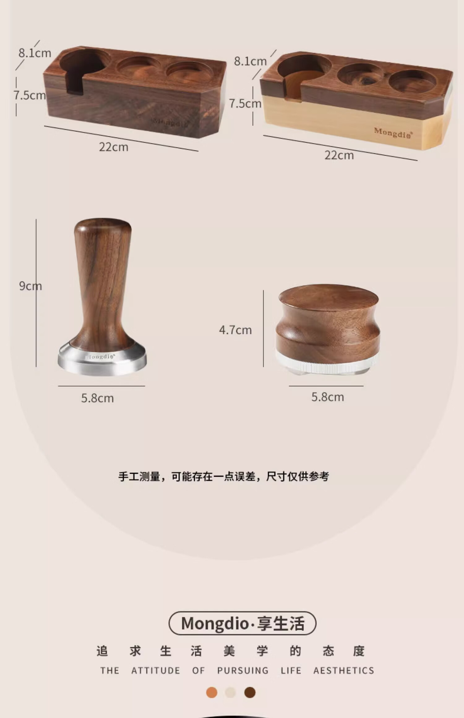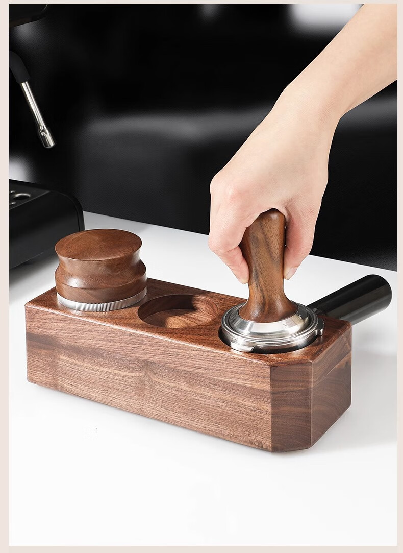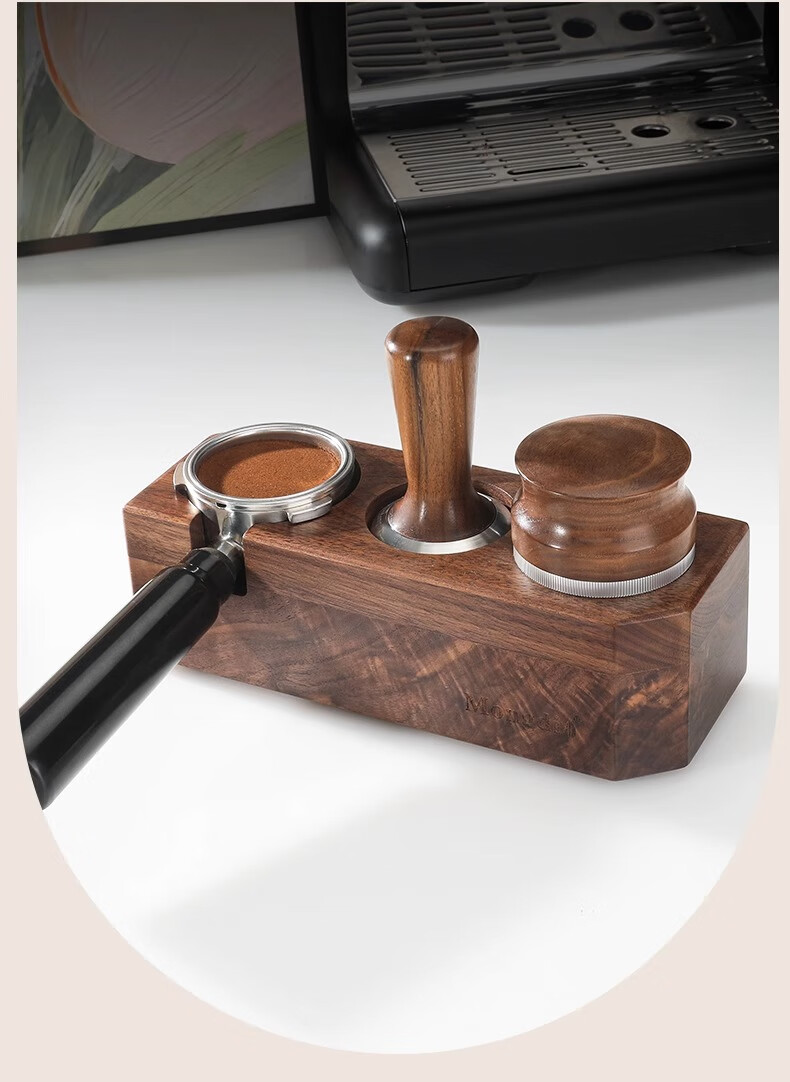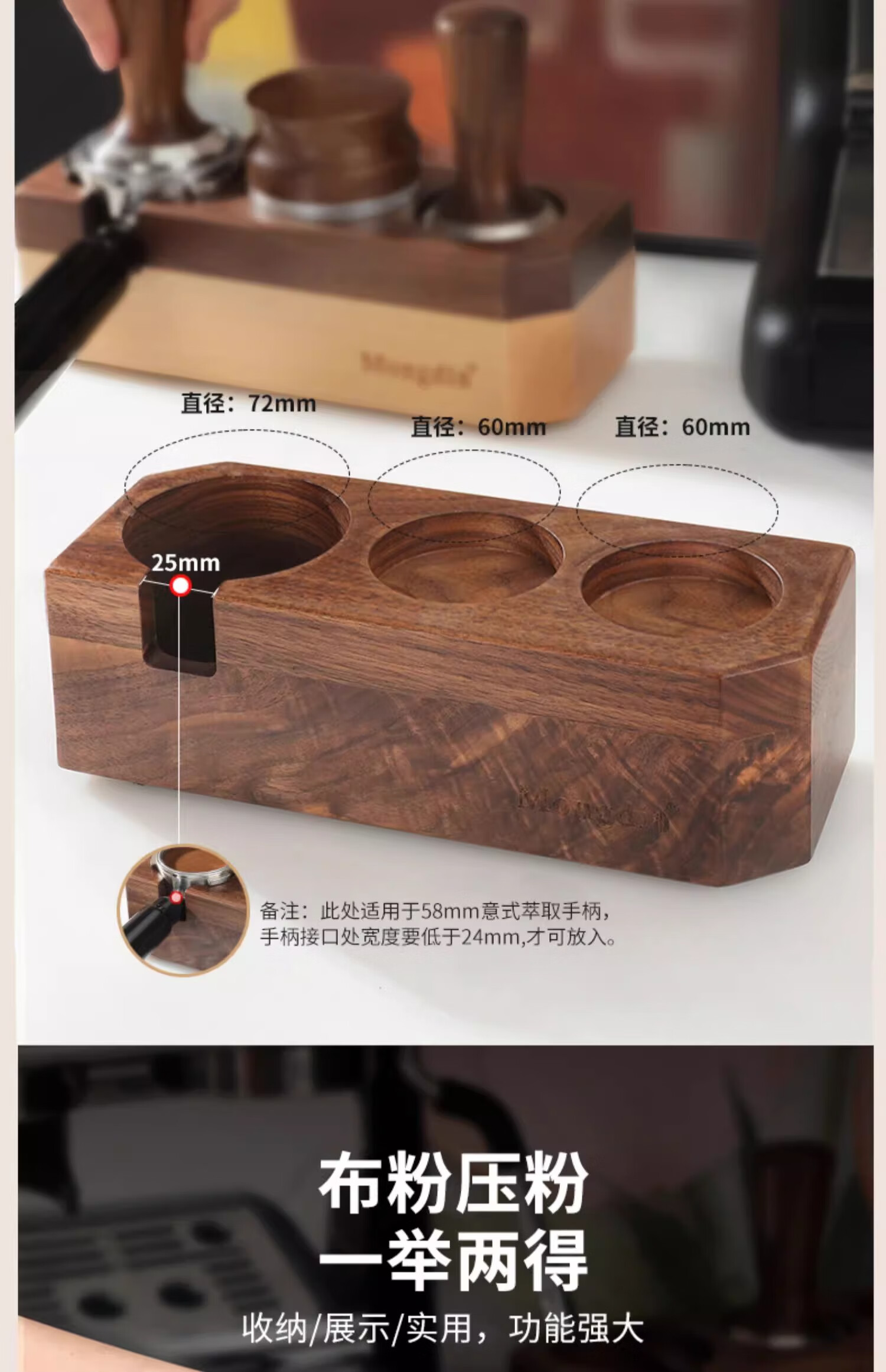 Mongdio Multifunctional Pressed Powder Base Espresso Machine Powder Distributor Pressed Powder Hammer Storage Set 51/58mm 58mm Walnut Pressed Powder 3-piece Set