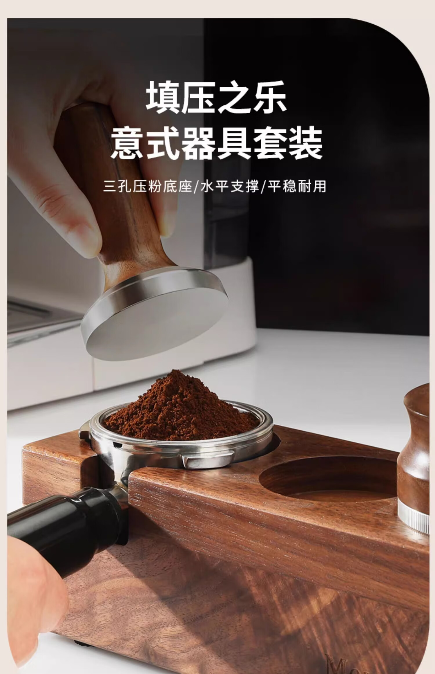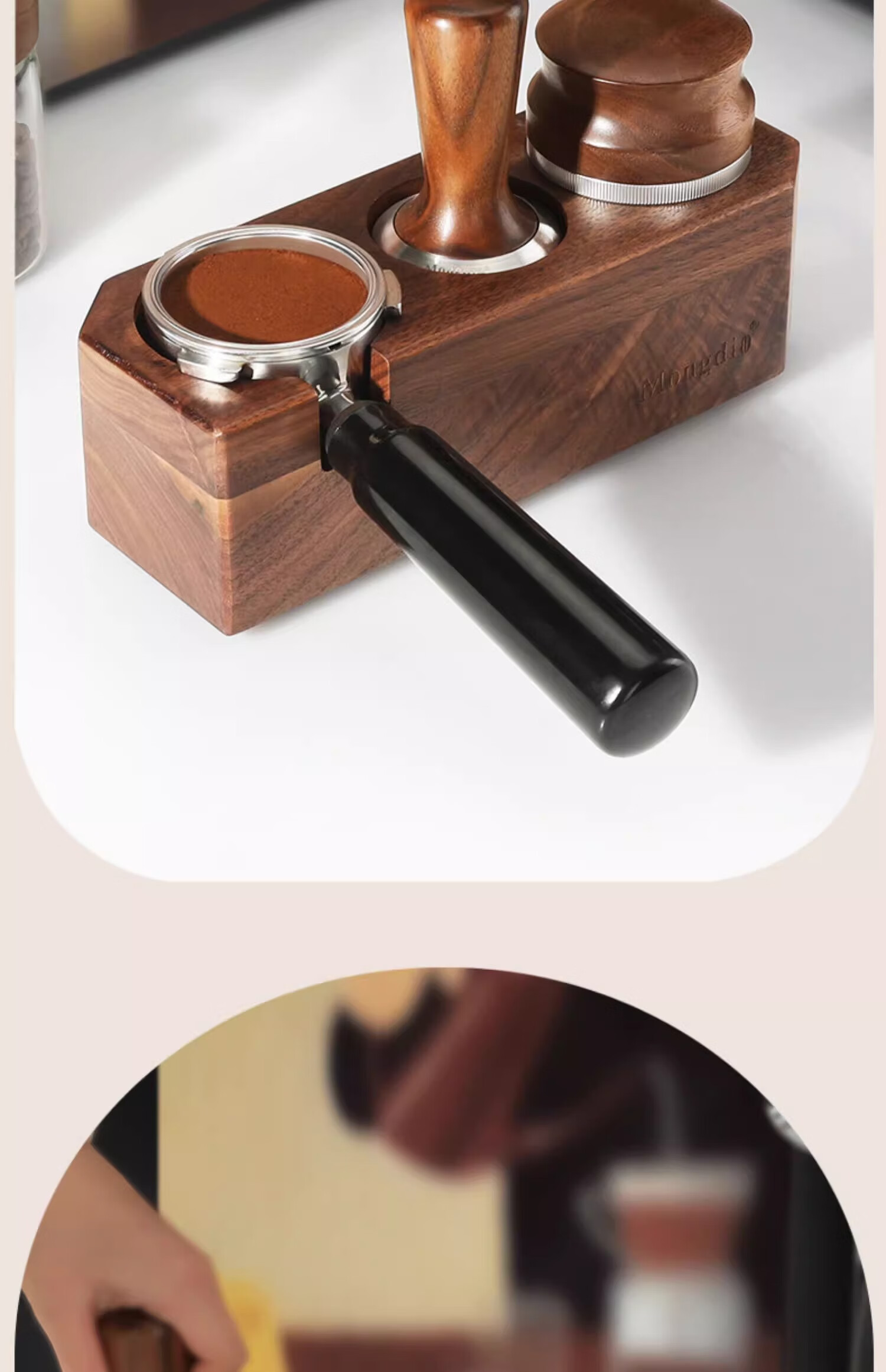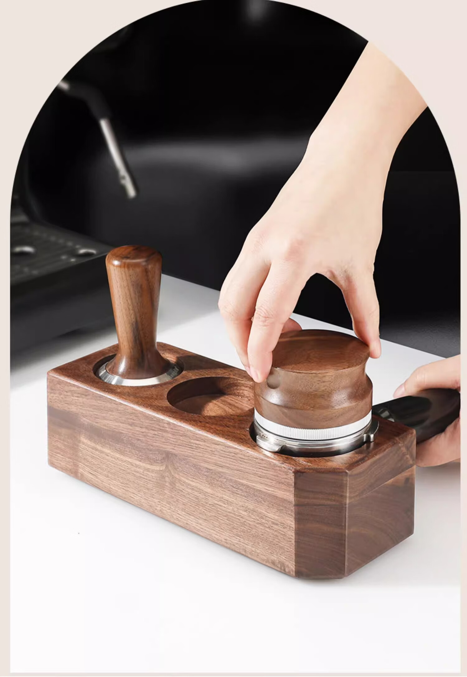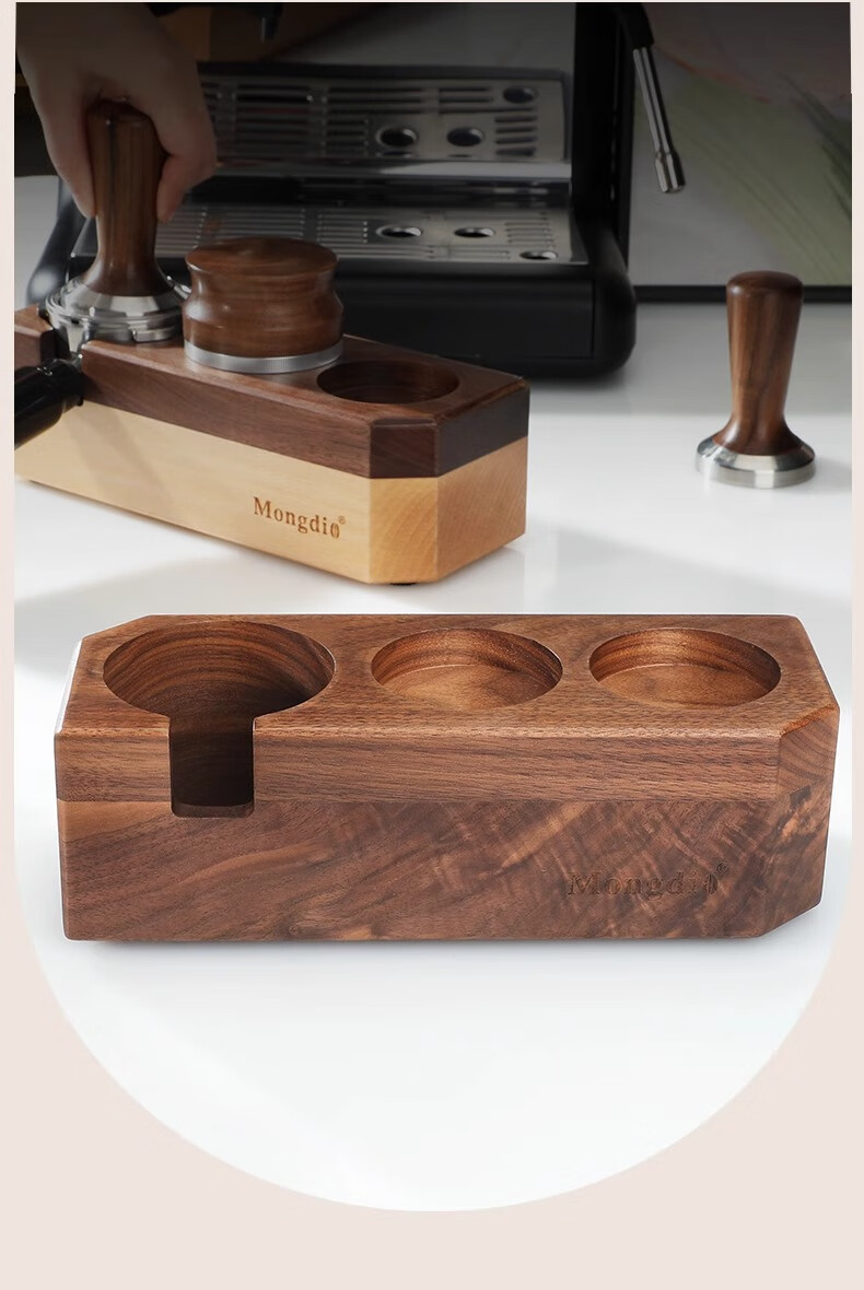 Mongdio Multifunctional Pressed Powder Base Espresso Machine Powder Distributor Pressed Powder Hammer Storage Set 51/58mm 58mm Walnut Pressed Powder 3-piece Set