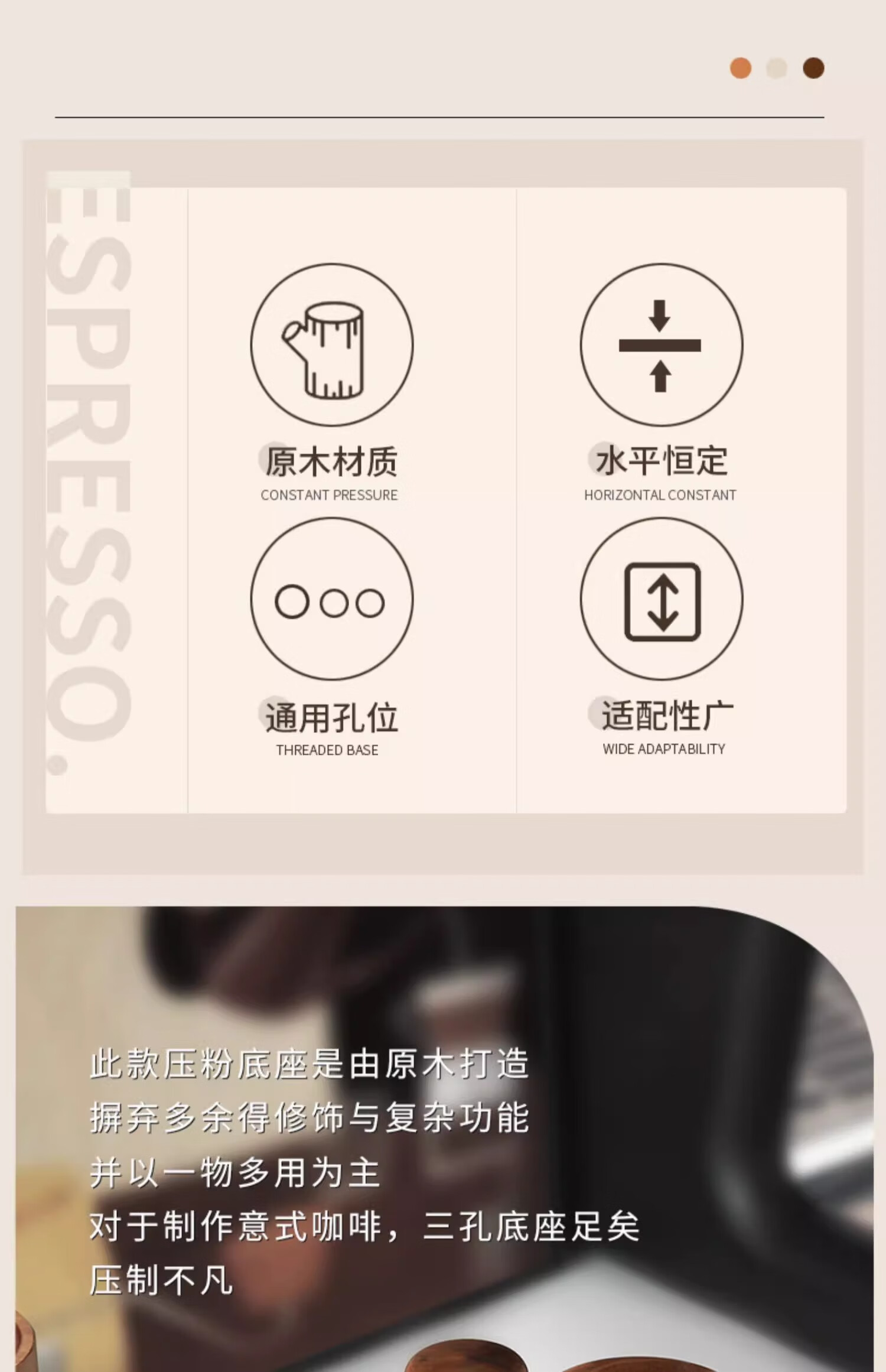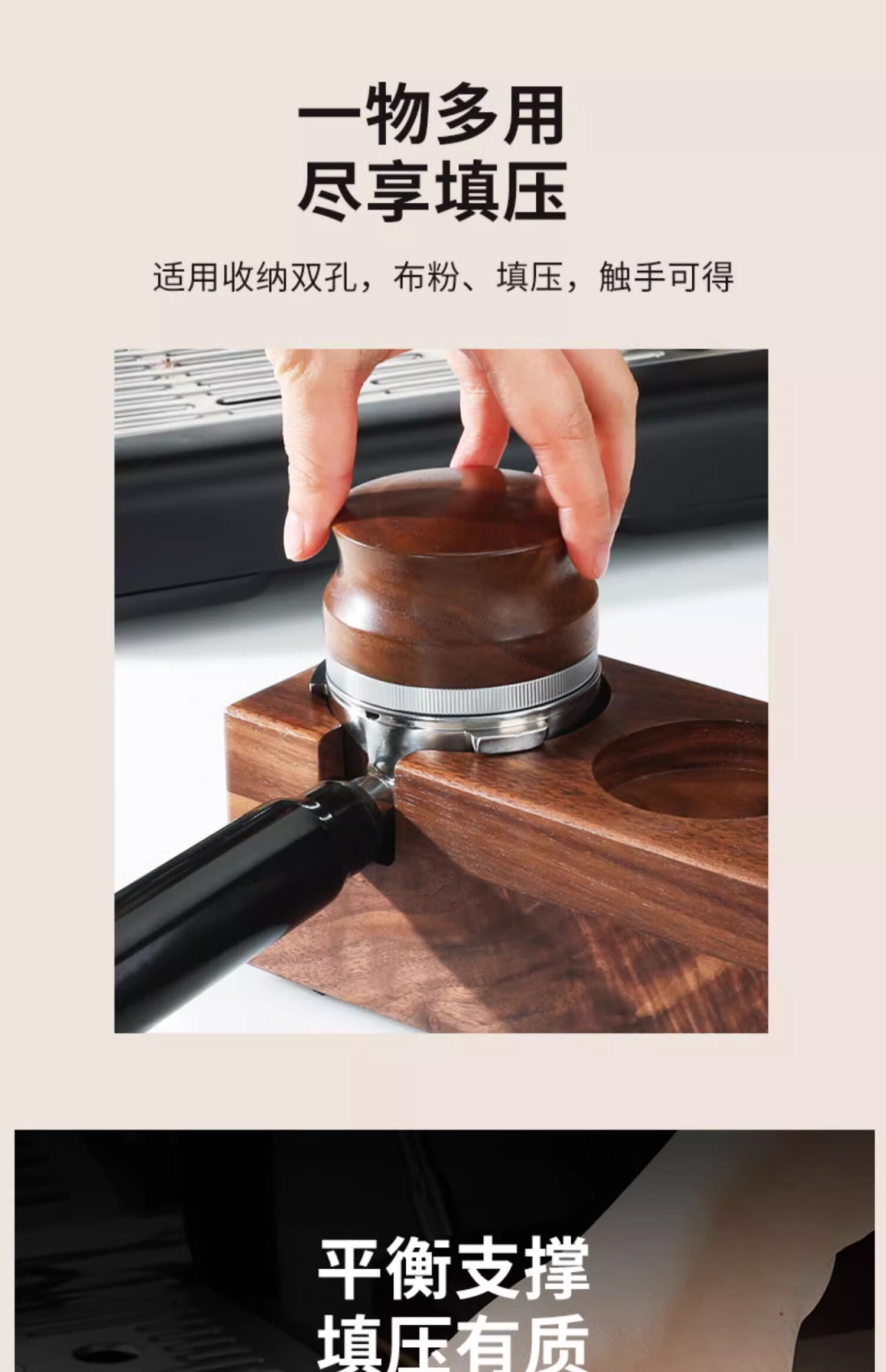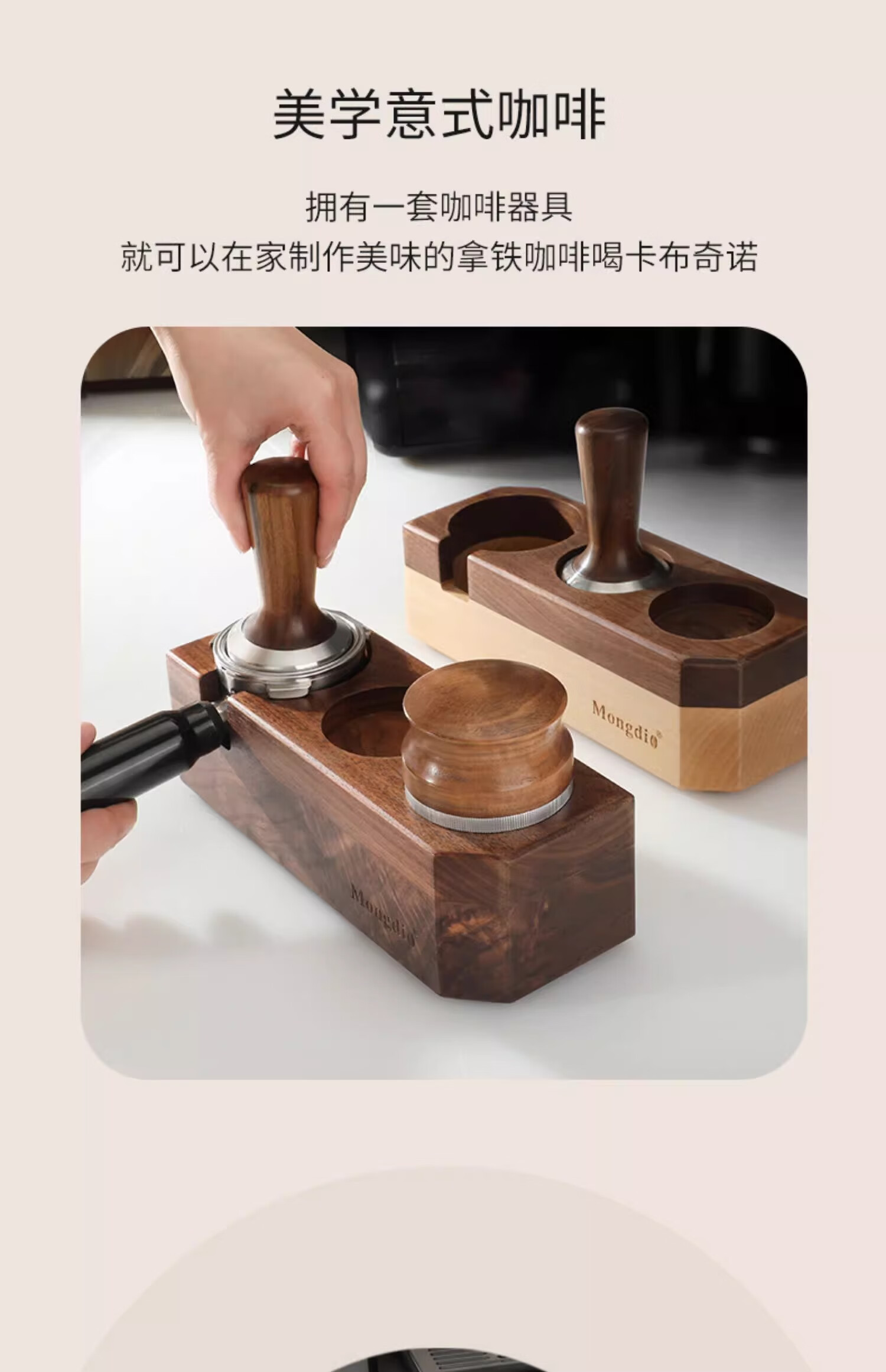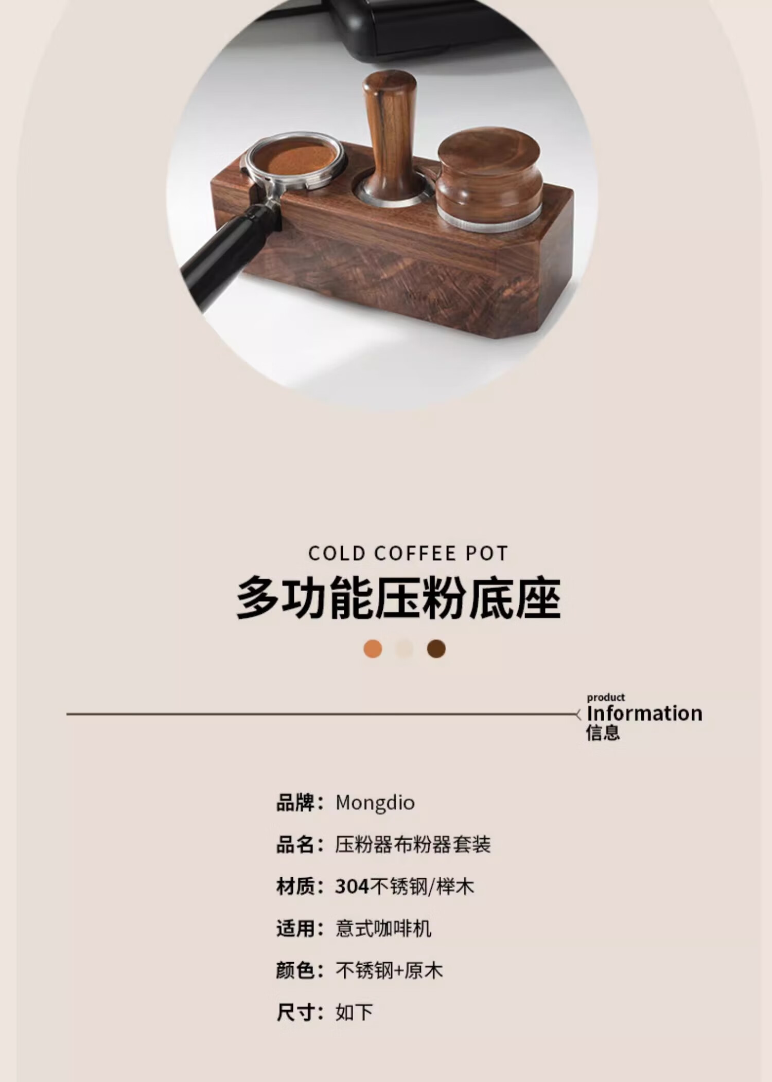 Mongdio Multifunctional Pressed Powder Base Espresso Machine Powder Distributor Pressed Powder Hammer Storage Set 51/58mm 58mm Walnut Pressed Powder 3-piece Set