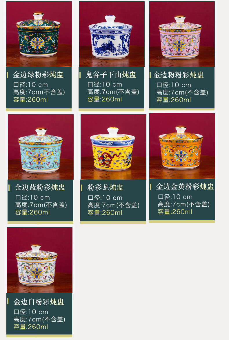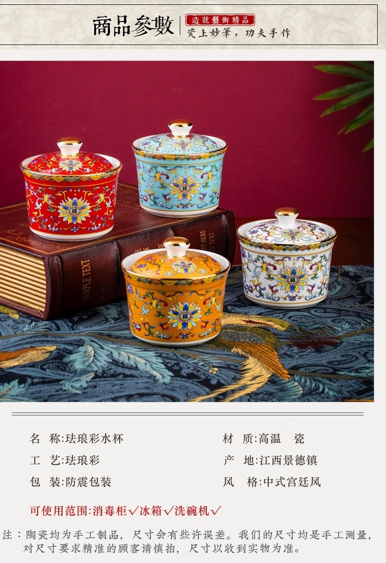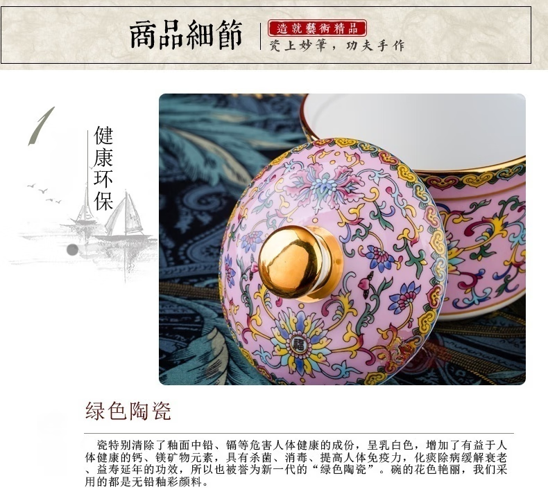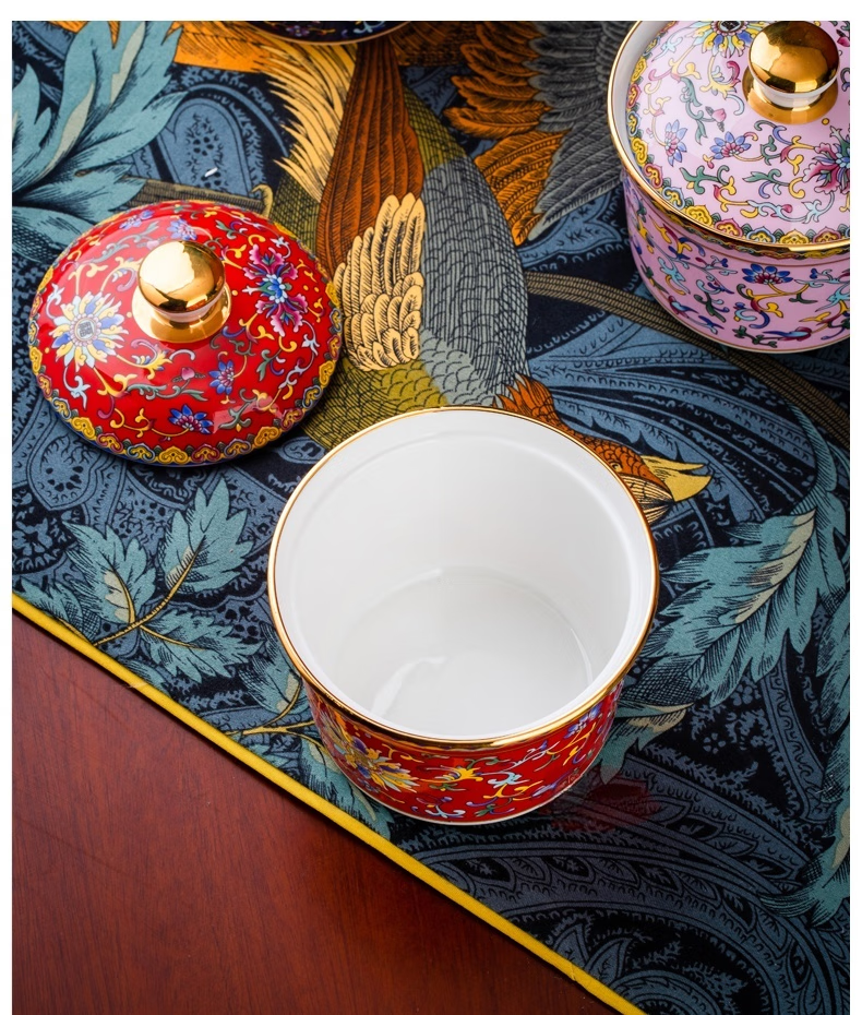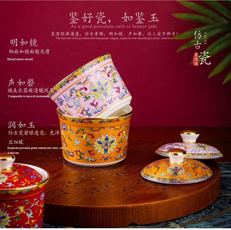 Wo Zhiwo Jingdezhen stew cup household small soup cup single ceramic soup cup with lid shark fin enamel hotel table setting Phnom Penh yellow wrapped branches three-piece set