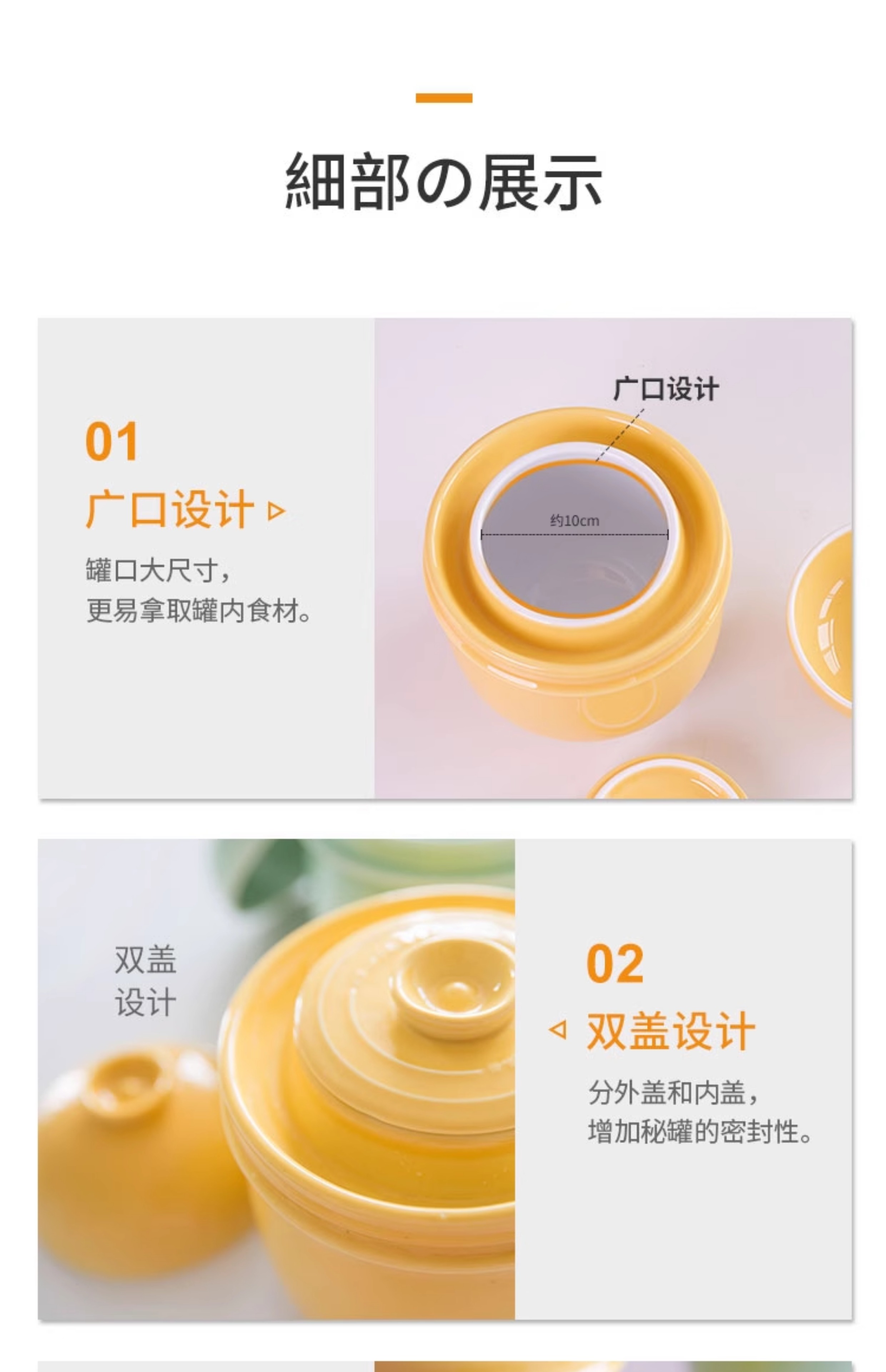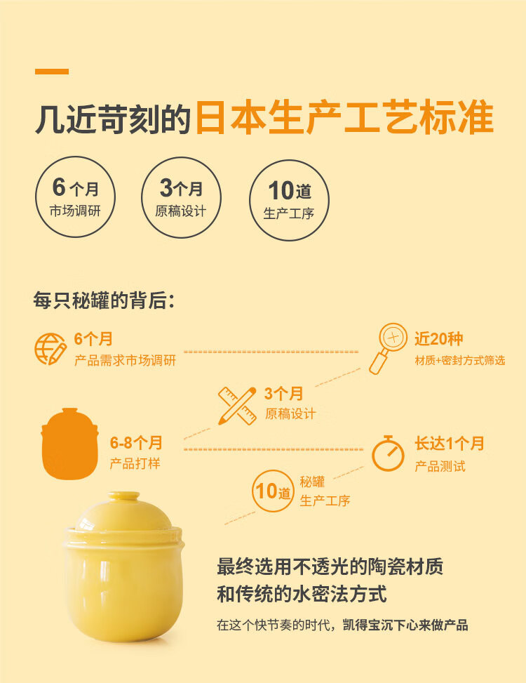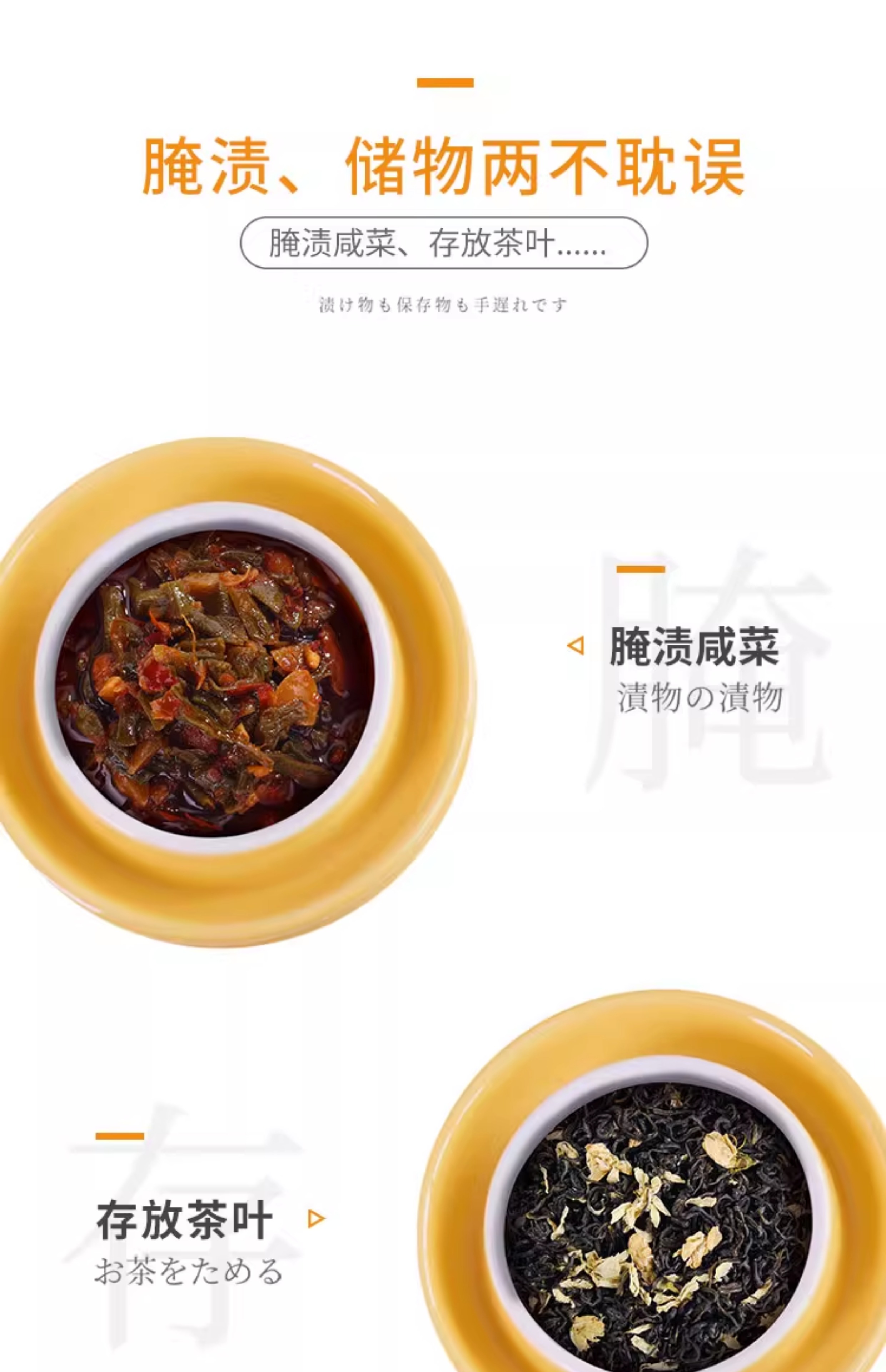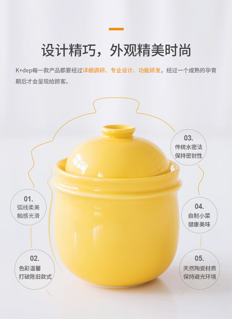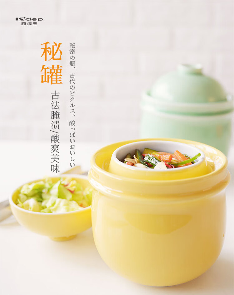 K+dep kdep Kdep sealed lard jar pickle jar pickled pickle jar storage with lid home storage pickles secret jar 2.2L apricot yellow free stainless steel food clip