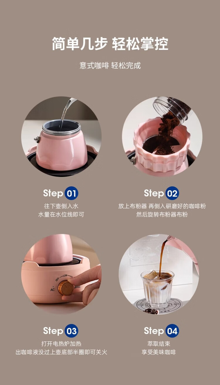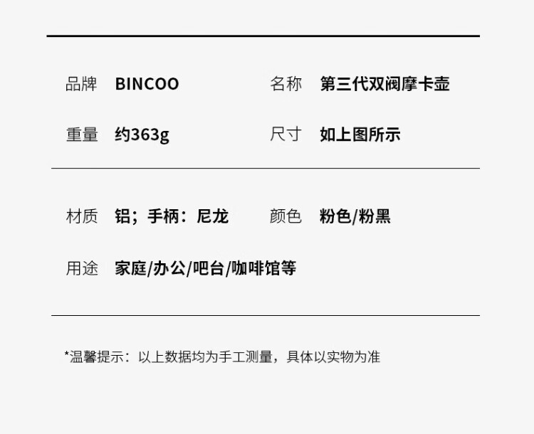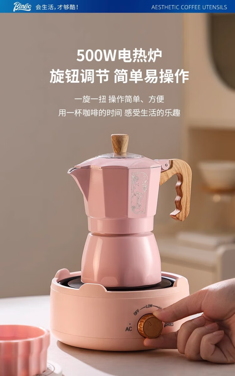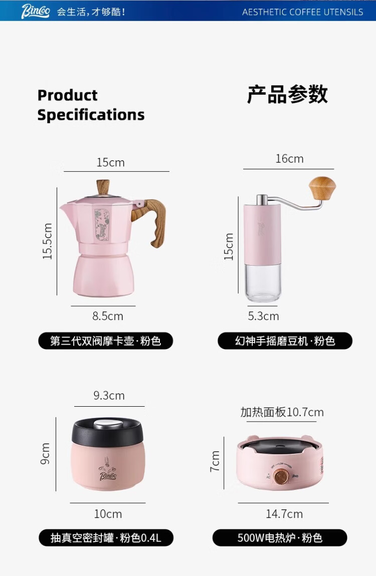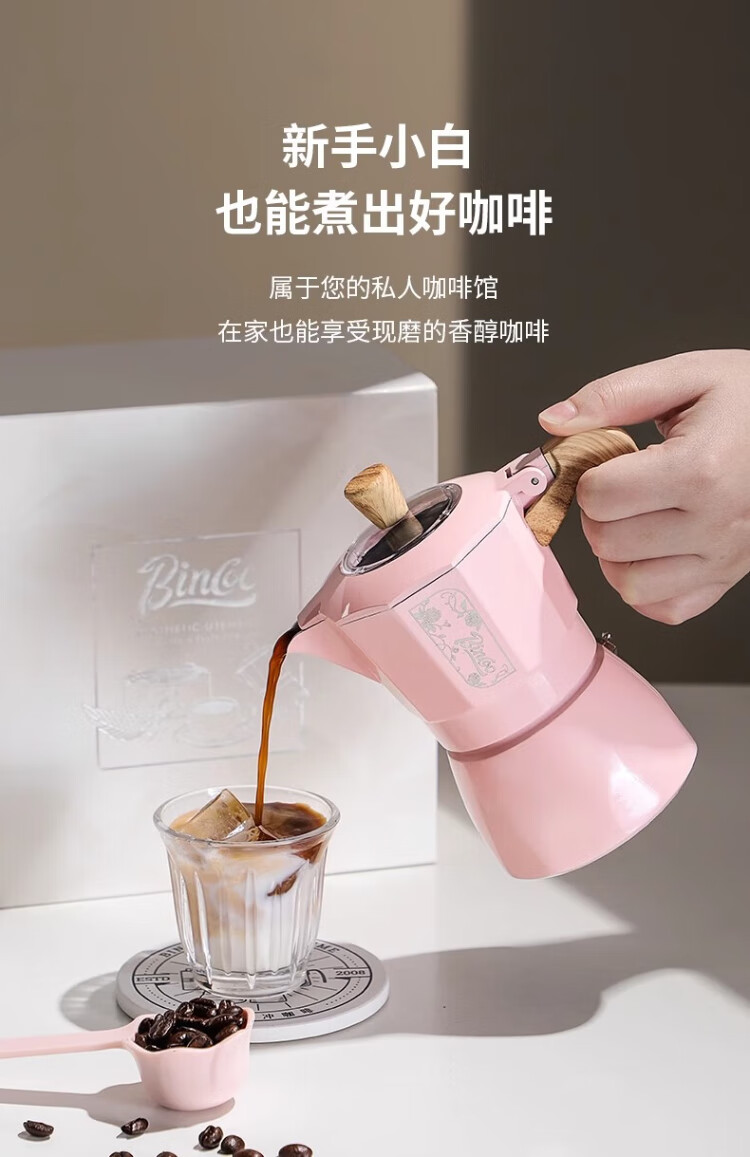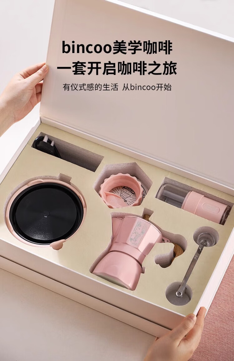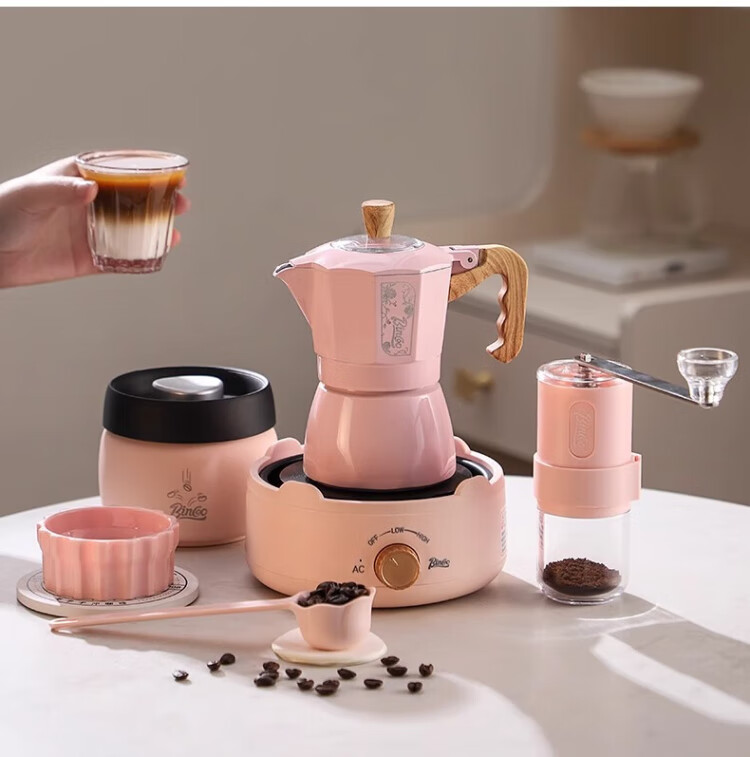 Bincoo Pink Double Valve Moka Pot Coffee Pot Gift Box Set Home Wedding Birthday Souvenir Holiday Creative Pink Six-Piece Gift Box Set-A