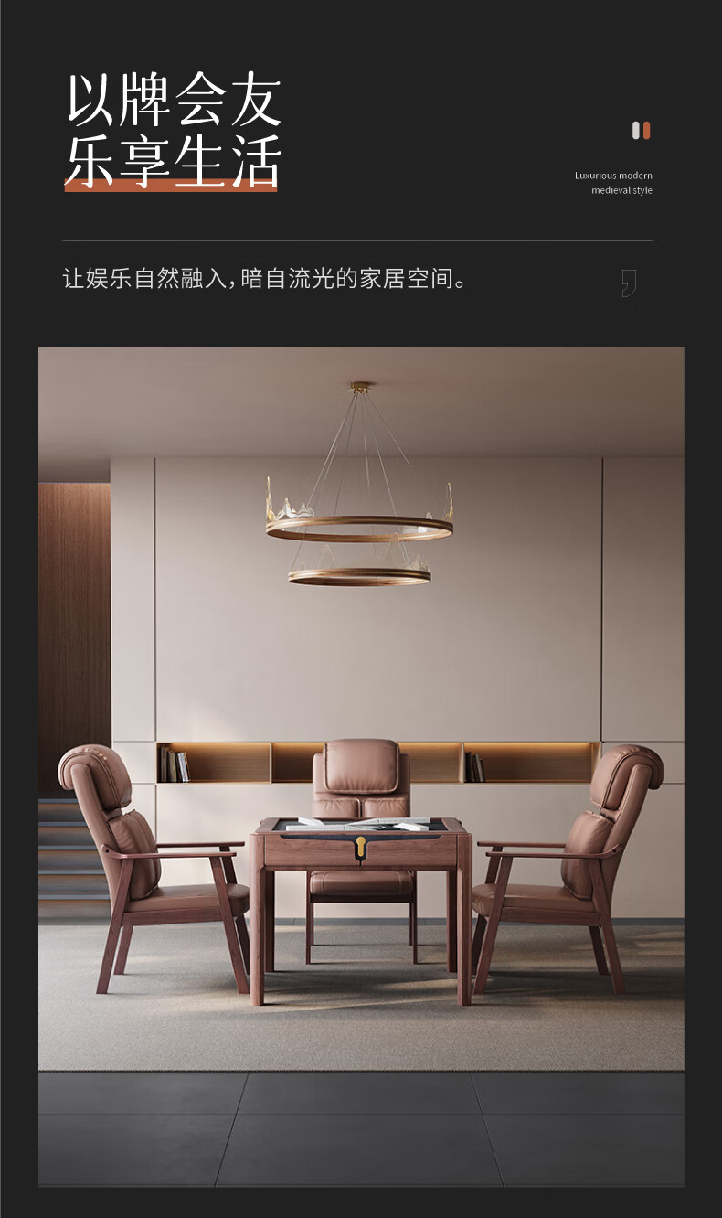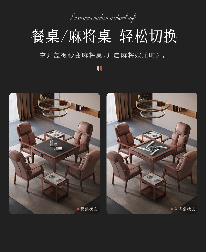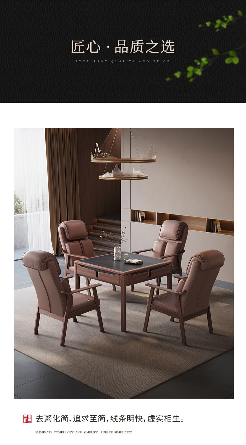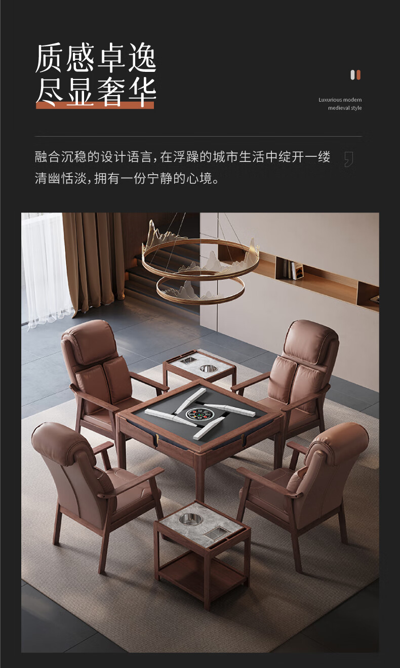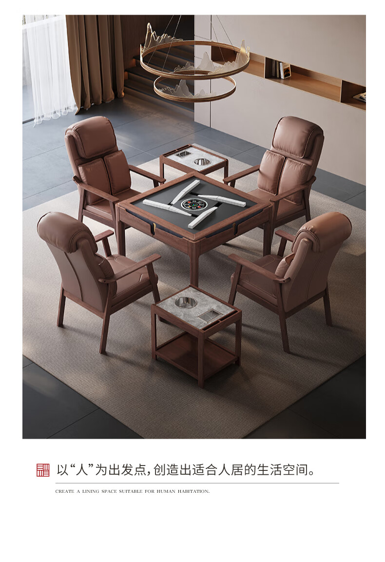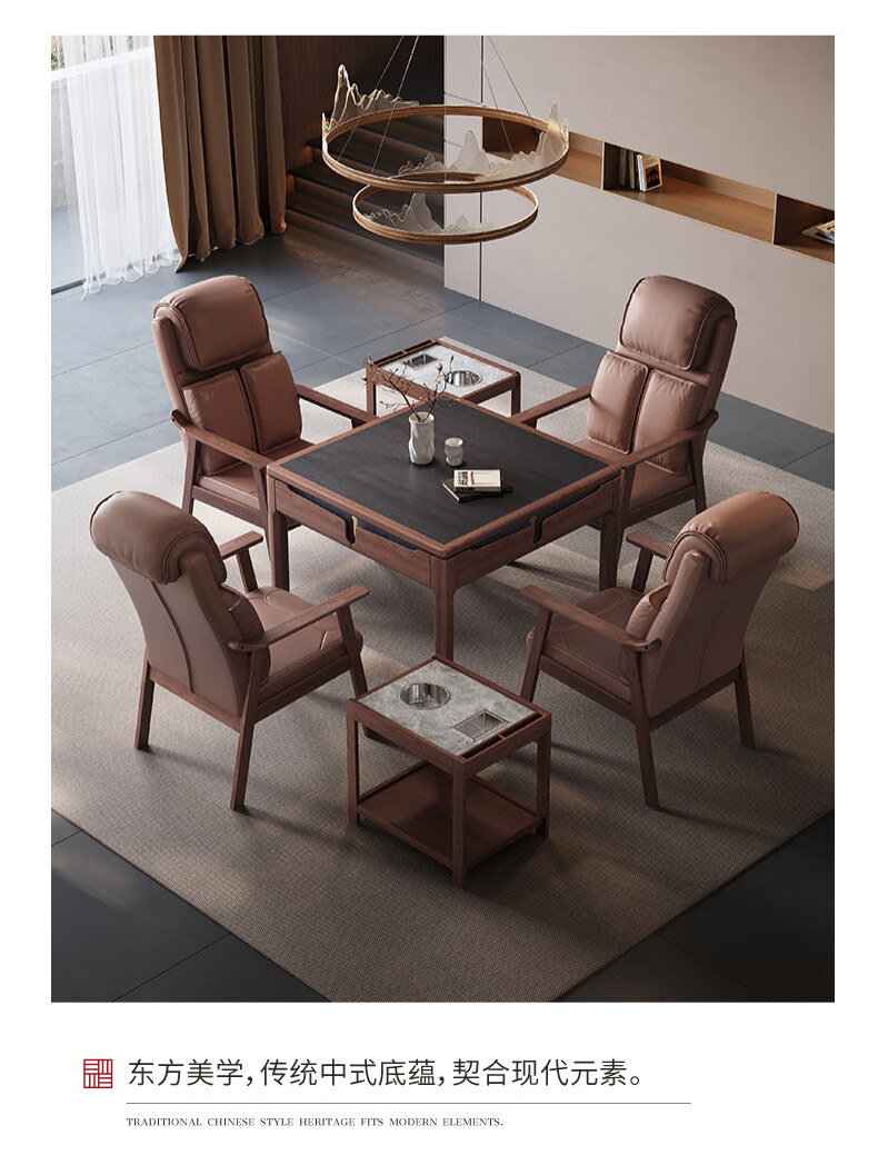 Ruiteng 2025 new model villa high-end new Chinese-style solid wood electric mahjong machine card table fully automatic dual-use all-in-one home double leaf 1 table 4 chairs 2 coffee table Ruiteng light machine