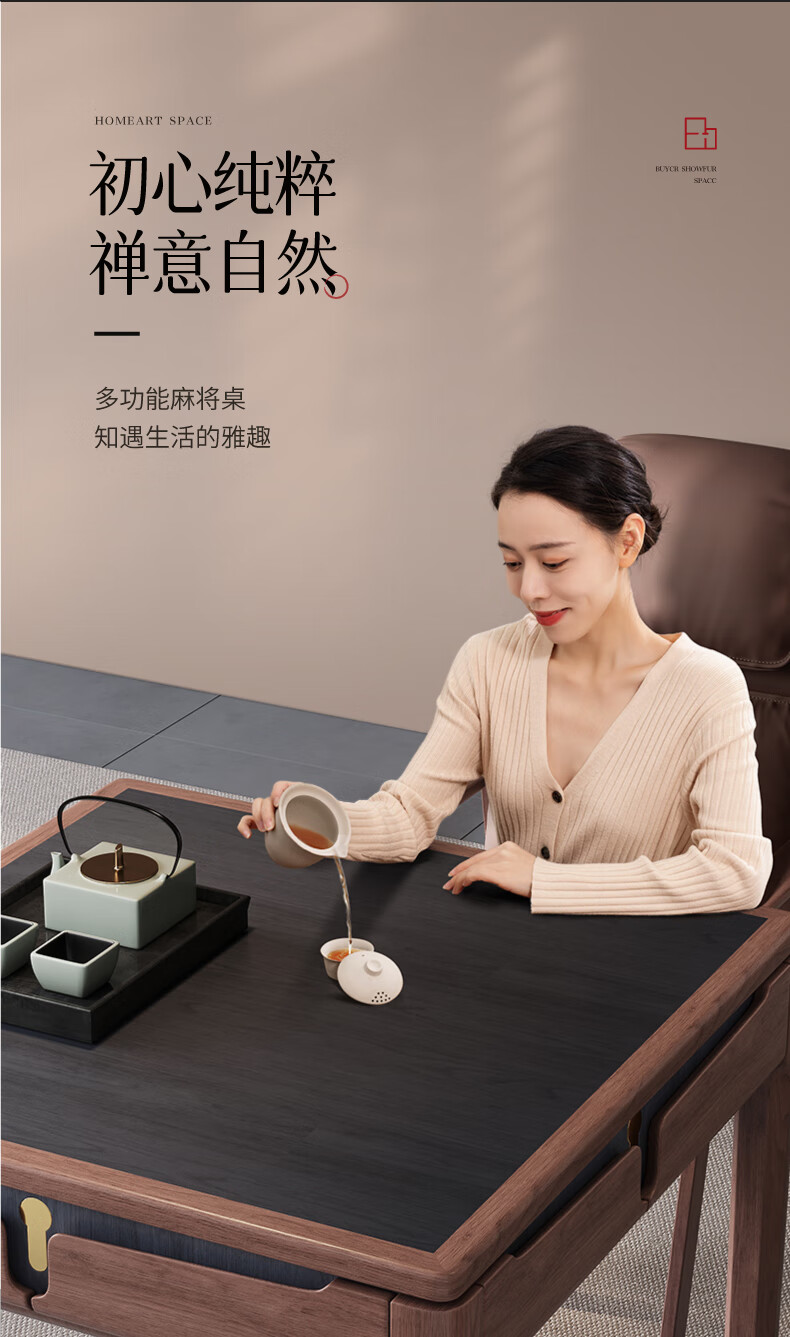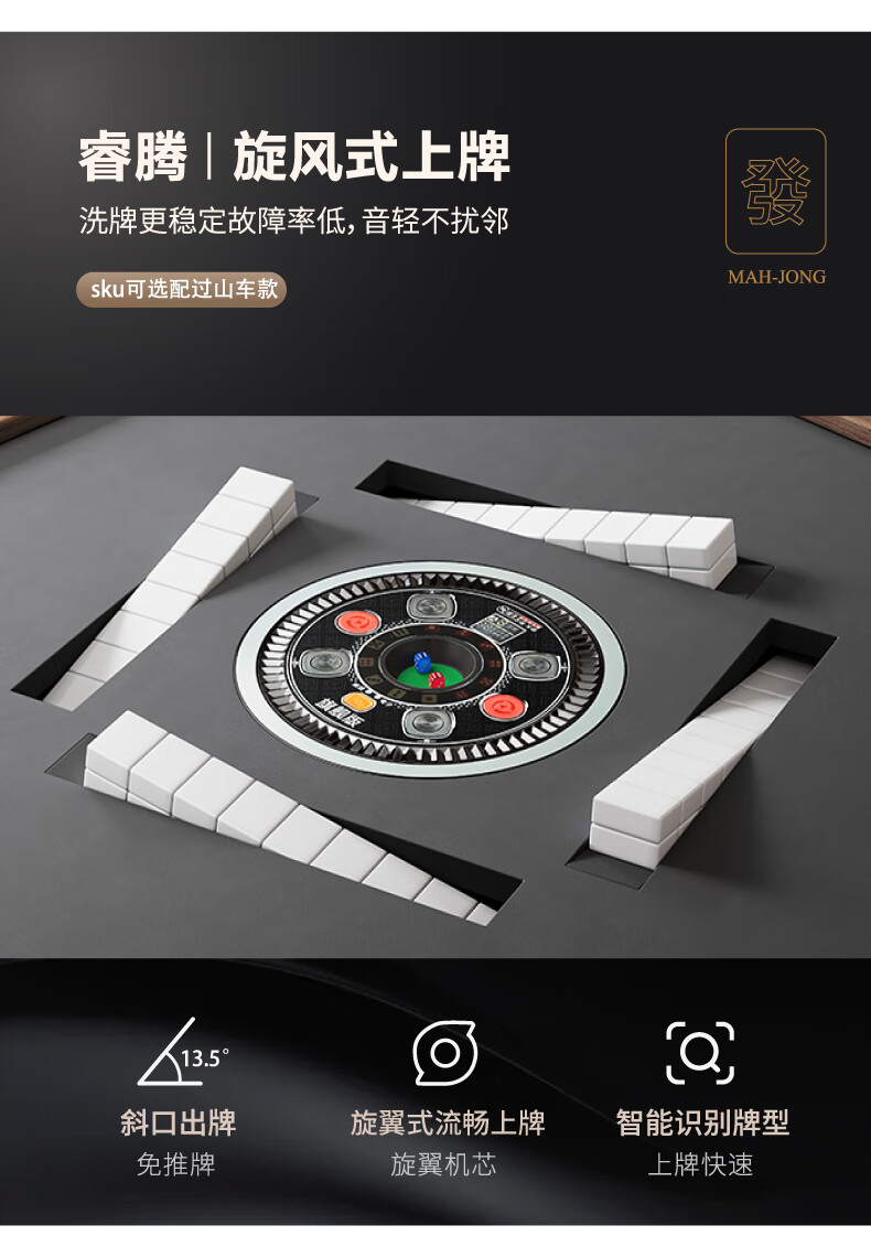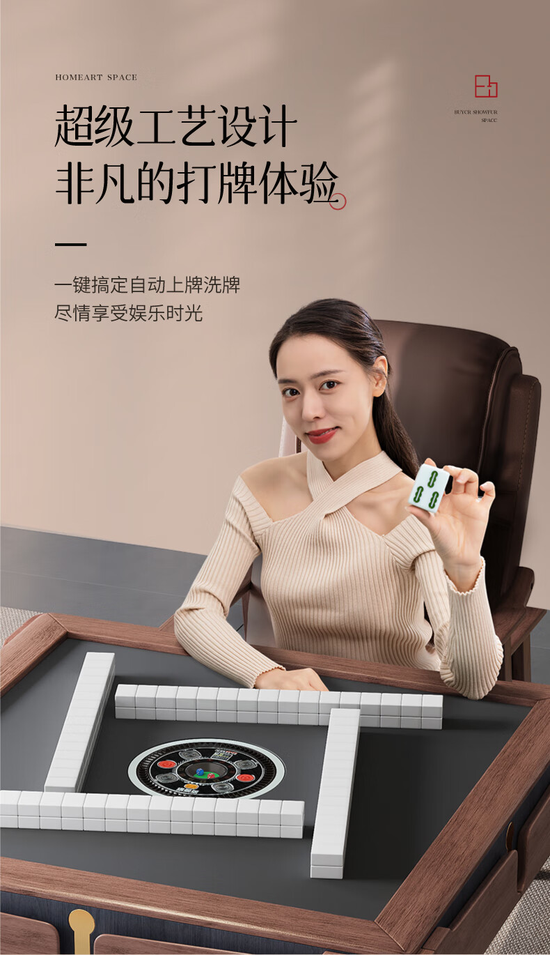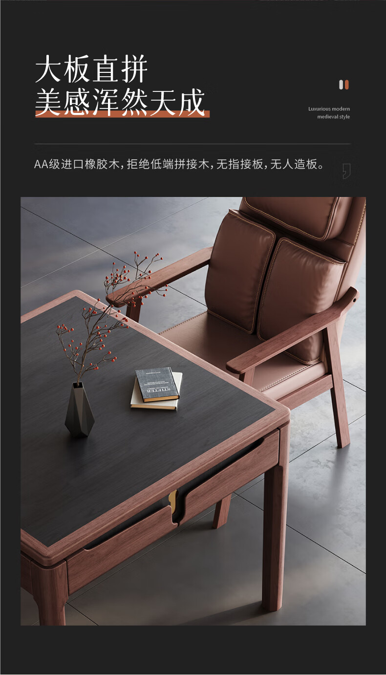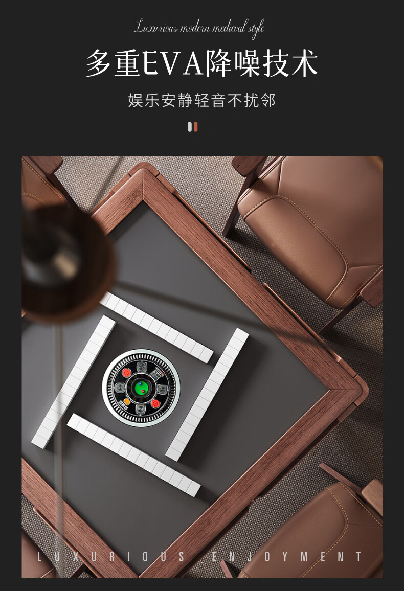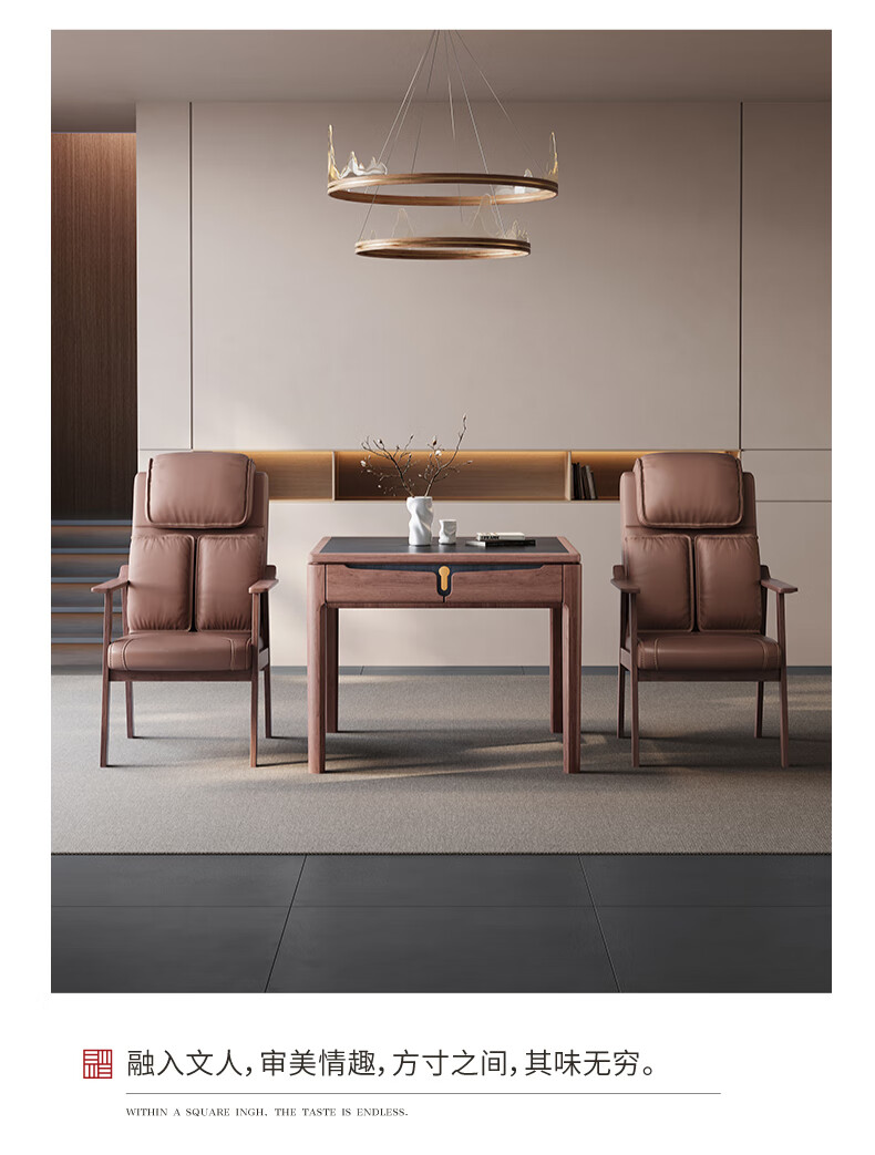 Ruiteng 2025 new model villa high-end new Chinese-style solid wood electric mahjong machine card table fully automatic dual-use all-in-one home double leaf 1 table 4 chairs 2 coffee table Ruiteng light machine
