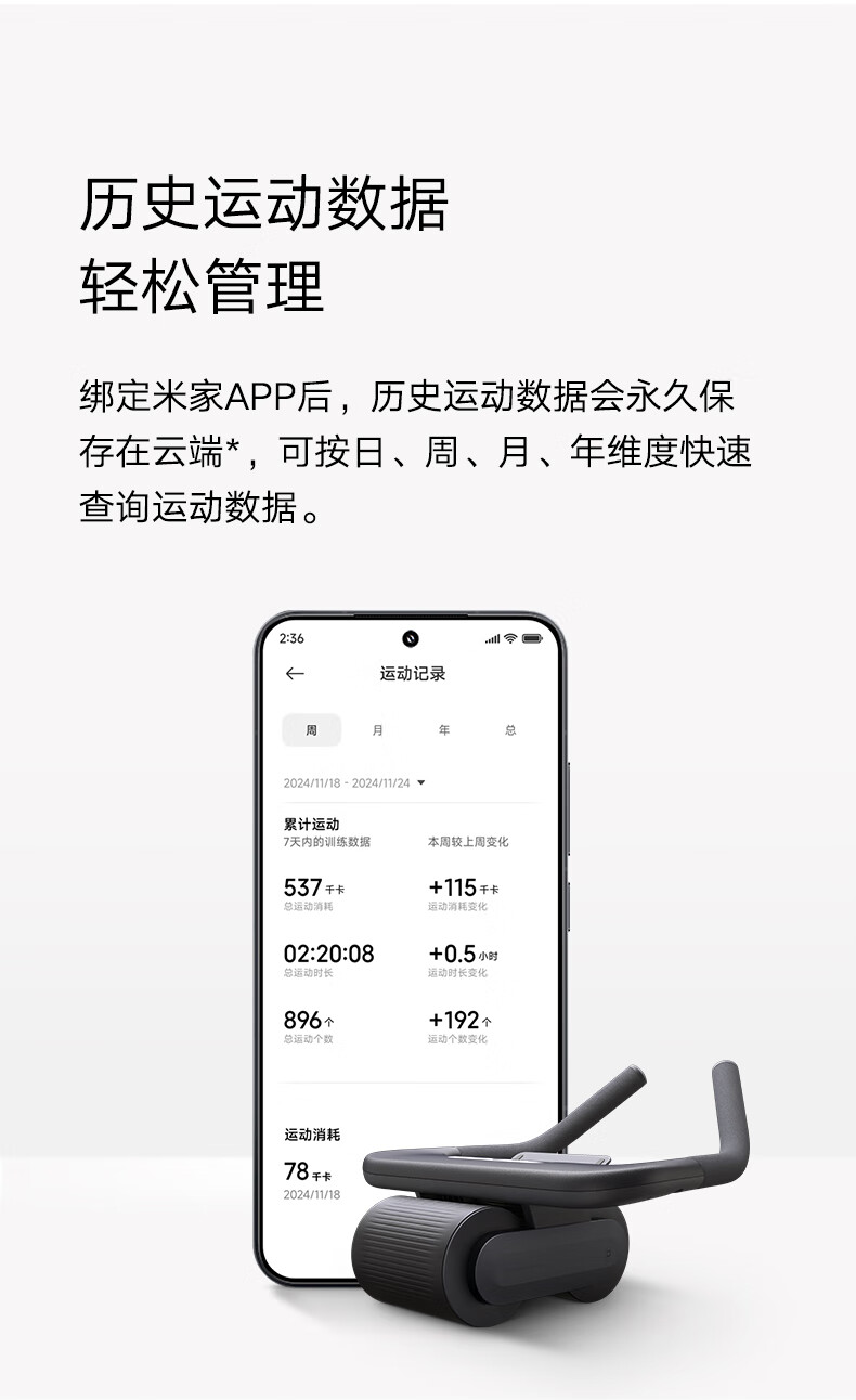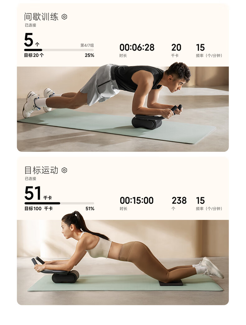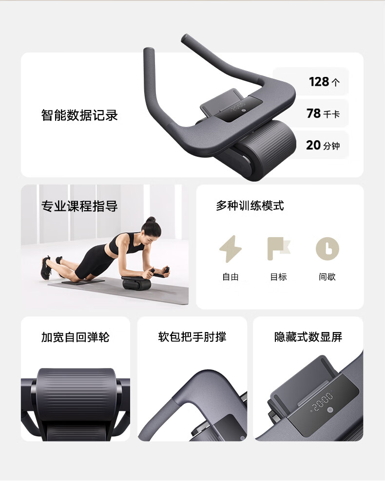 Xiaomi (MI) Xiaomi Official Flag Mijia Intelligent Abdominal Wheel Automatic Rebound Home Fitness Men and Women Abdominal Crunches Intelligent Abdominal Wheel-Course Guidance/Intelligent Data Recording/Multiple Training Modes