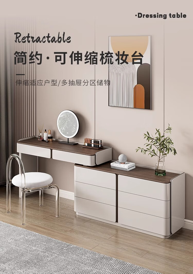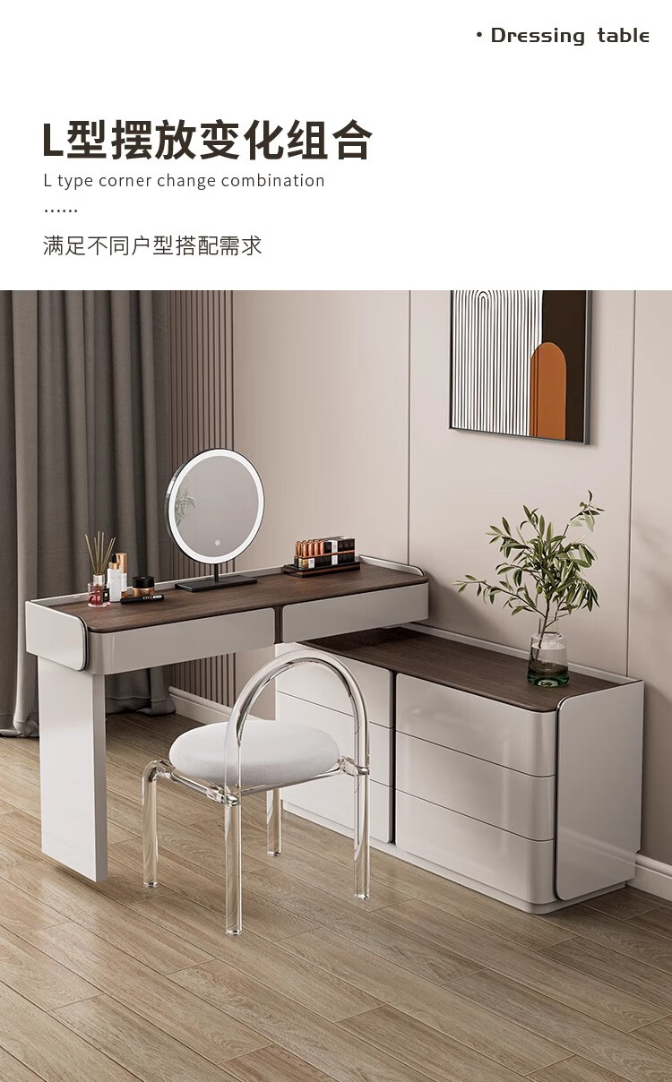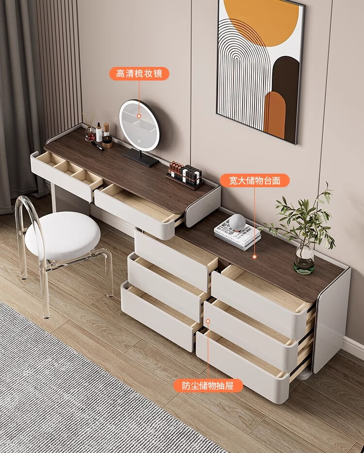 Xinang lacquered dressing table Italian minimalist drawer cabinet integrated bedroom simple modern 2025 new bedside dressing table fashion 120 dressing table + 120 drawer cabinet