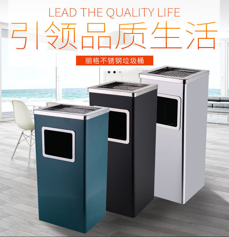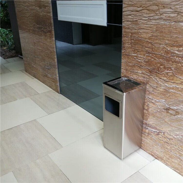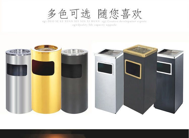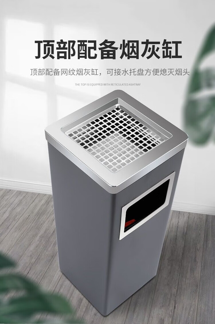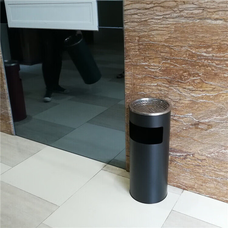Cigarette butt trash can stainless steel hotel trash can lobby hotel corridor square round vertical ashtray shopping mall elevator entrance peel box against the wall painted side opening (with inner bucket)
