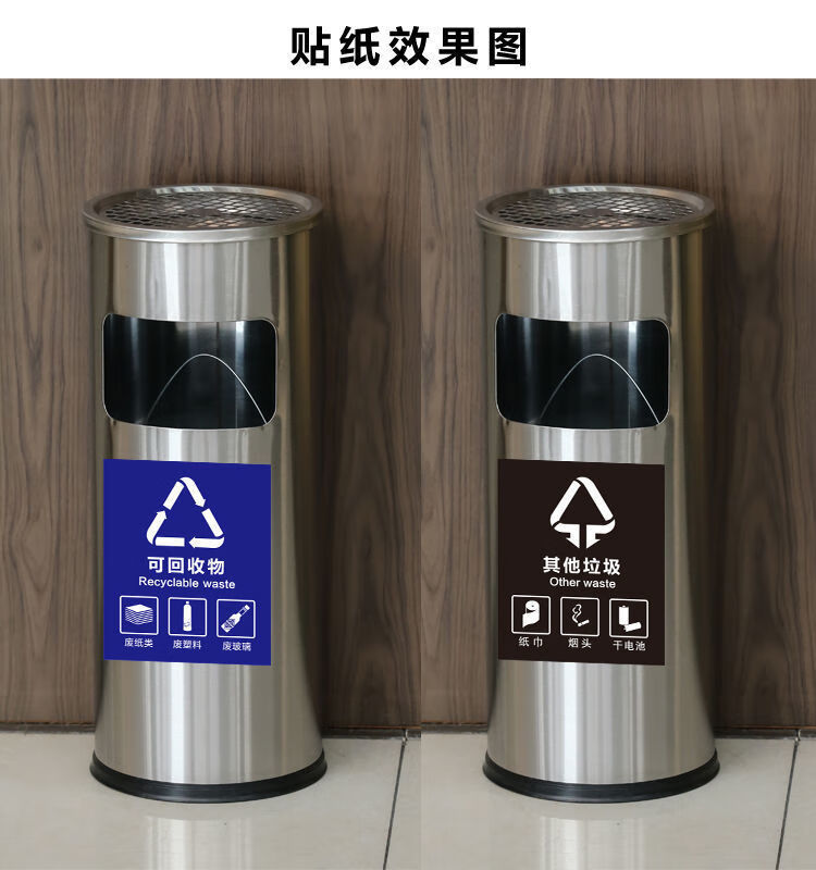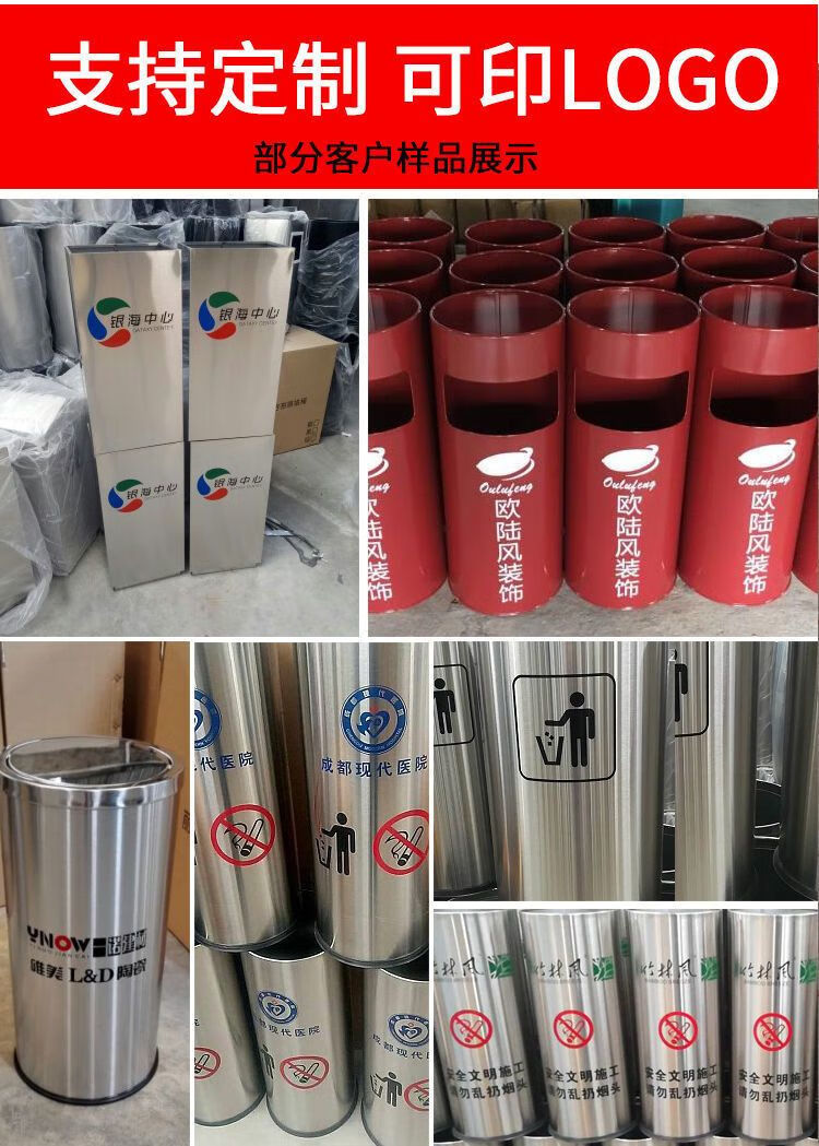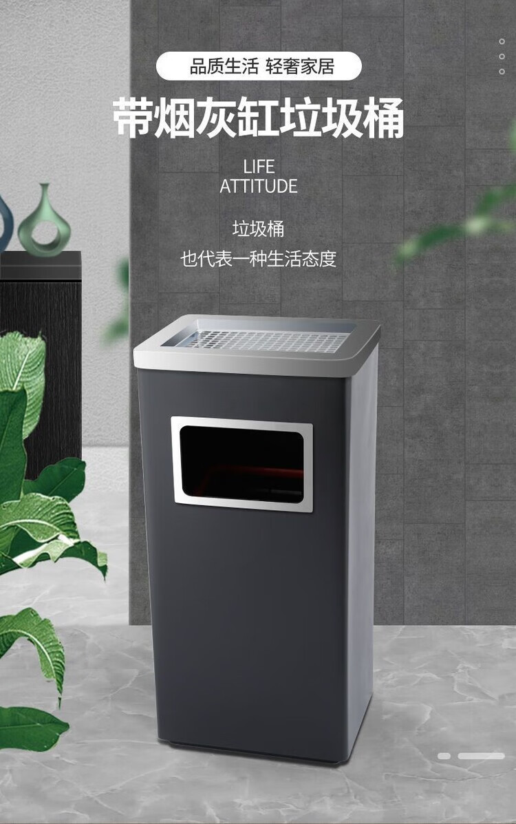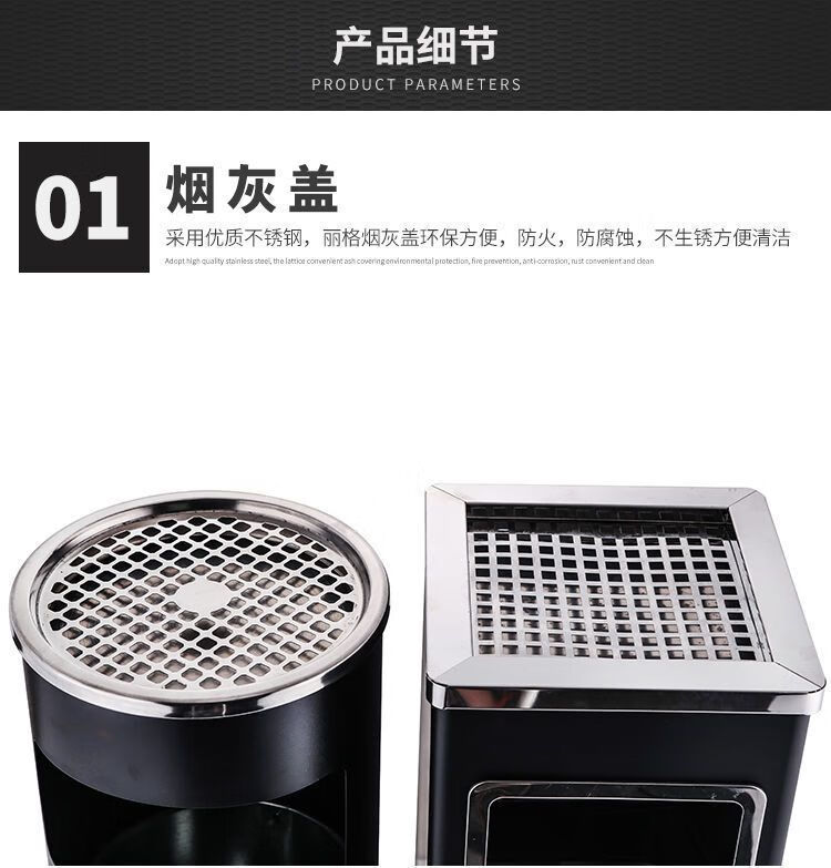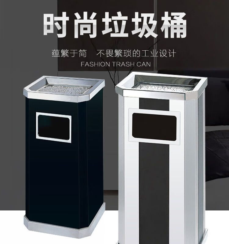 Cigarette butt trash can stainless steel hotel trash can lobby hotel corridor square round vertical ashtray shopping mall elevator entrance peel box against the wall painted side opening (with inner bucket)