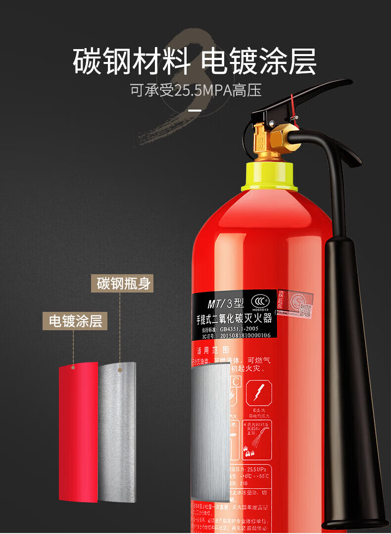 Flame Warrior Carbon Dioxide Fire Extinguisher Set Portable Trolley MT2/3/5/7kg 24kg alloy steel CO2 dry ice 5kg carbon dioxide (carbon steel)