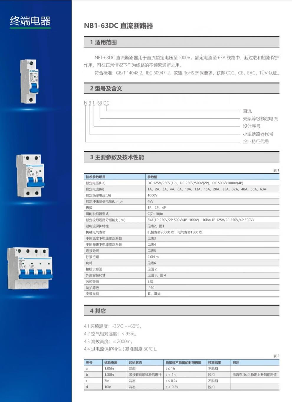 Chint DC circuit breaker DC circuit breaker 1P 2P 4P photovoltaic DC500V 1000V 4P DC1000V 16A