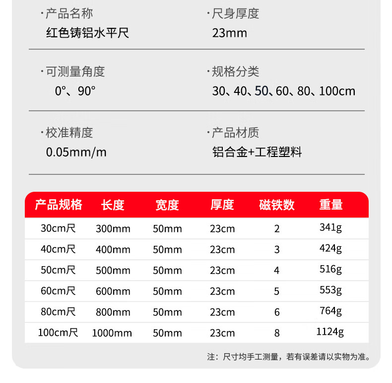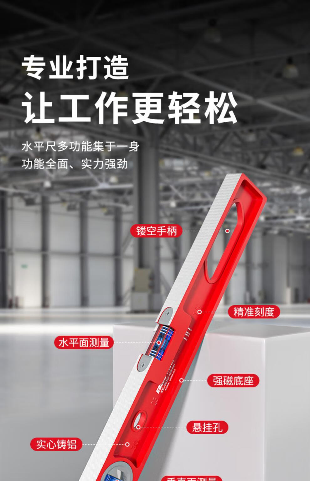 Jingxing German spirit level high-precision solid cast aluminum heavy-duty aluminum alloy fan small precision level level anti-fall with strong magnet high-precision solid cast aluminum 30cm strong magnetic industrial model