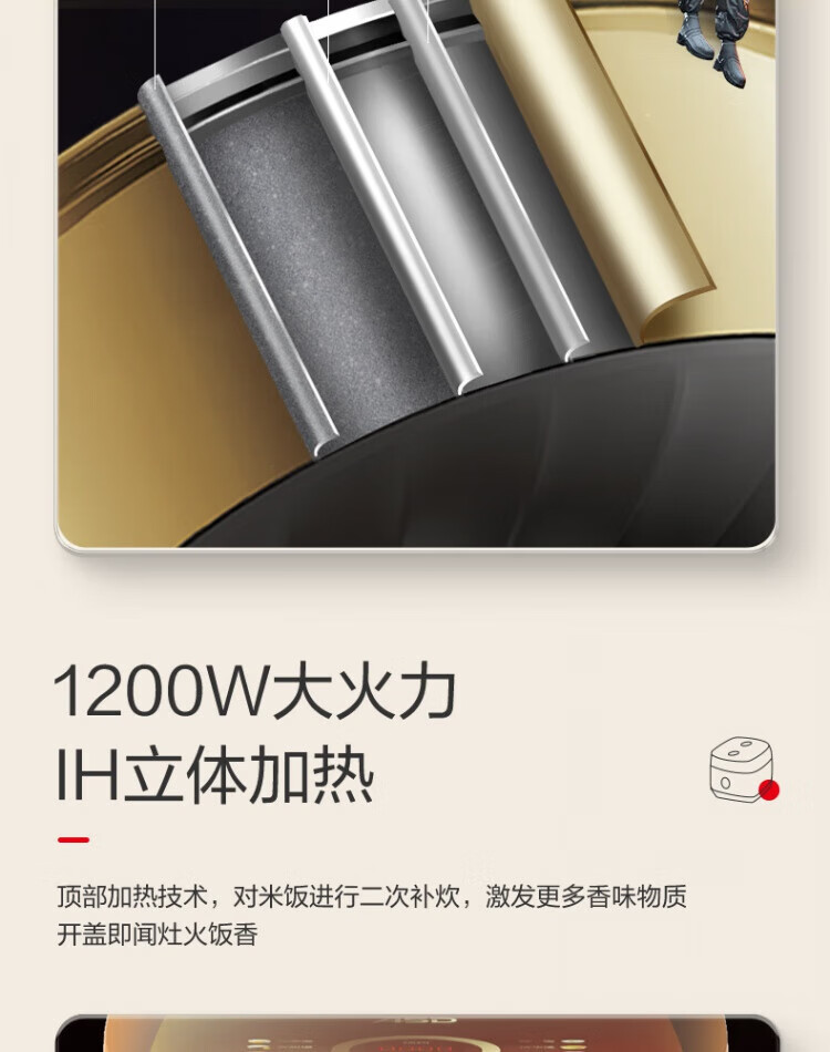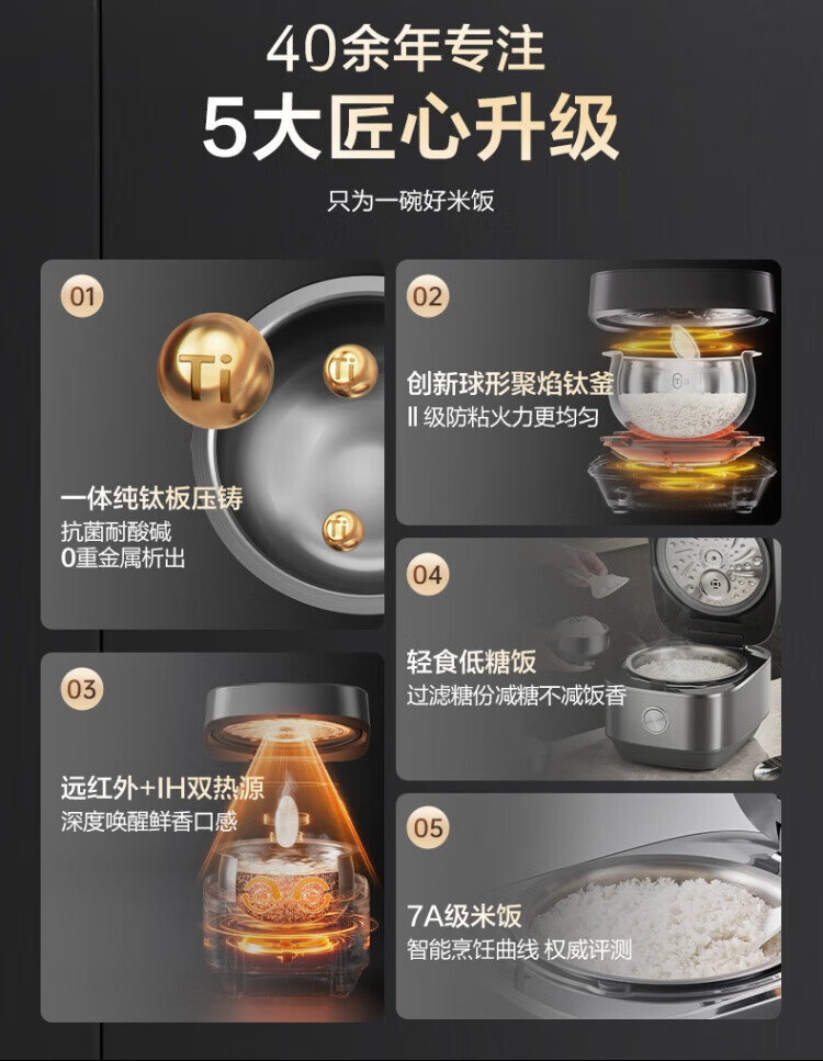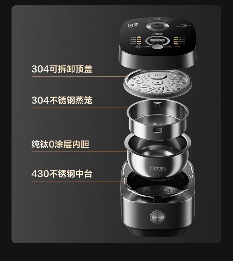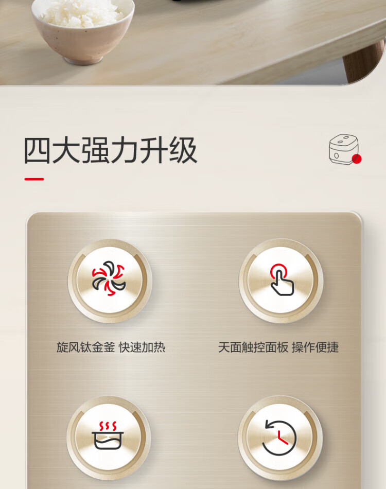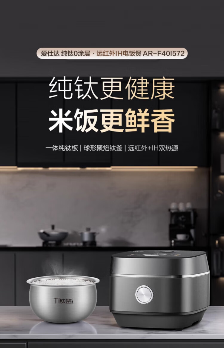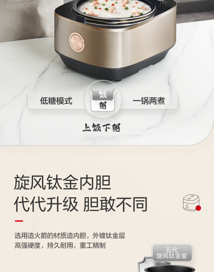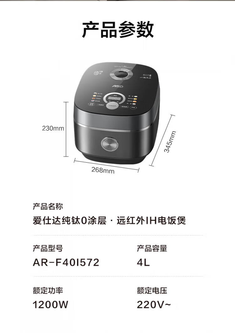 ASD IH Rice Cooker 4L Large Capacity Household Low Sugar Rice Cooker for 2-6 People Champagne Gold AR-F40I571 (4L)