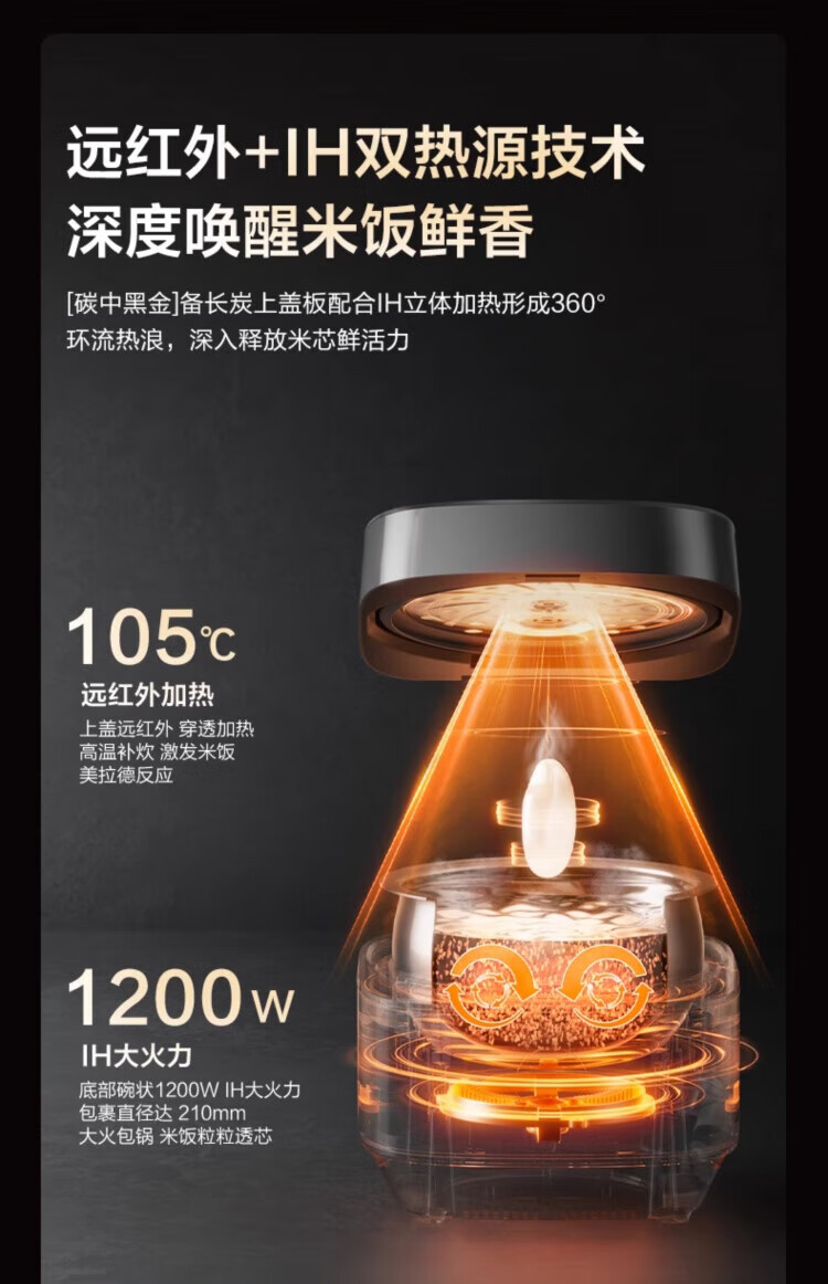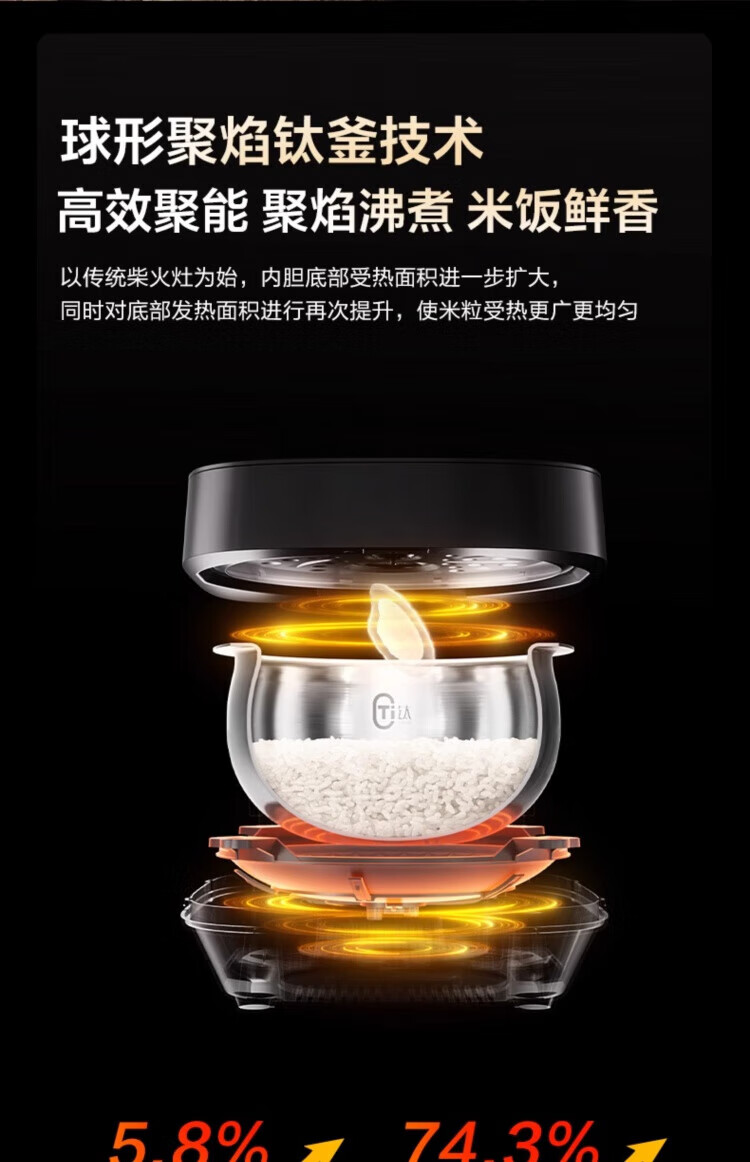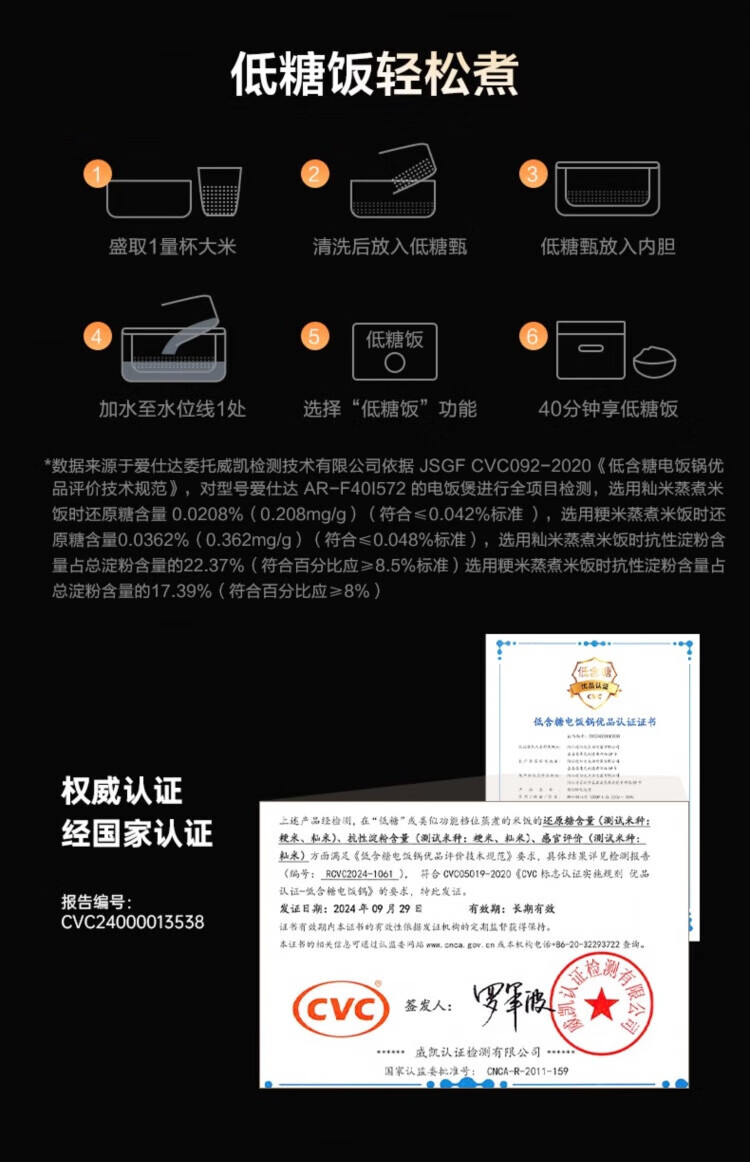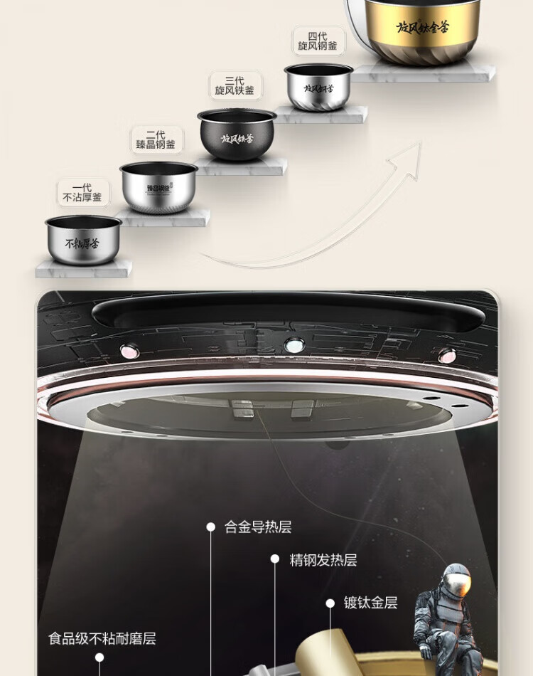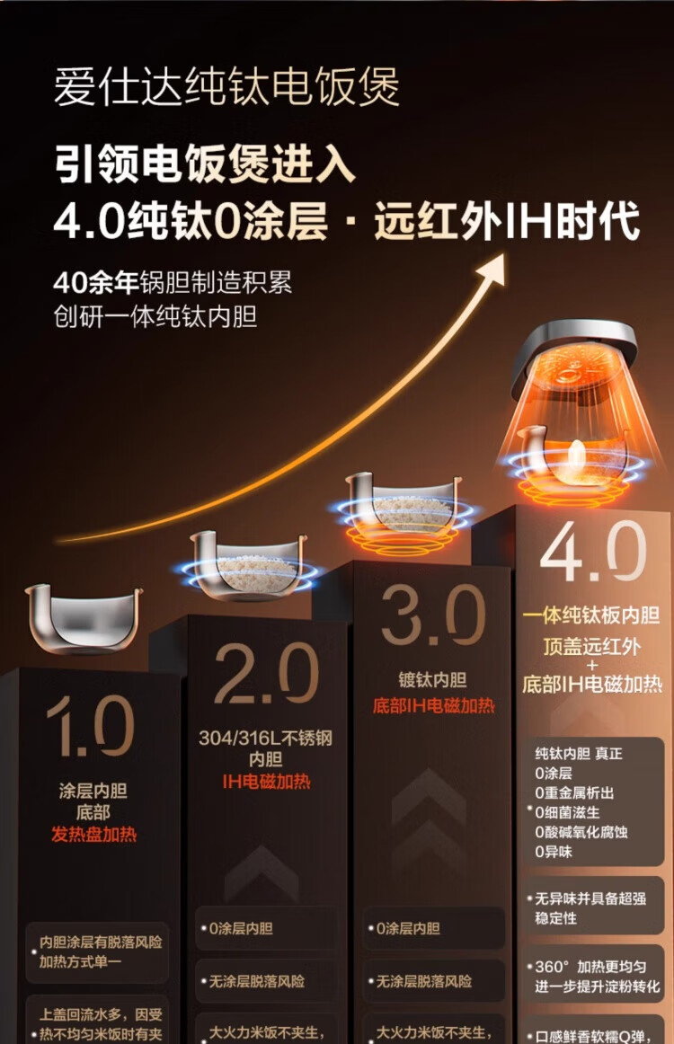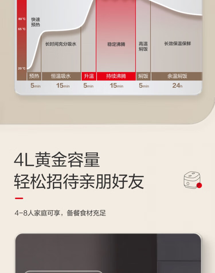 ASD IH Rice Cooker 4L Large Capacity Household Low Sugar Rice Cooker for 2-6 People Champagne Gold AR-F40I571 (4L)