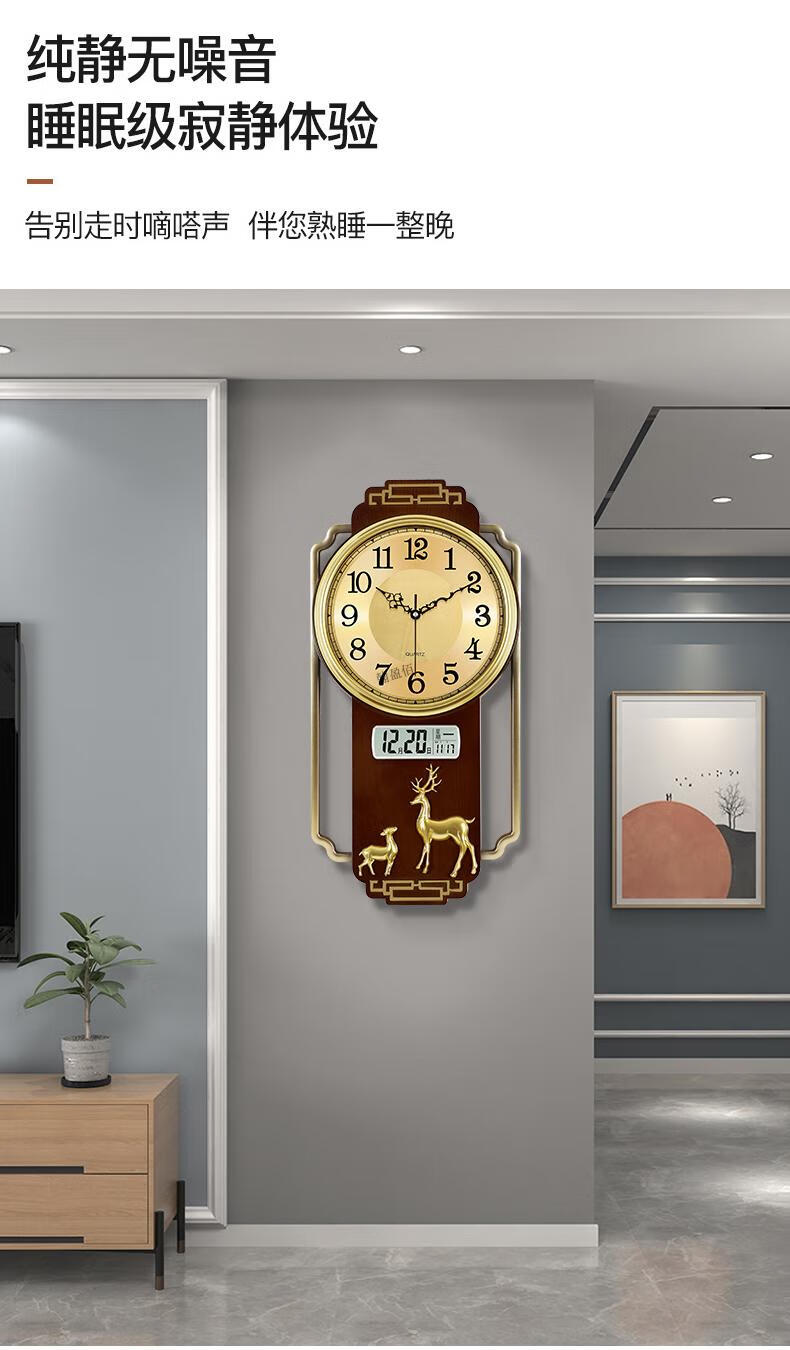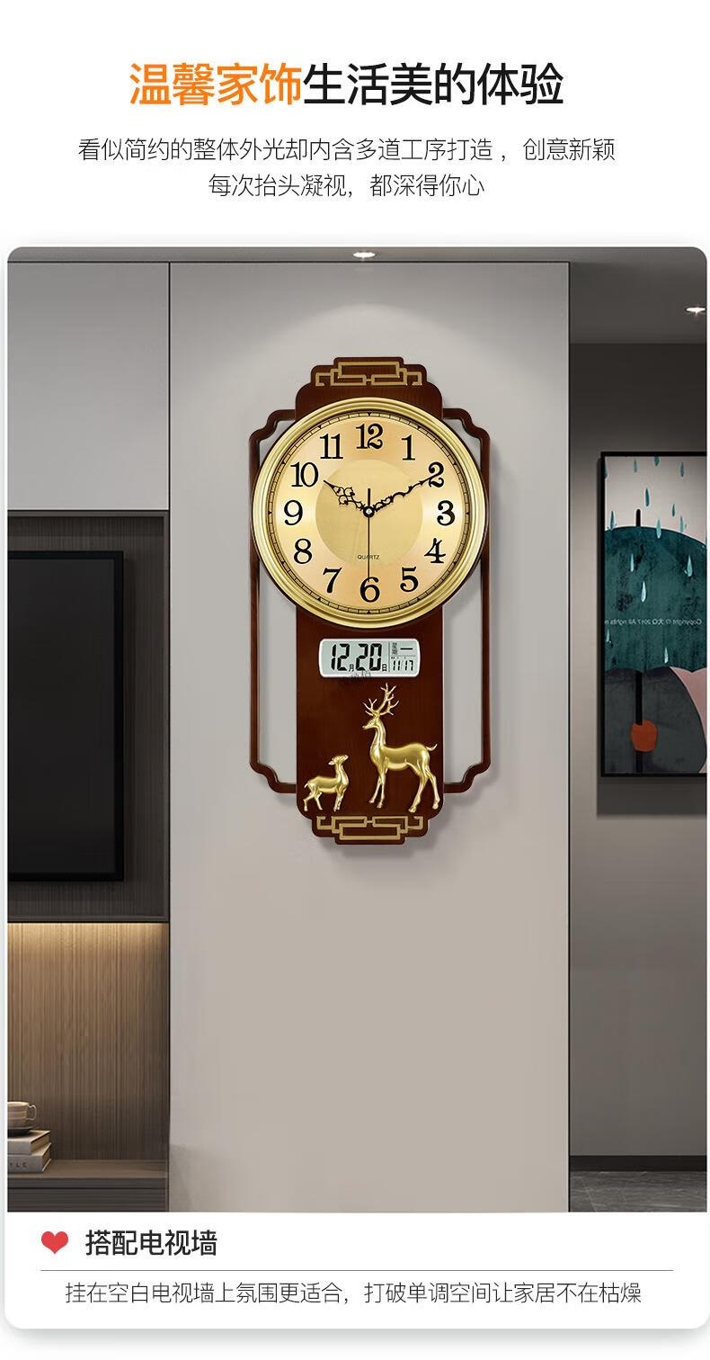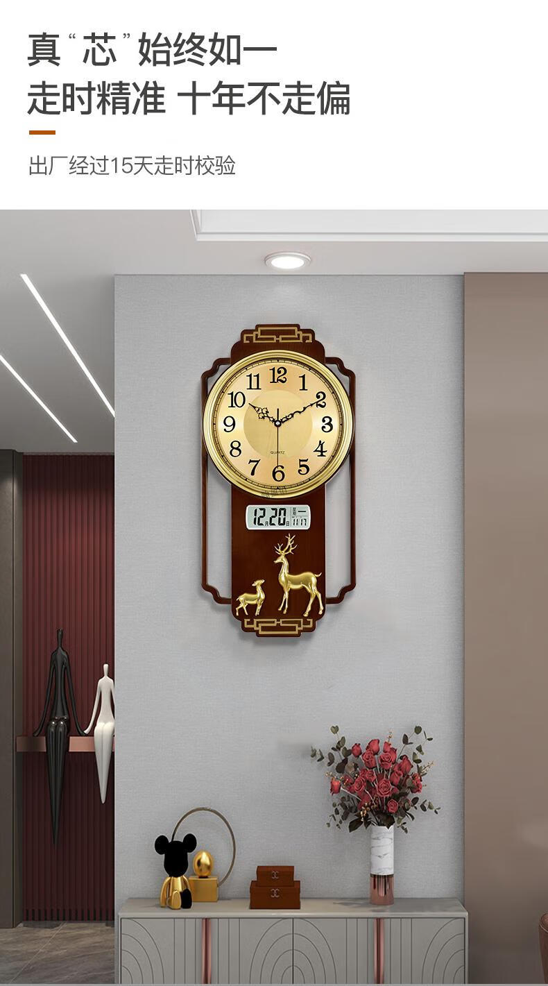 Swiss original imported quality living room wall clock quartz clock 2025 new high-end light luxury new Chinese style home fashion light luxury sandalwood gold upgraded silent movement 20 inches or more