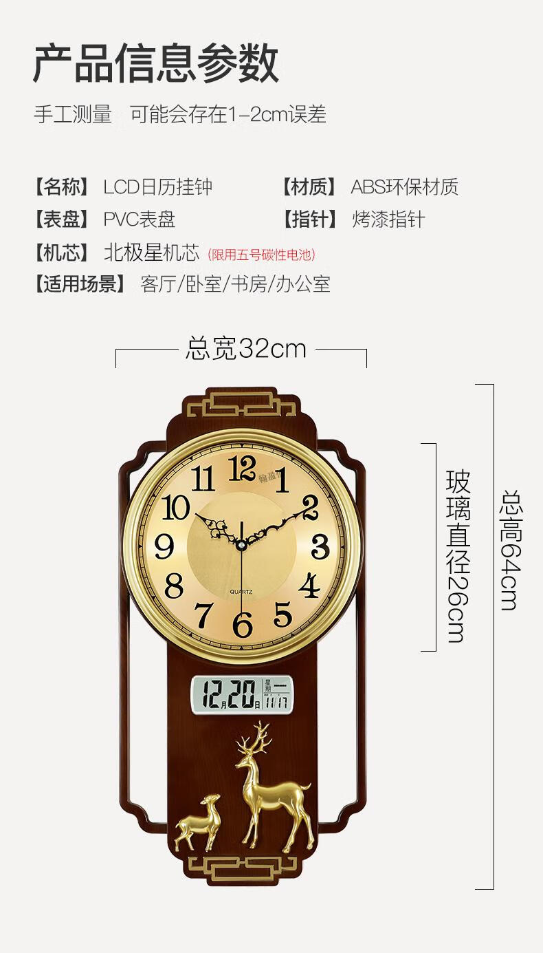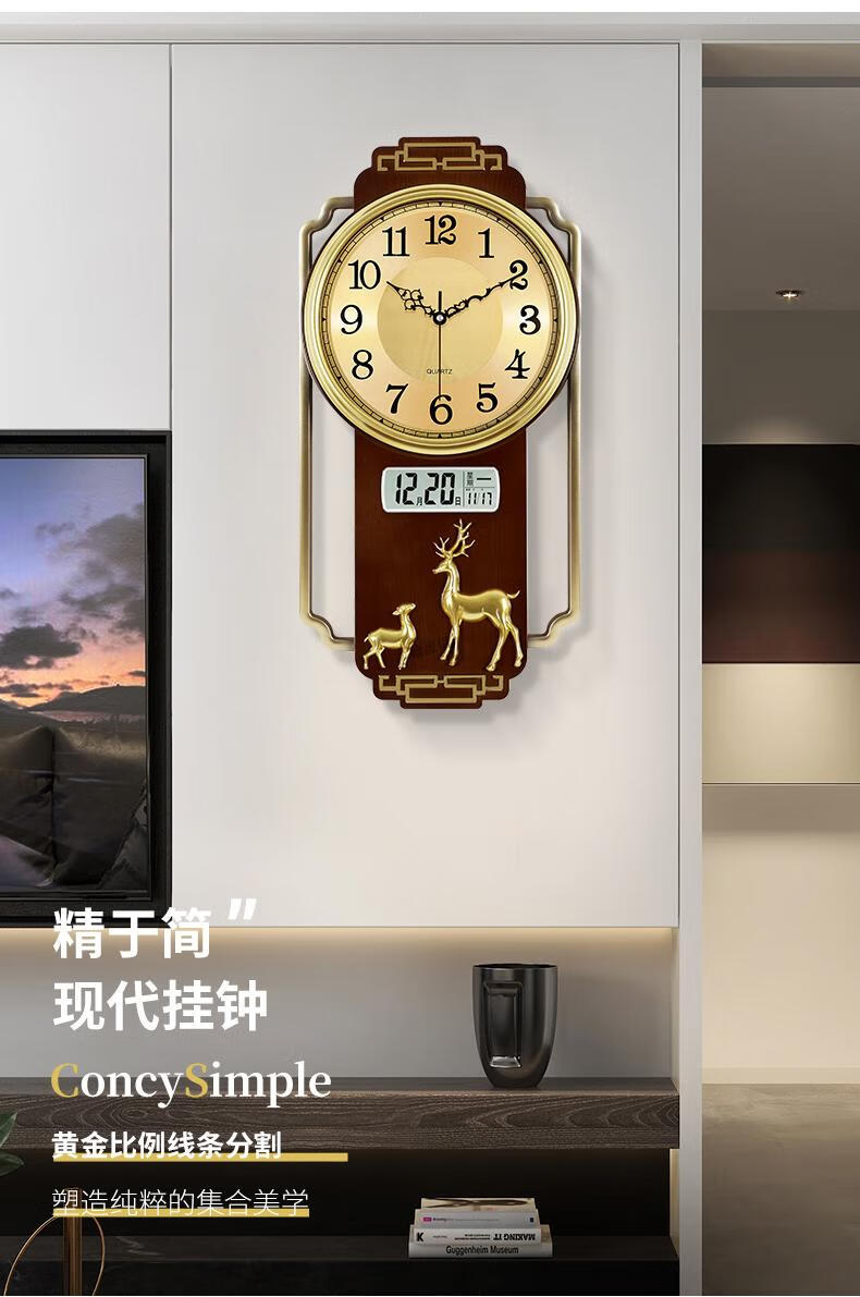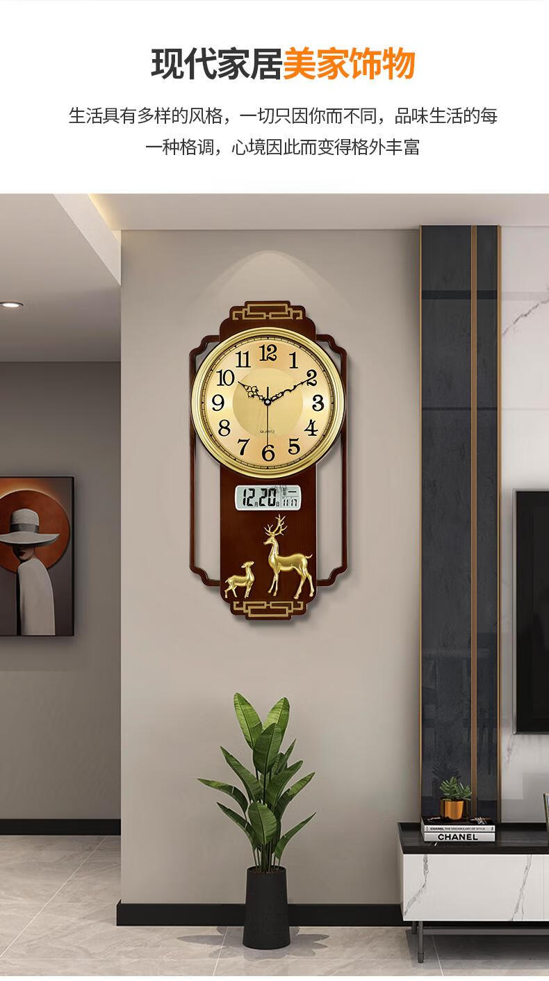 Swiss original imported quality living room wall clock quartz clock 2025 new high-end light luxury new Chinese style home fashion light luxury sandalwood gold upgraded silent movement 20 inches or more