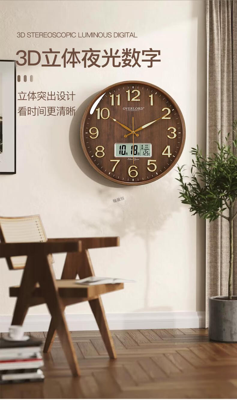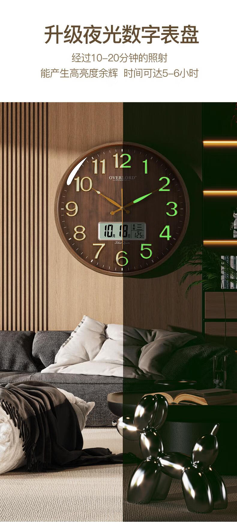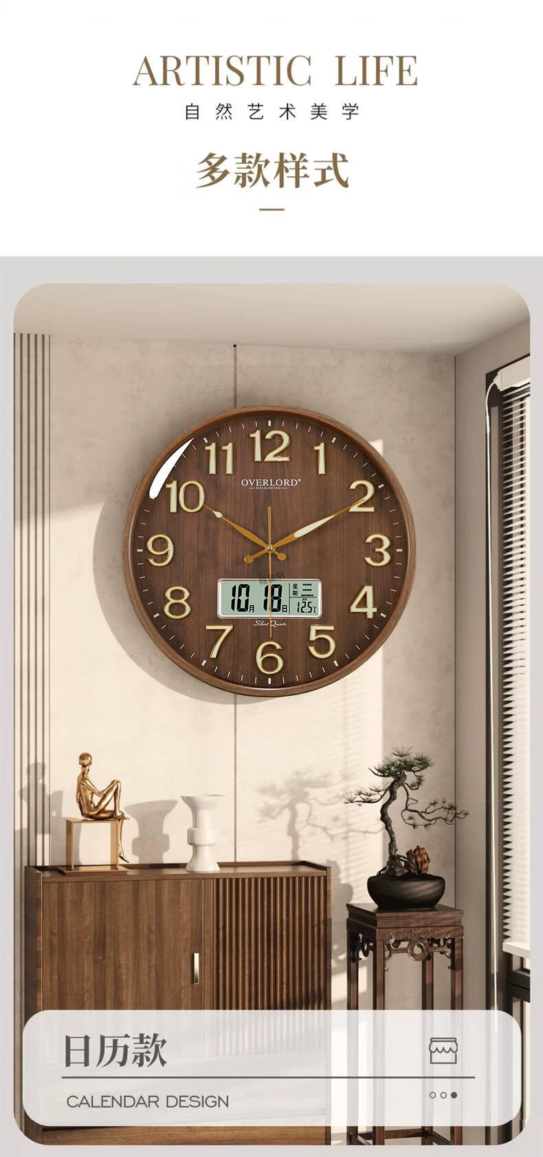 Swiss original imported quality living room wall clock quartz clock 2025 new high-end light luxury new Chinese style luminous home calendar model - Camo white enhanced green luminous night 15 inches (diameter 37 cm)
