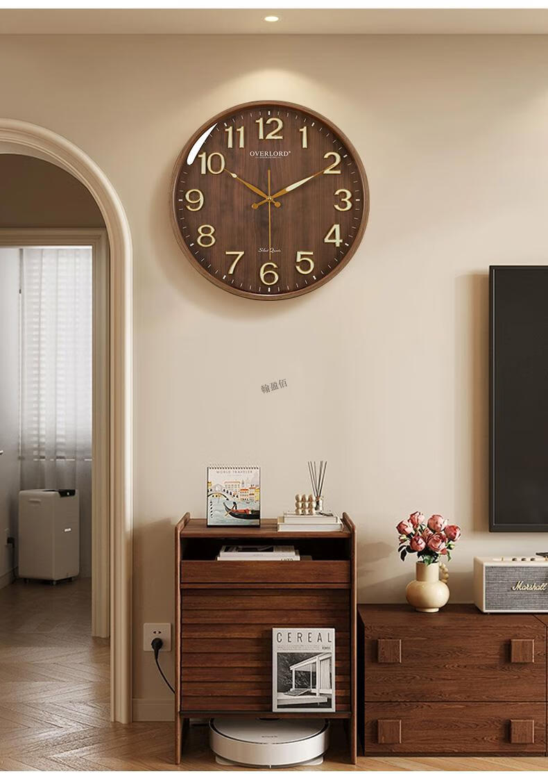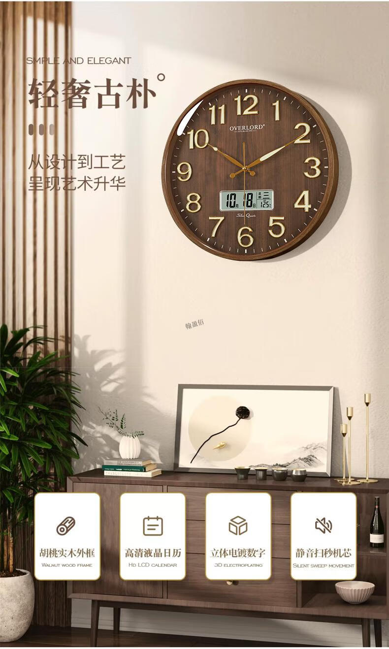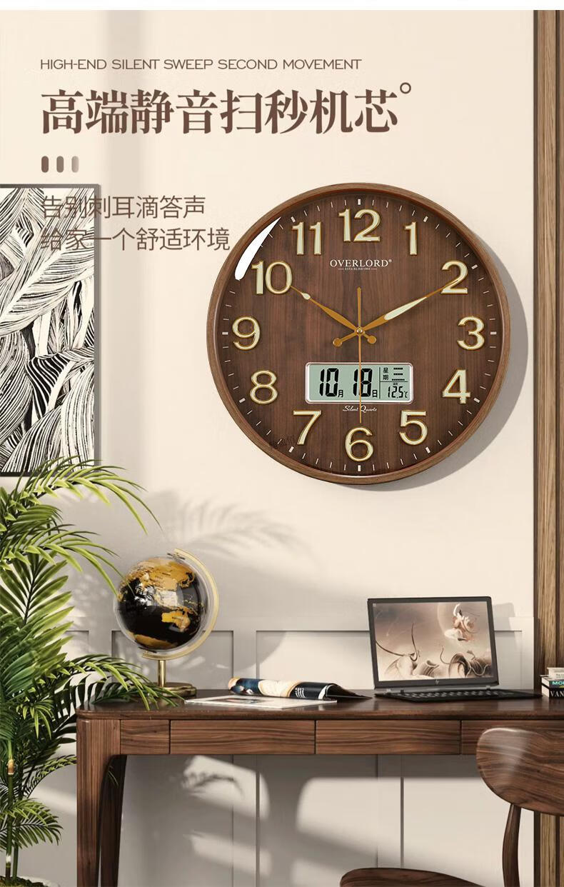 Swiss original imported quality living room wall clock quartz clock 2025 new high-end light luxury new Chinese style luminous home calendar model - Camo white enhanced green luminous night 15 inches (diameter 37 cm)