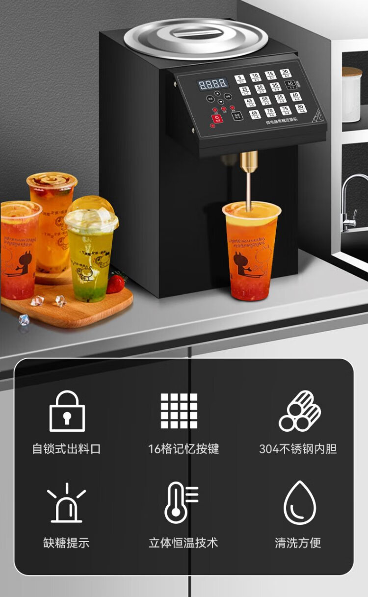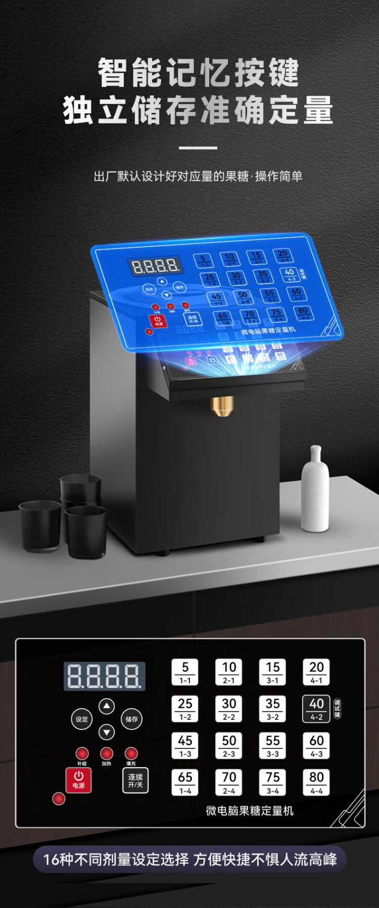 Fangchu Fructose Machine Intelligent Dosing Machine Commercial Milk Tea Shop Special Equipment Bar Small Constant Temperature Automatic Syrup Machine Luxury Model 6L/16 Keys/Stainless Steel Shell/Black (Alloy Mouth)